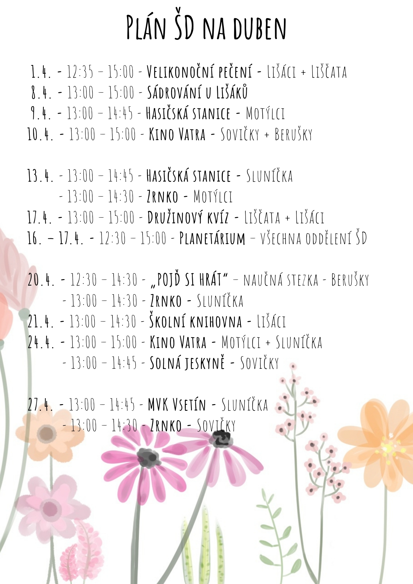 Aktuální plán akcí školní družiny