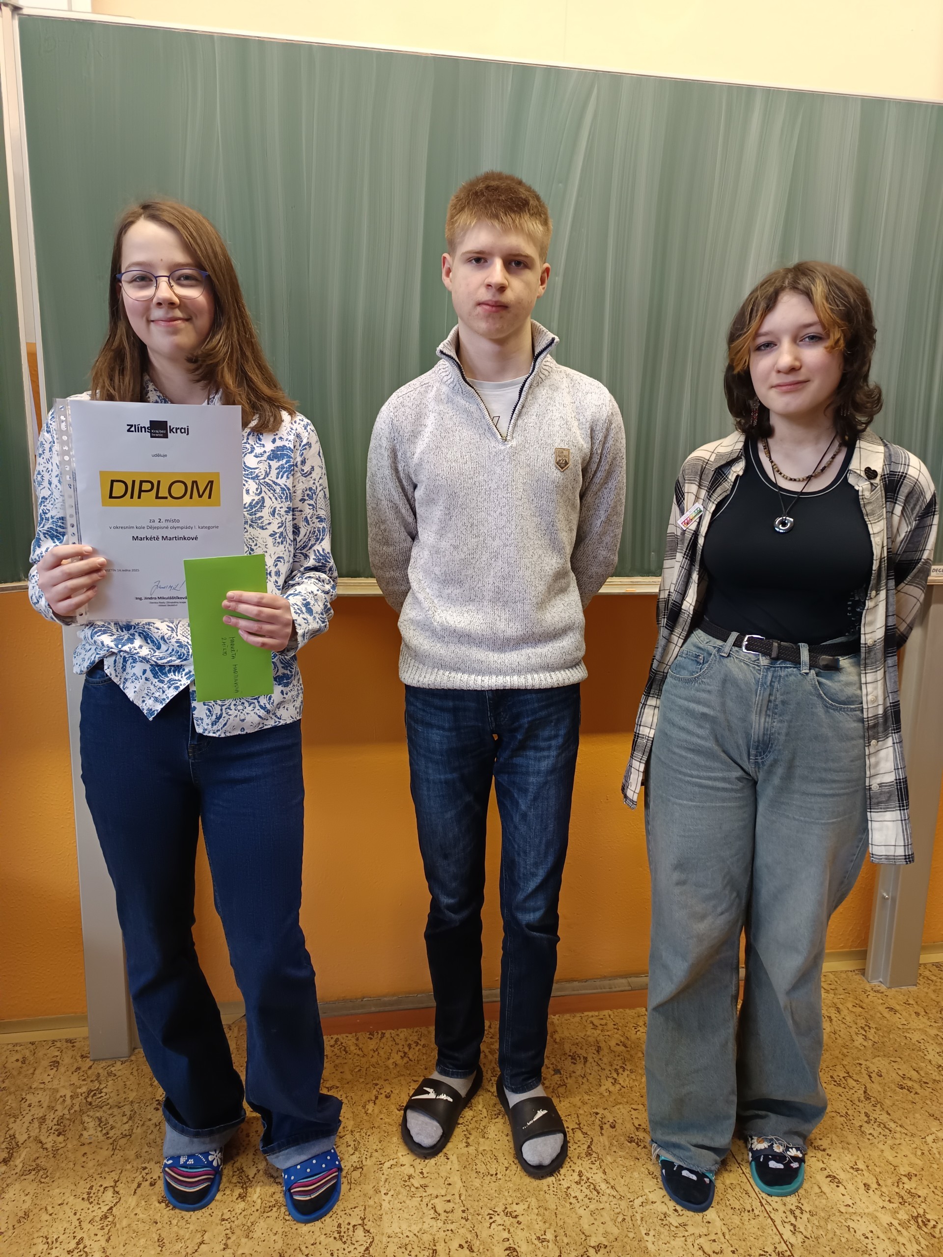 Markétko, blahopřejeme a držíme pěsti v krajském kole, které se uskuteční 28.3 2025 na Gymnáziu J. A. Komenského v Uherském Brodě.