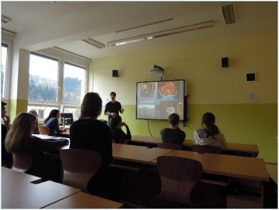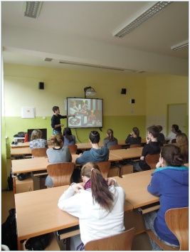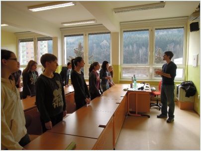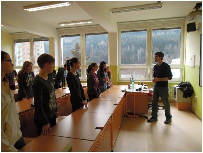 Setkání s Američanem bylo pro pokročilé „angličtináře“ velmi motivující. Měli možnost vyzkoušet si angličtinu v praxi. Brad zajímavým vyprávěním, doplněným o prezentaci fotografií, představil sebe a zemi odkud pochází. S dětmi komunikoval na různá témata z každodenního života – nechyběly otázky na oblíbené jídlo, barvu, volný čas, prázdniny a svátky v USA aj.
