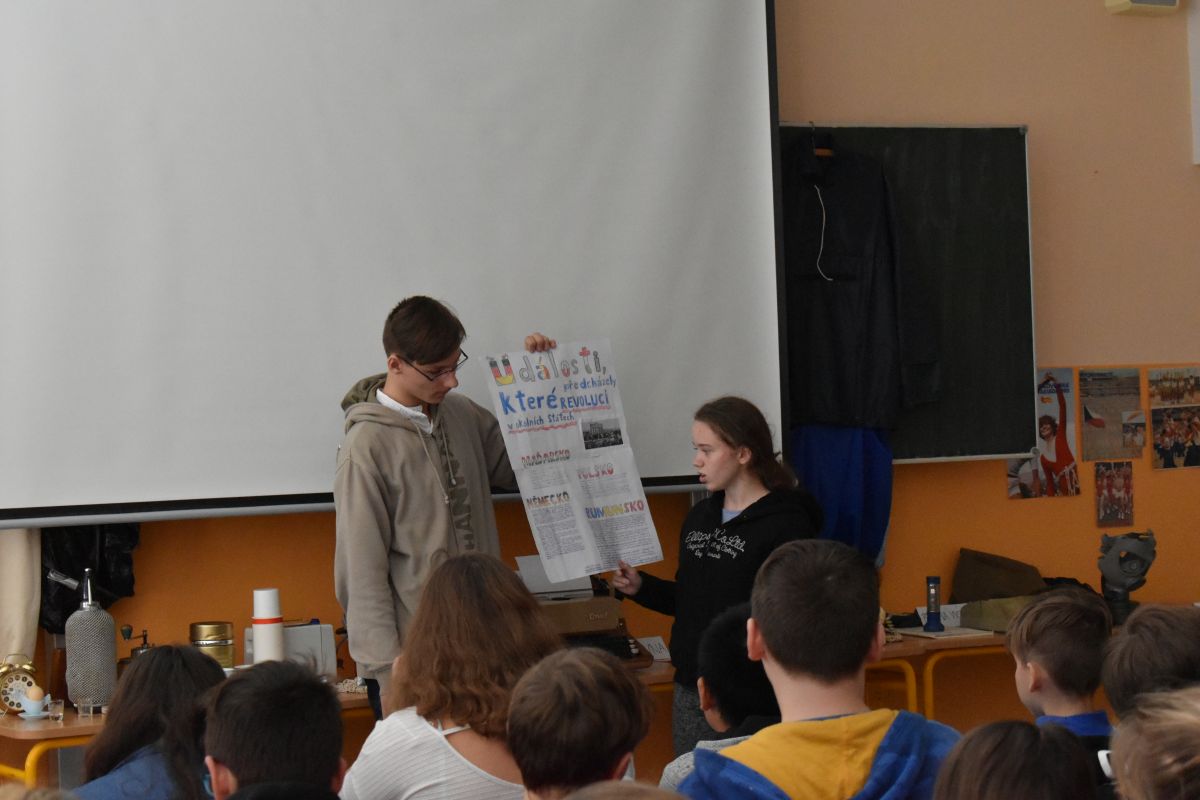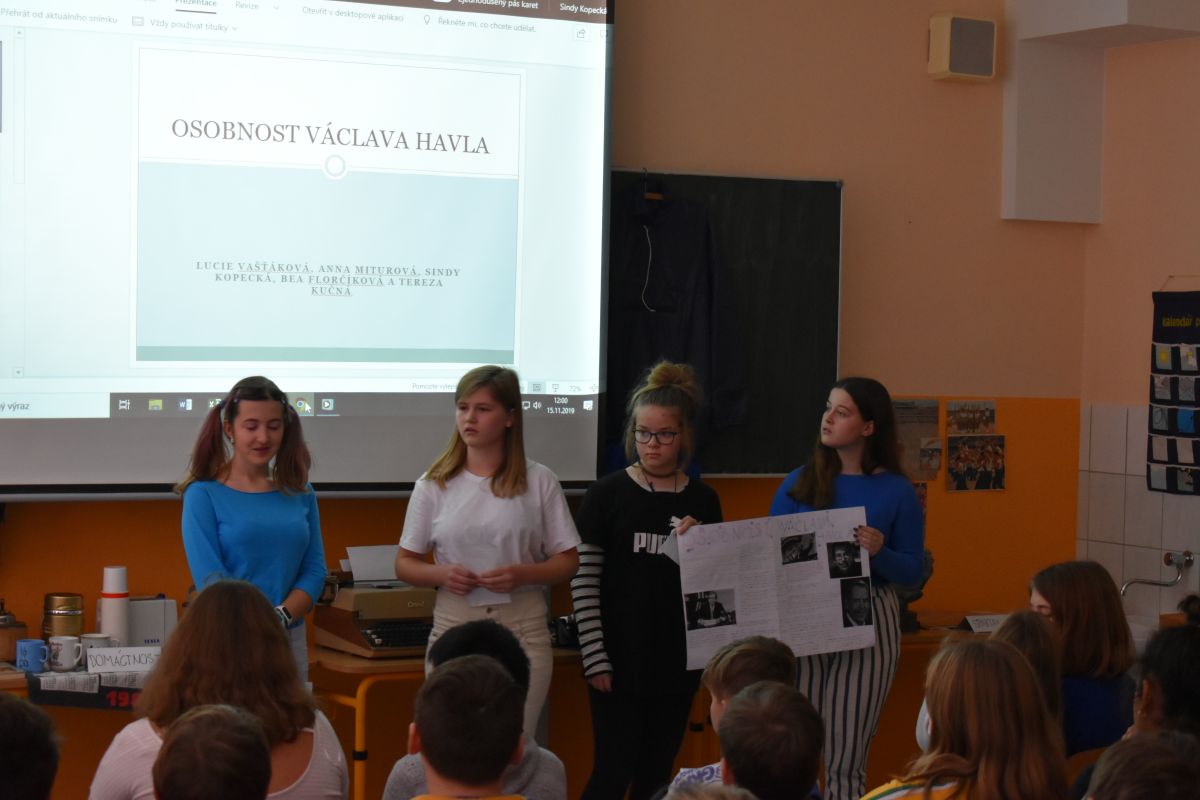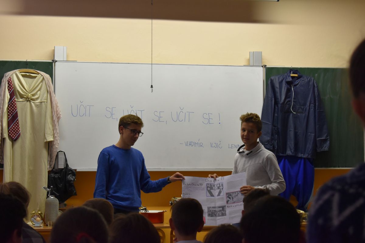 Žáci osmých a devátých ročníků měli za úkol připravit si prezentace na dané téma a přiblížit historické události svým mladším spolužákům ze šestých a sedmých ročníků.