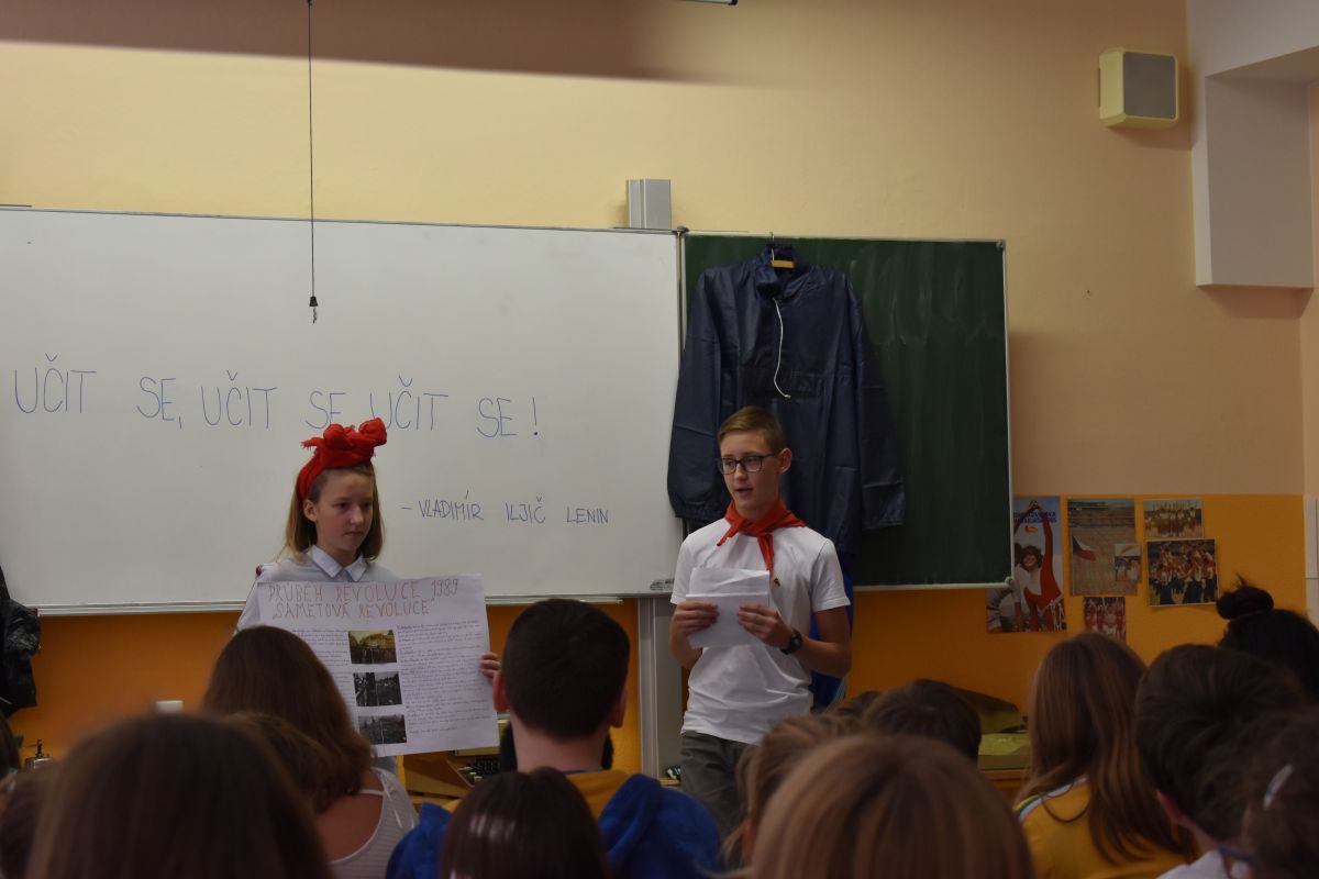 Žít ve svobodě a demokracii není vůbec samozřejmé. Svoboda především znamená občanskou odpovědnost a angažovanost a k tomu je třeba vést děti už od malička. Proto jsme se rozhodli v pátek 15. 11. uskutečnit na naší škole projektový den zaměřený na oslavy 30. výročí sametové revoluce. Přiblížit dětem totalitní režim, který už naštěstí nezažily, byla velká výzva, ale my učitelé, v čele s paní učitelkou Gajdošovou, jsme se tohoto tématu chopili s velkým nasazením.