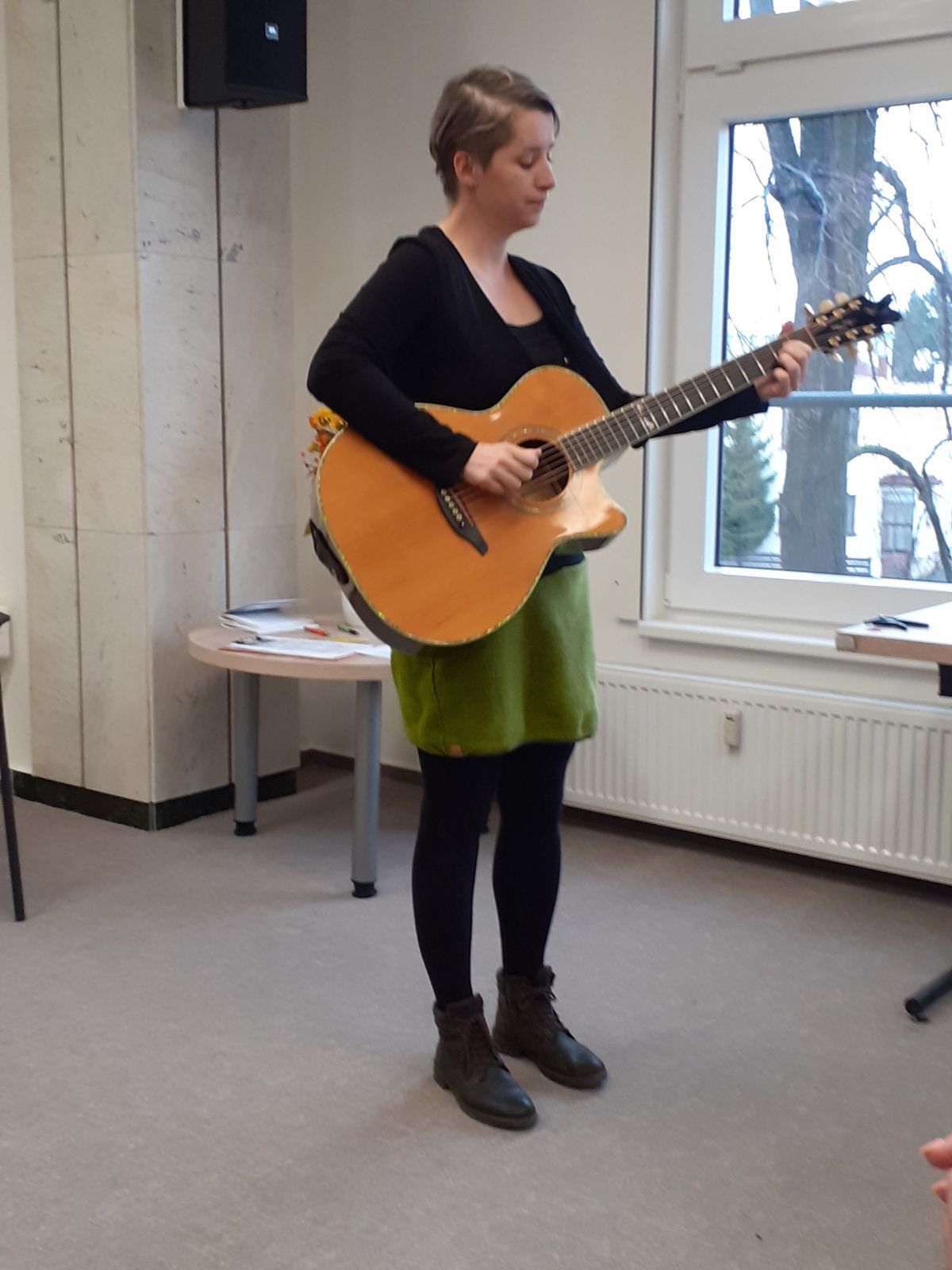 Příjemnou dopolední atmosféru podtrhla folková zpěvačka Lucie Redlová se svými třemi písněmi s doprovodem kytary a také nenucené průvodní slovo paní ředitelky knihovny a paní místostarostky.