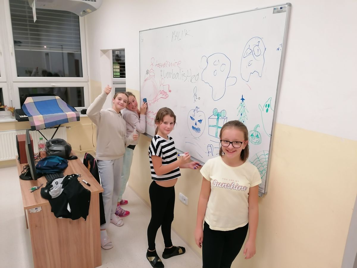 Přespávačka byla mega dobrá. Večer jsem si s holkama pouštěli písničky na plátně.