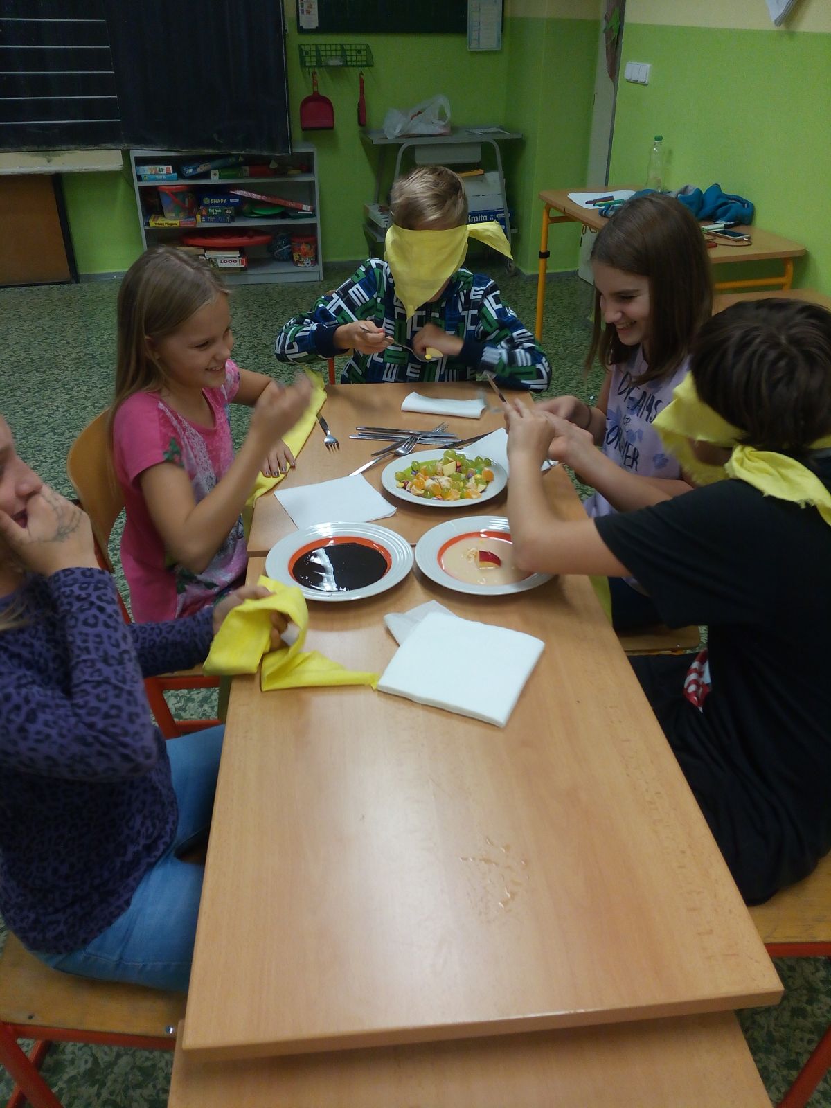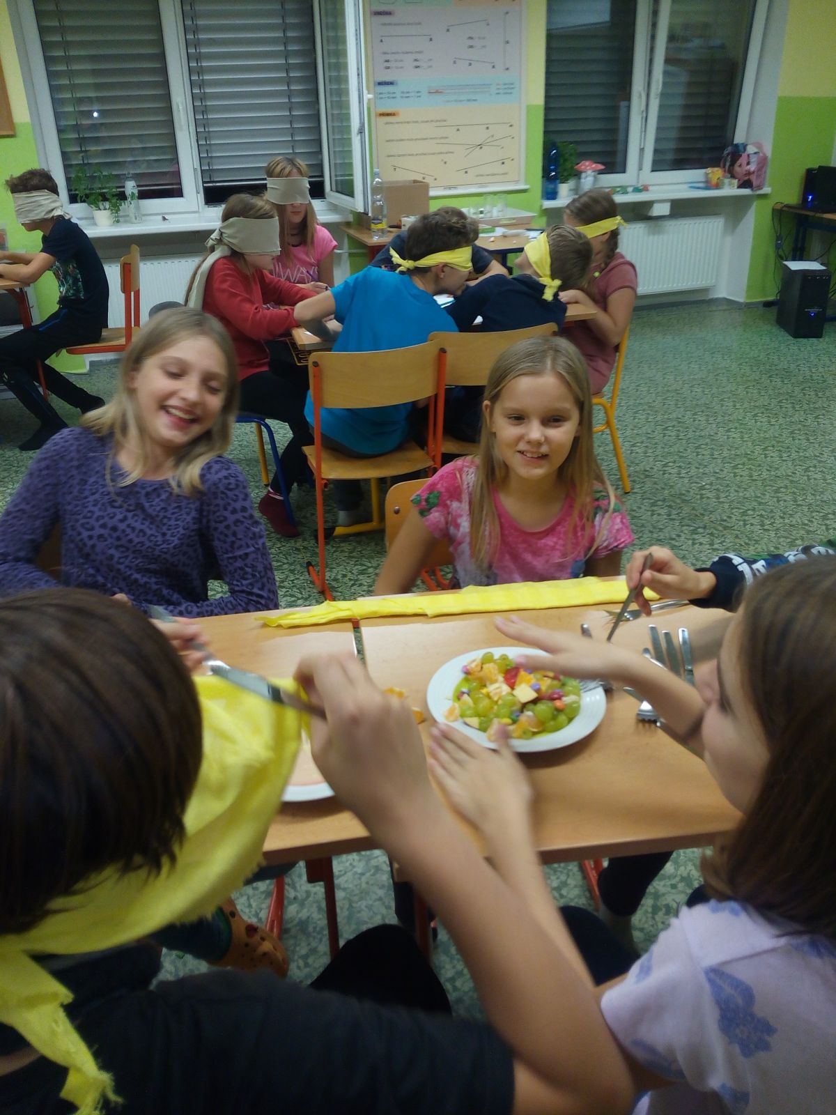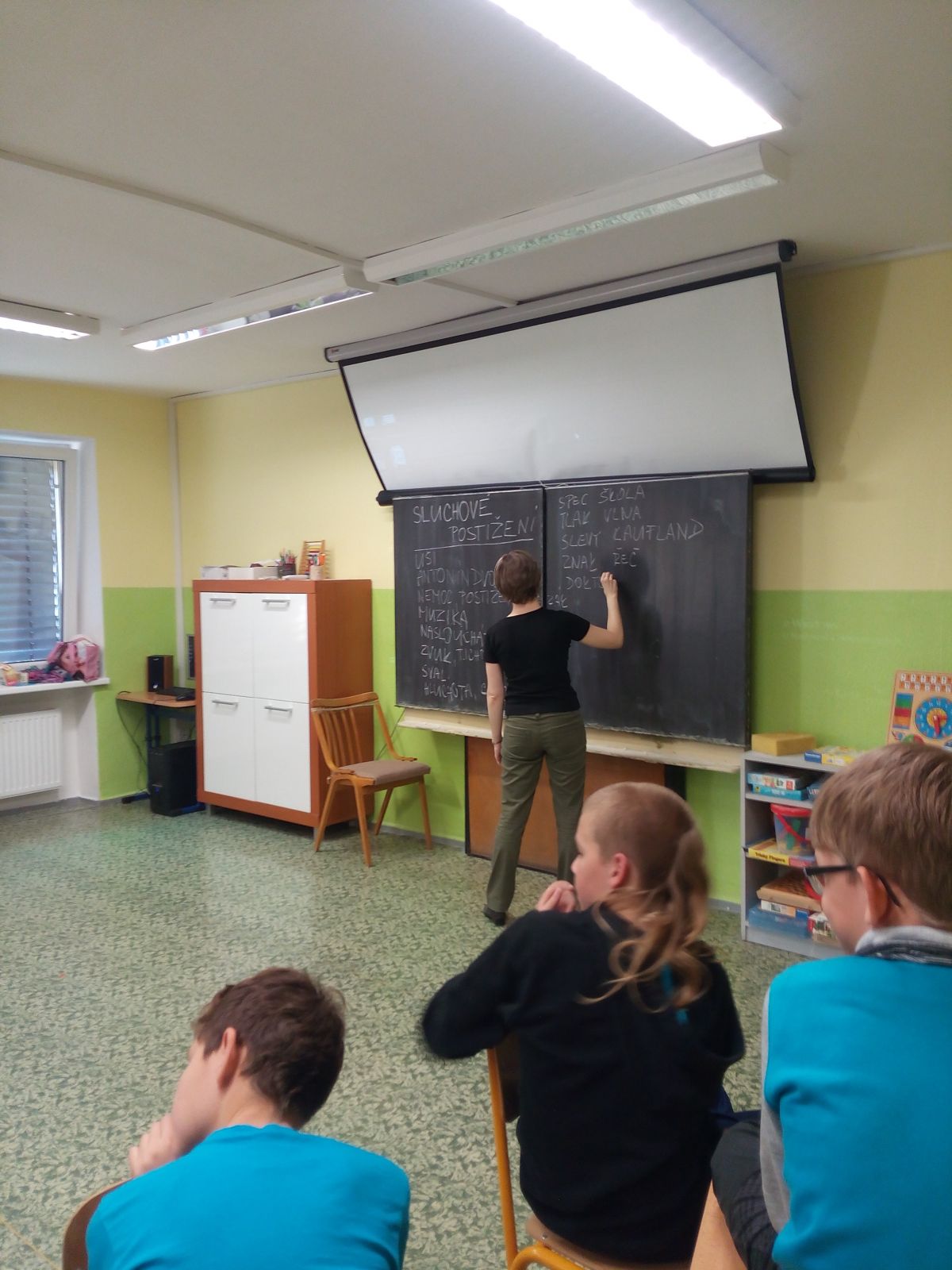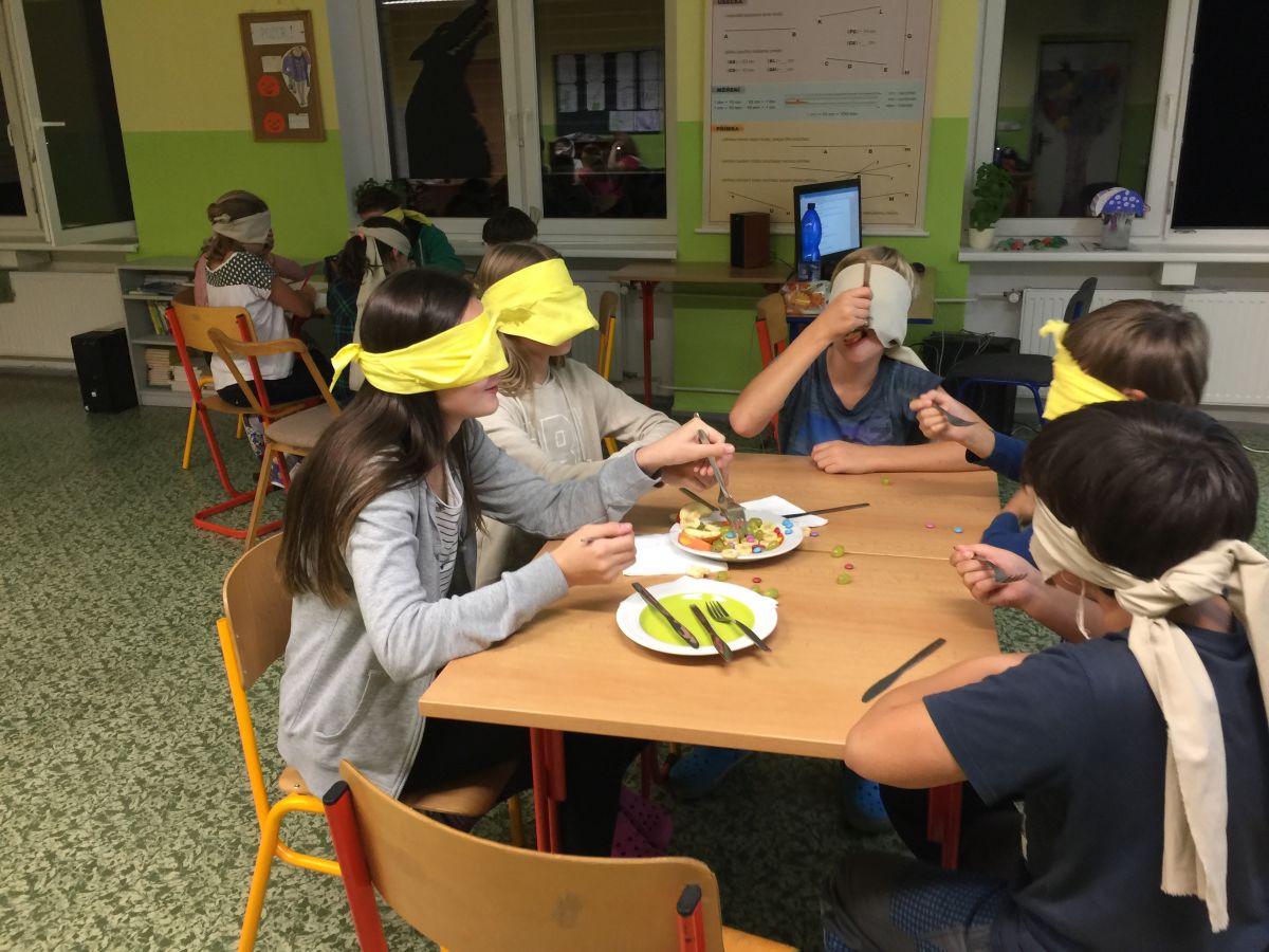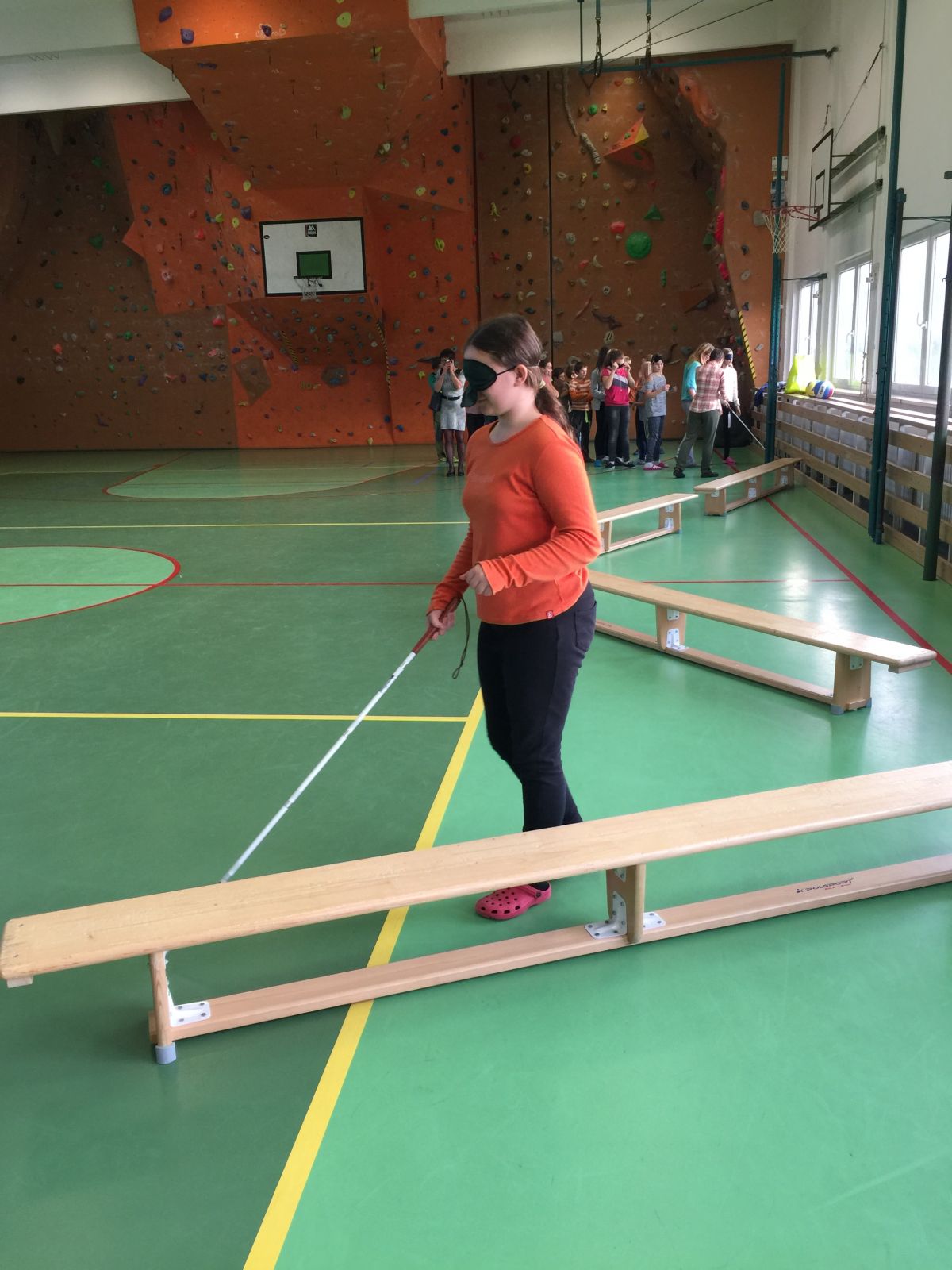 Díky návštěvě paní Ludmily Pavelkové ze Sjednocené organizace nevidomých a slabozrakých (SONS) si žáci VI.A mohli vyzkoušet chůzi za pomoci slepecké hole. Při této činnosti měli zavázané oči. Úkolem žáků bylo zdolat několik překážek, které jim křižovaly cestu. Žáci také měli možnost vyzkoušet si speciální brýle, které simulují různé stupně zrakového postižení, mohli si zahrát pexeso „pro uši“, seznámit se s Braillovým písmem, vyzkoušet si psaní na Pichtově psacím stroji, jíst i malovat se zavázanýma očima a spoustu dalšího.