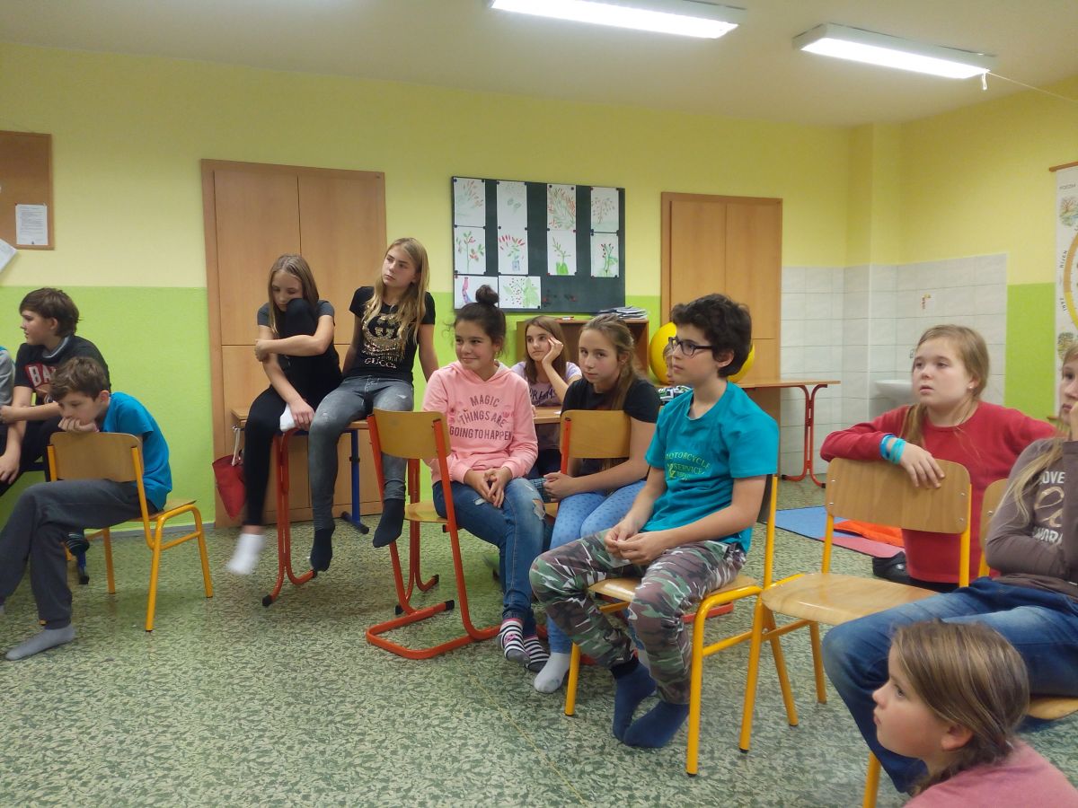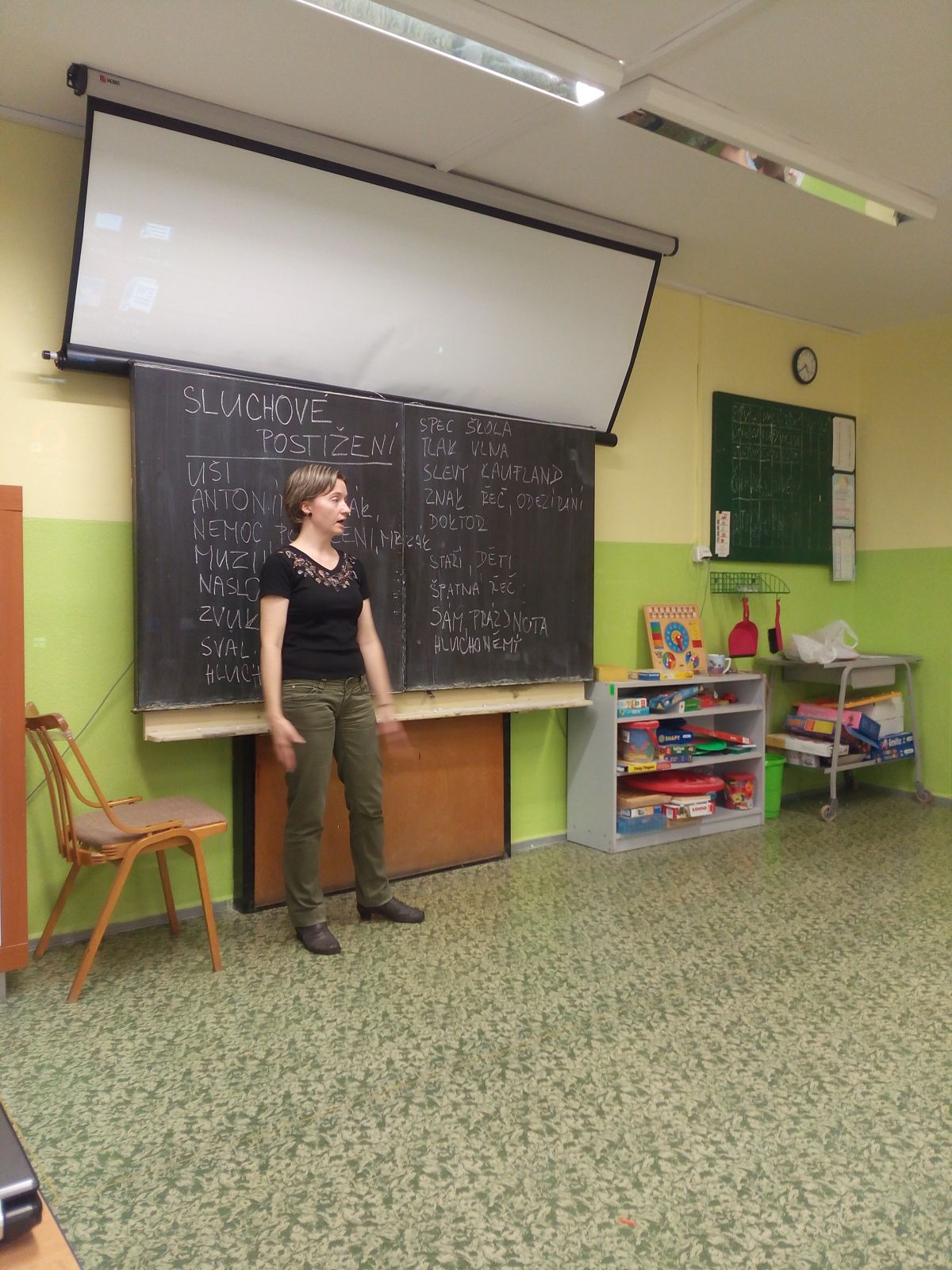 Žáci VI.B měli naopak možnost dozvědět se mnoho zajímavých informací ze světa hluchoněmých, a to díky návštěvě paní Terezy Schallnerové z MŠ, ZŠ a SŠ pro sluchově postižené ve Valašském Meziříčí. Zjistili, jak to v takové škole funguje, vyzkoušeli si znakovou řeč a také se podívali na ukázky z divadelního představení pro neslyšící. Paní Schallnerová byla velmi ochotná zodpovědět veškeré dotazy zvídavých žáků.