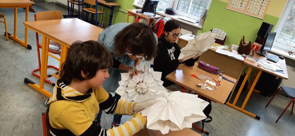 Ke zkoumání zmrzlého a tekutého moštu vlastní domácí výroby se nám připletla fyzika, do snahy o správné nařezání a umístění pečícího papíru zase geometrie, při pouštění lodiček z ořechových skořápek nesměl chybět Archimedův zákon J. Krásnými hvězdami z papírových sáčků jsme si zase vyzdobili třídu. Snad jen výroba mašlovaček z husího peří byla čistě tradiční záležitost.