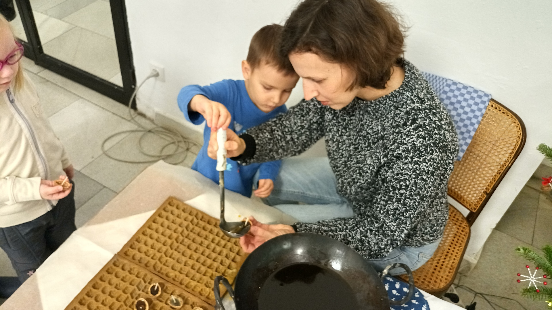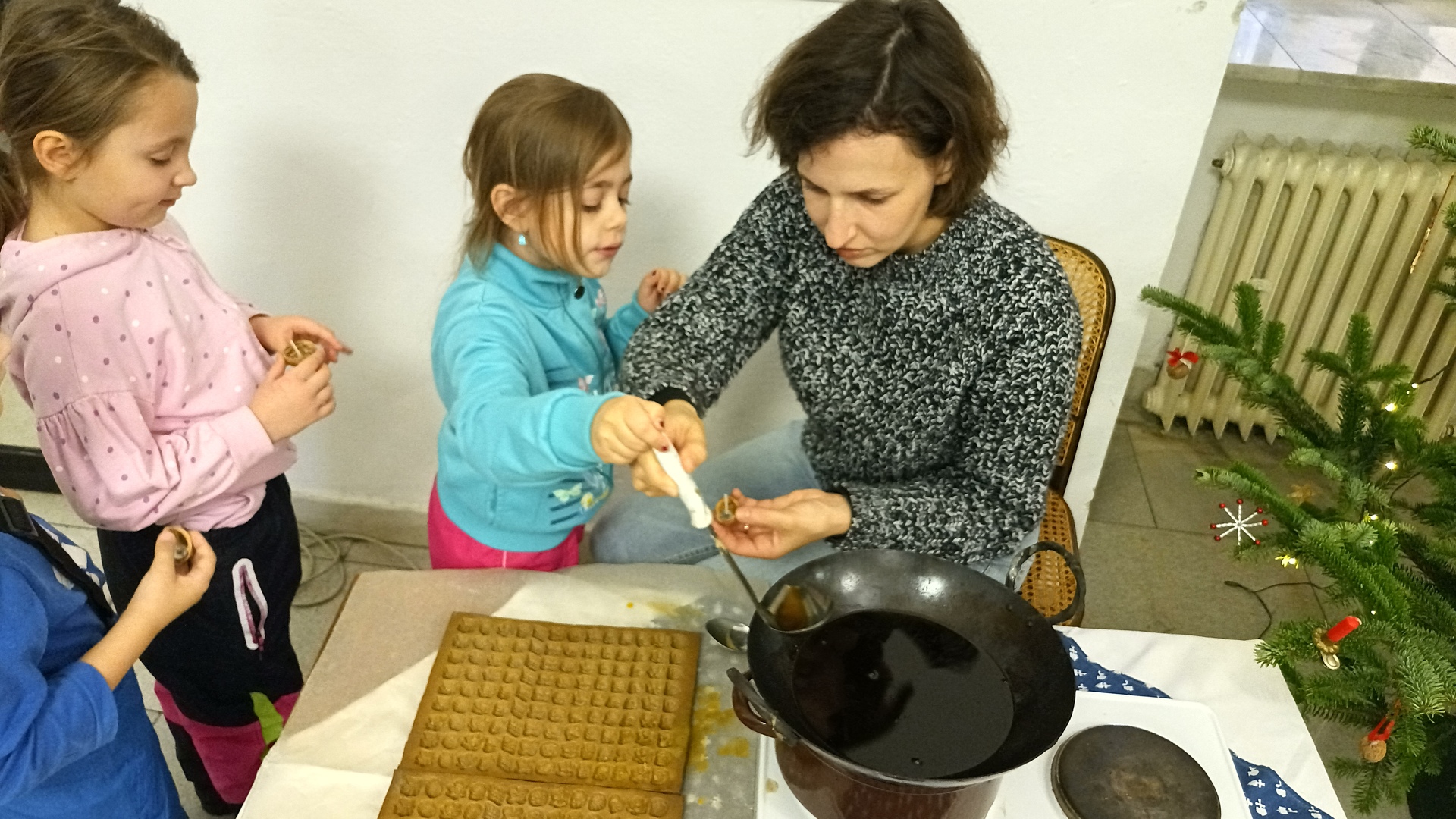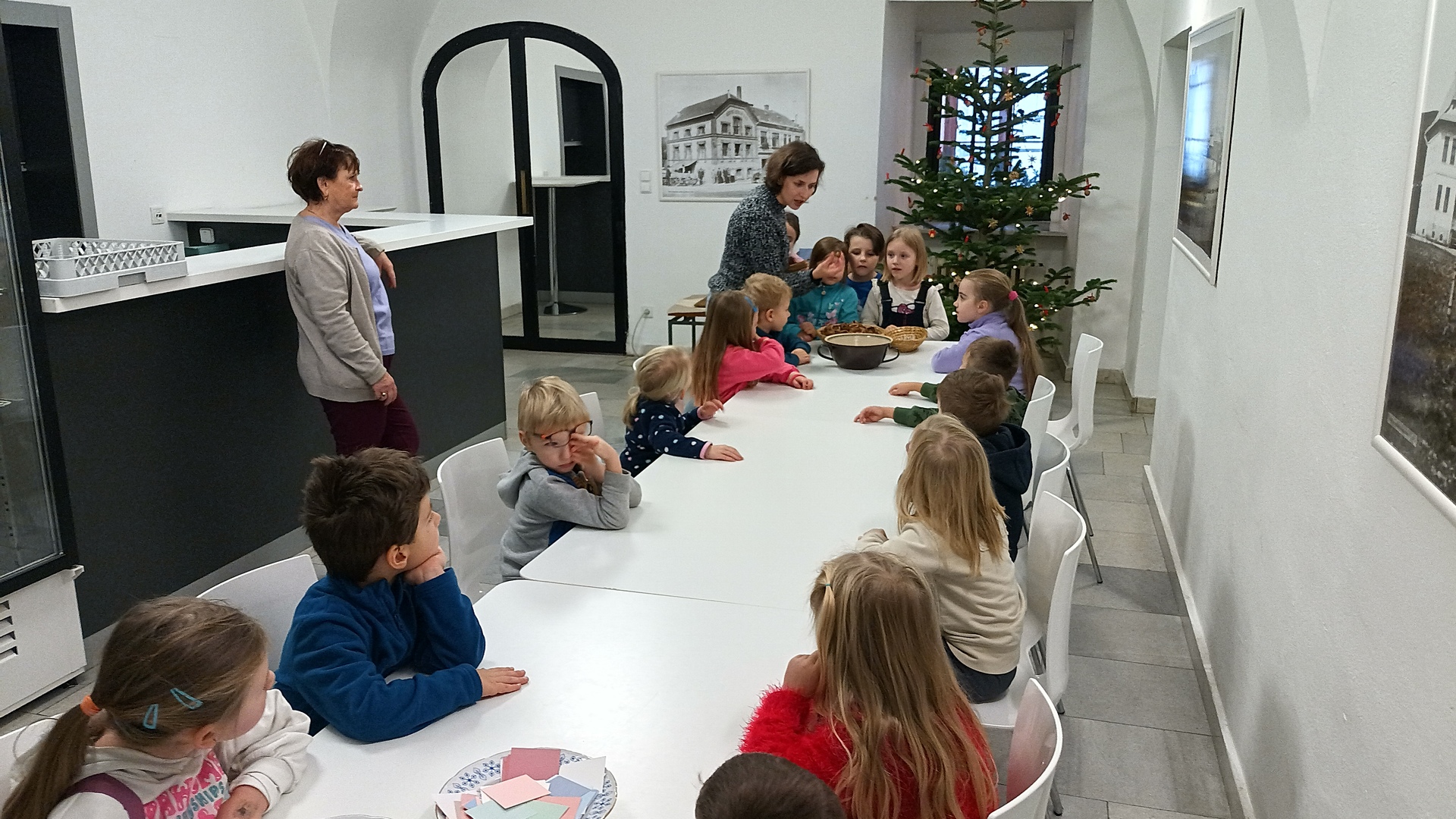 Se začínajícím Adventem se děti ze třídy Motýlků vydaly na zámek, aby se seznámily s vánočními tradicemi. Po úvodním povídání o vánočních zvycích, dostaly děti do rukou skutečný kousek vosku. Proč? Aby viděly, jak takový vosk vypadá, než se roztopí. Děti totiž pak měly možnost si roztopeným voskem zalít malý knot vložený do skořápky vlašského ořechu, a vyrobit si lodičku na právě jeden z těch vánočních zvyků. Poté je čekal vánoční příběh o zrození Ježíška, který mohly i pozorovat skrze stínohru s hudebním doprovodem. Děti pak měly možnost i vlastní produkce. Několik koled si zazpívaly a hudebně doprovodily rytmizací. Mezitím vosk ve skořápkách ztuhnul a děti si samy vyráběly balíčky, ve kterých si svou vzpomínku z dnešního dne odnesly zpátky do školky. Za třídu motýlků, Petr Liška.