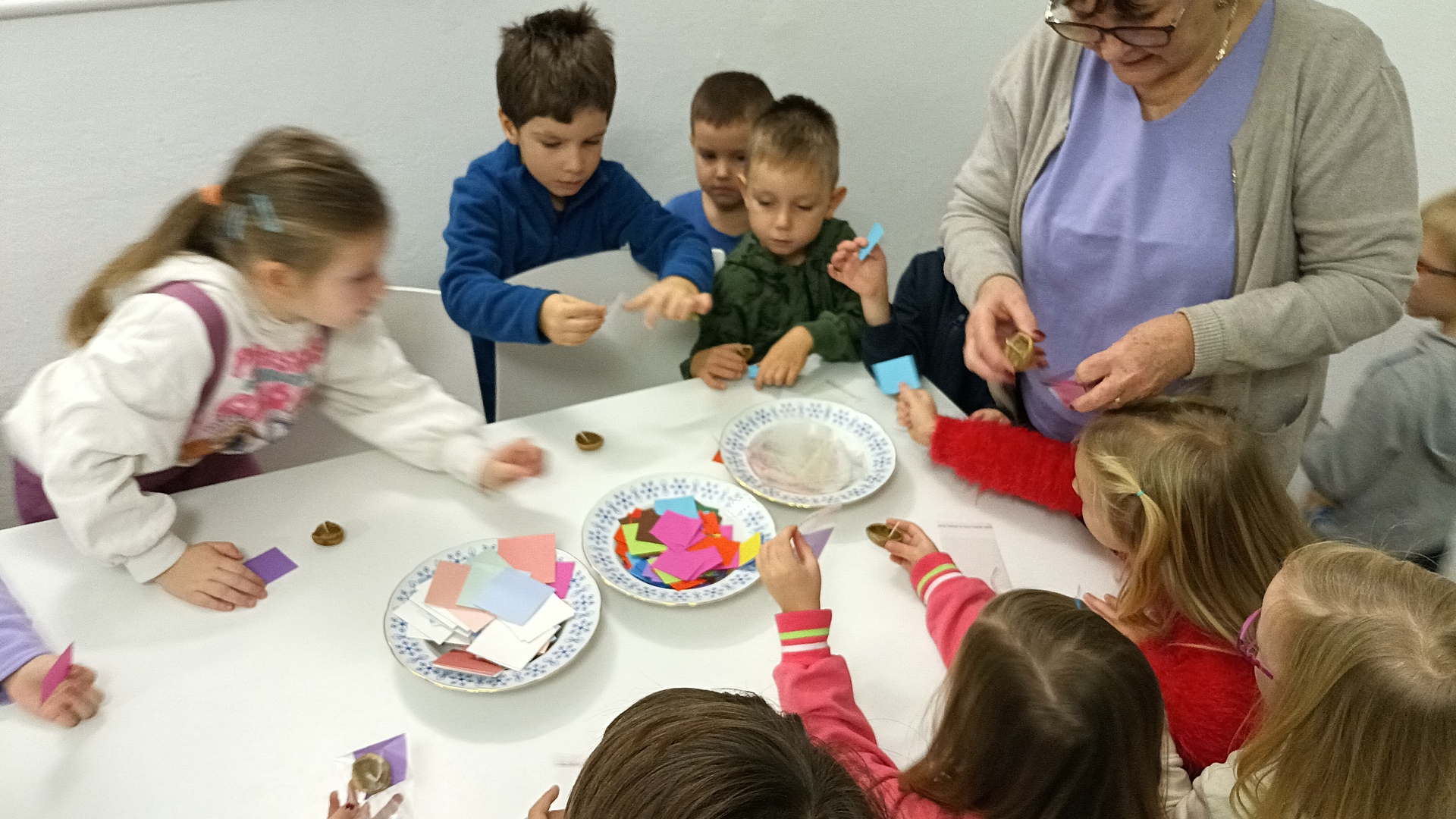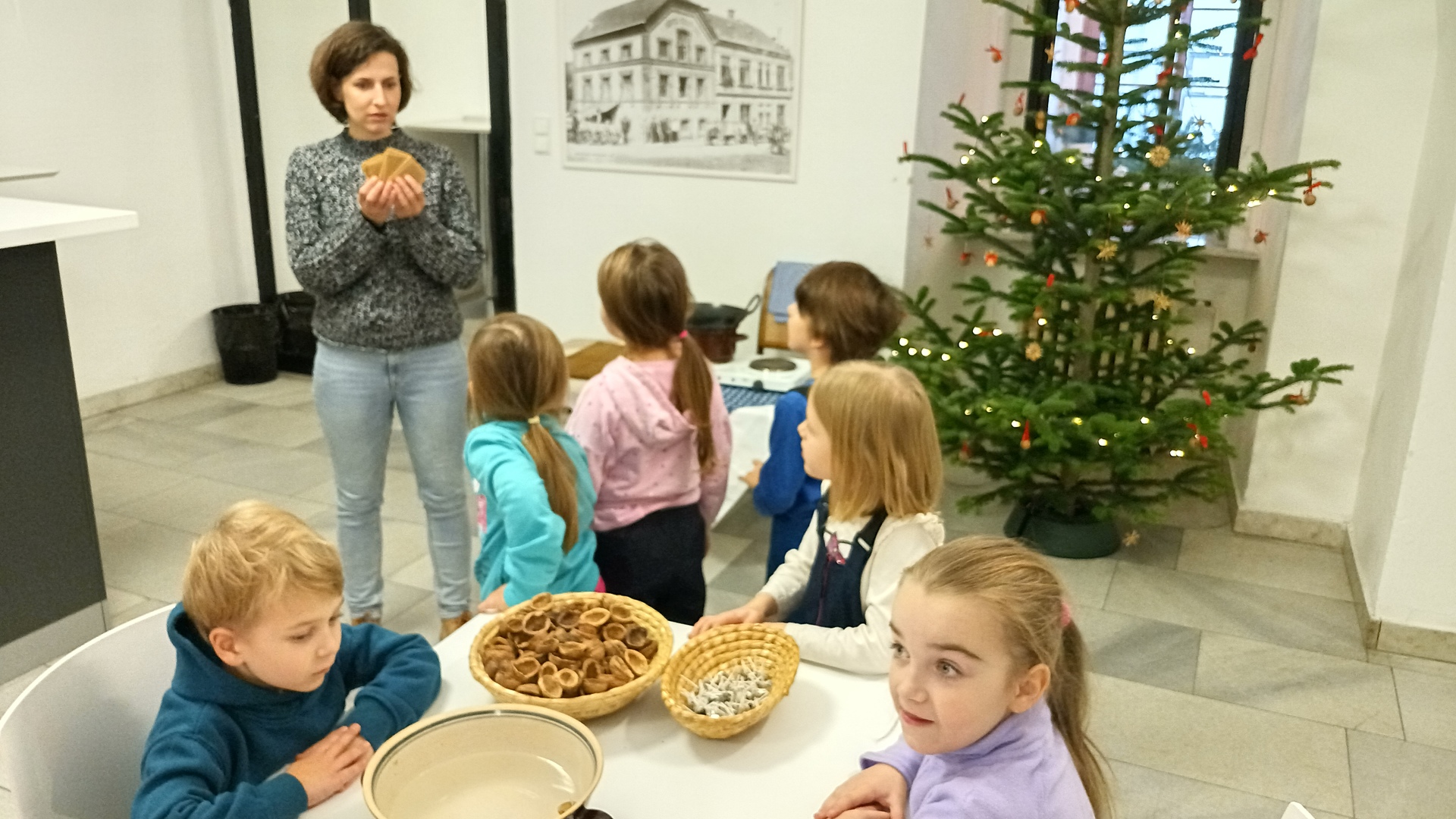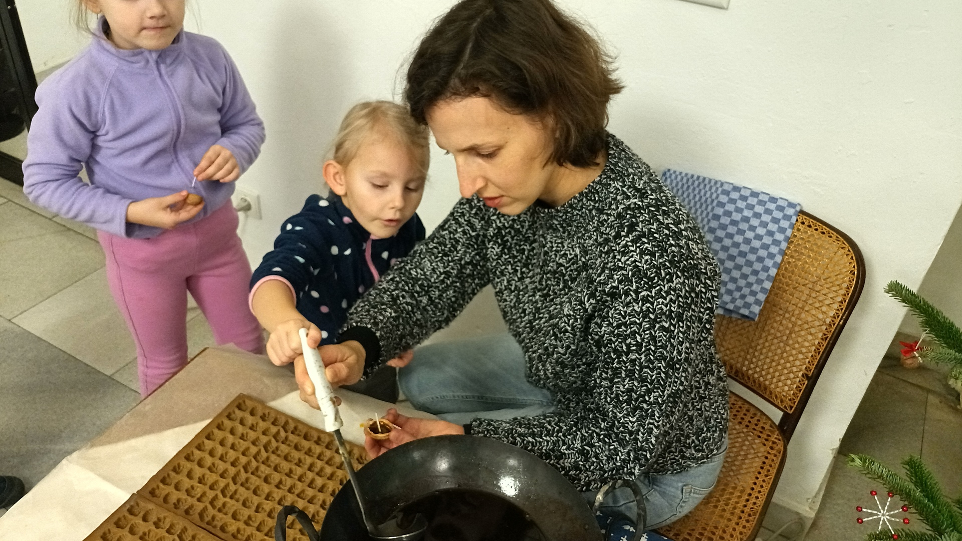 Se začínajícím Adventem se děti ze třídy Motýlků vydaly na zámek, aby se seznámily s vánočními tradicemi. Po úvodním povídání o vánočních zvycích, dostaly děti do rukou skutečný kousek vosku. Proč? Aby viděly, jak takový vosk vypadá, než se roztopí. Děti totiž pak měly možnost si roztopeným voskem zalít malý knot vložený do skořápky vlašského ořechu, a vyrobit si lodičku na právě jeden z těch vánočních zvyků. Poté je čekal vánoční příběh o zrození Ježíška, který mohly i pozorovat skrze stínohru s hudebním doprovodem. Děti pak měly možnost i vlastní produkce. Několik koled si zazpívaly a hudebně doprovodily rytmizací. Mezitím vosk ve skořápkách ztuhnul a děti si samy vyráběly balíčky, ve kterých si svou vzpomínku z dnešního dne odnesly zpátky do školky. Za třídu motýlků, Petr Liška.