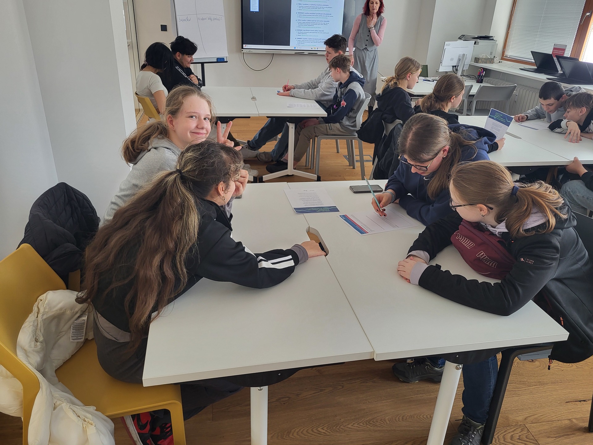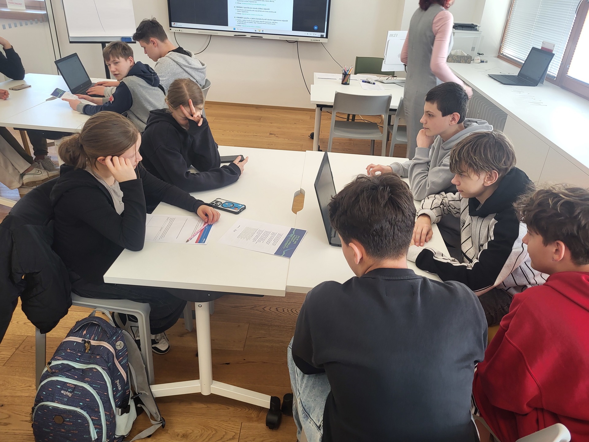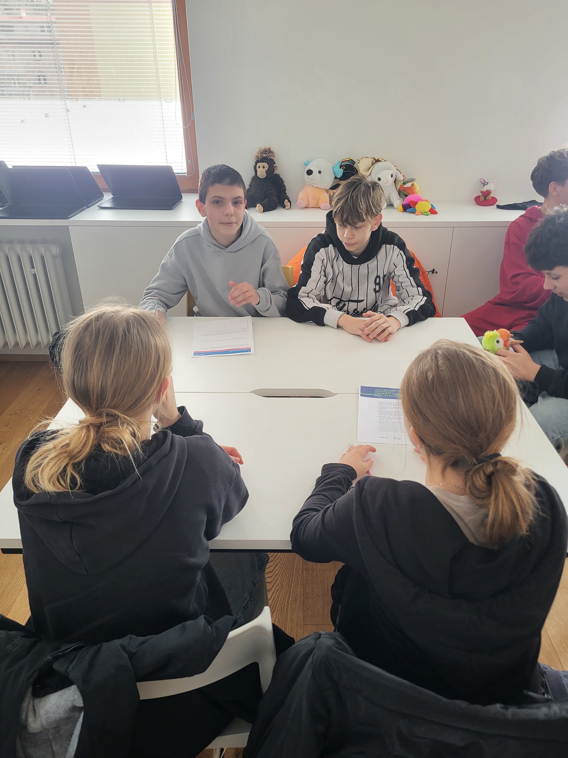 Umělá inteligence, téma, které rezonuje společností po celém světě. Třída 7.A navštívila nově zrekonstruovanou Masarykovu knihovnu ve Vsetíně, a společně s paní knihovnicí Holbíkovou, uvažovali nad užitečností a riziky z umělé inteligence. Dozvěděli se, jakým způsobem se umělá inteligence vyvíjí, jak ovlivňuje lidské vztahy, pracovní pozice a nepravdivé šíření informací. Společně jsme se pak shodli, že je lepší trávit čas s kamarády na čerstvém vzduchu, než si vytvářet nereálné přátelství s umělou inteligencí. Mgr. Zuzana Šerá