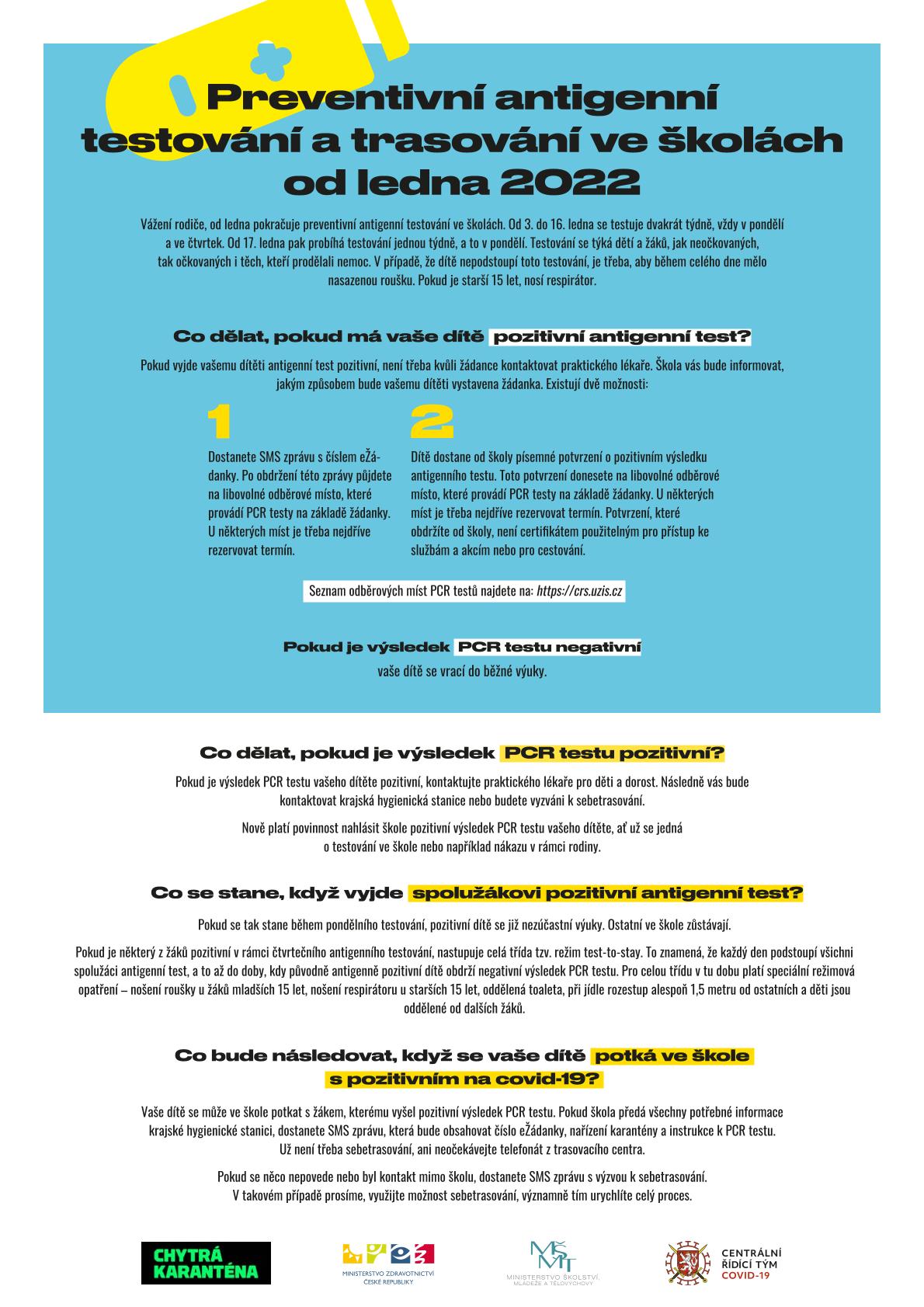 AKTUÁLNÍ INFORMACE PRO RODIČE – ANTIGENNÍ TESTOVÁNÍ A TRASOVÁNÍ VE ŠKOLÁCH OD LEDNA 2022