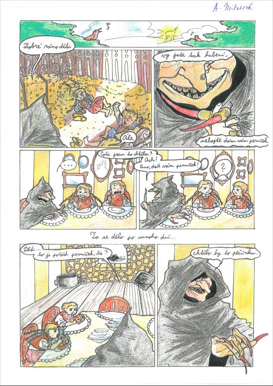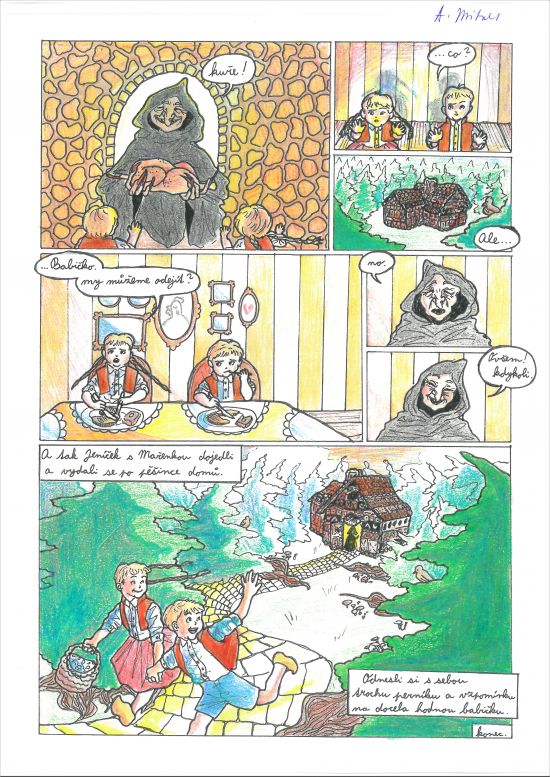Anička natolik zaujala porotu městského i okresního kola svým osobitým komiksovým pojetím klasické pohádky O perníkové chaloupce – nejen po stránce literární, ale především výtvarným zpracováním, které bylo velmi estetické a vyspělé na její věk. Proto Anna Miturová získala vítězné 1. místo i v okresním kole.