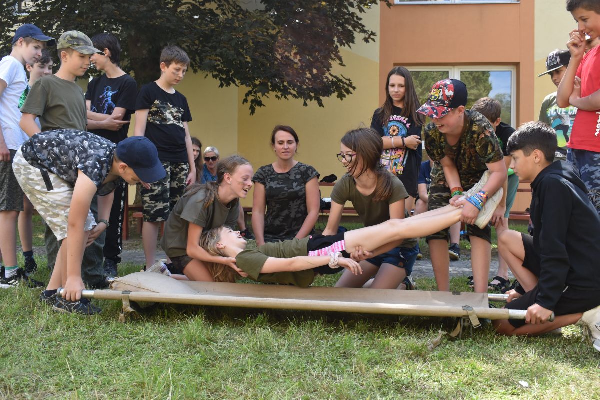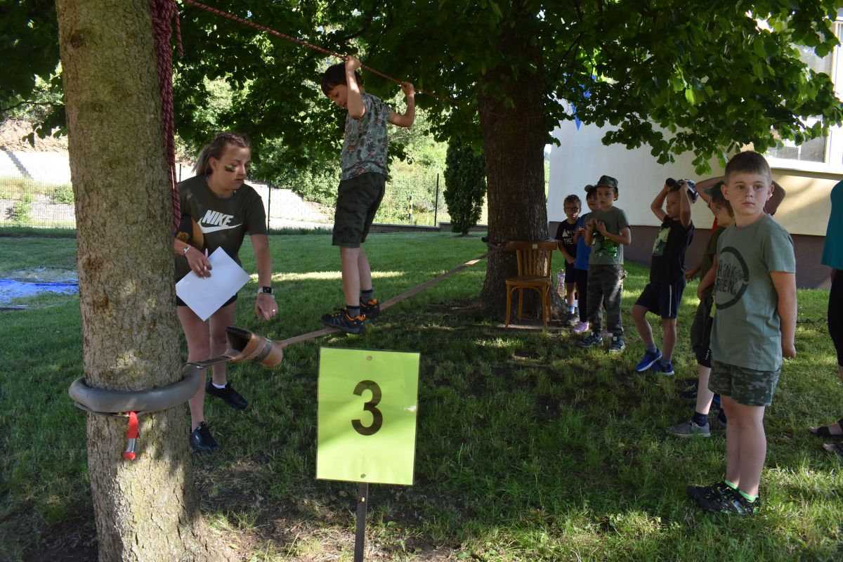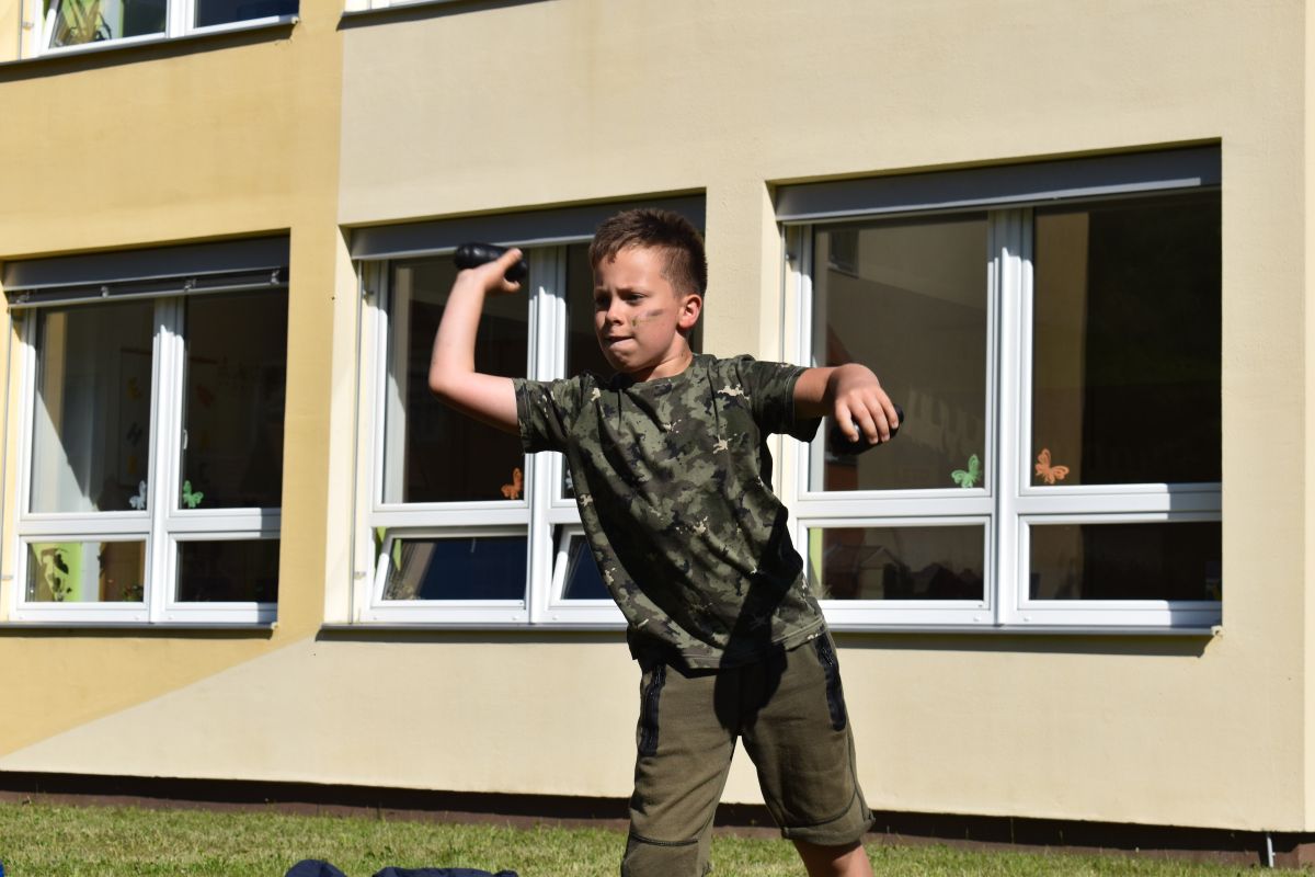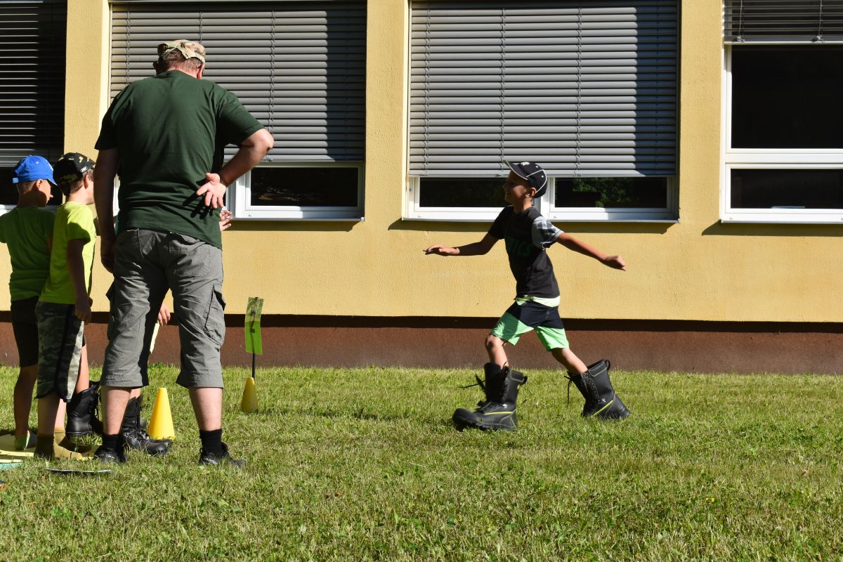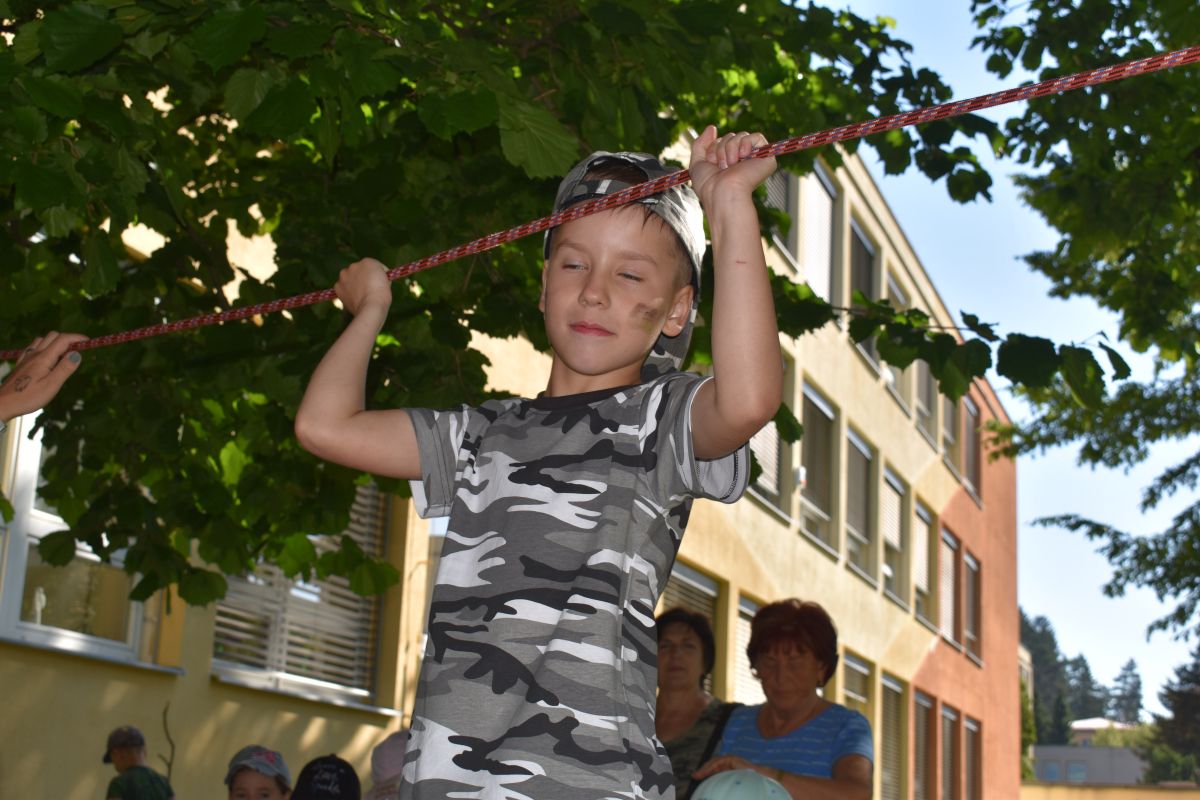 Na děti čekalo celkem 11 stanovišť např: střelba ze vzduchovky, hod granátem, přechod lana, dráha s plížením a proskakováním pneumatik, zdravověda, ale také třeba skoky v pytli nebo běh v kanadách. Na každém stanovišti získávaly děti body. Po jejich sečtení obdrželi všichni účastníci sladkou odměnu a nejlepší třída z I. a II. stupně dort.