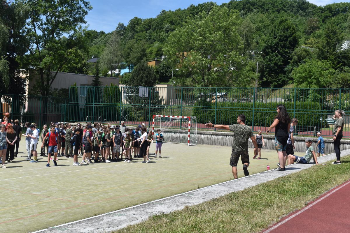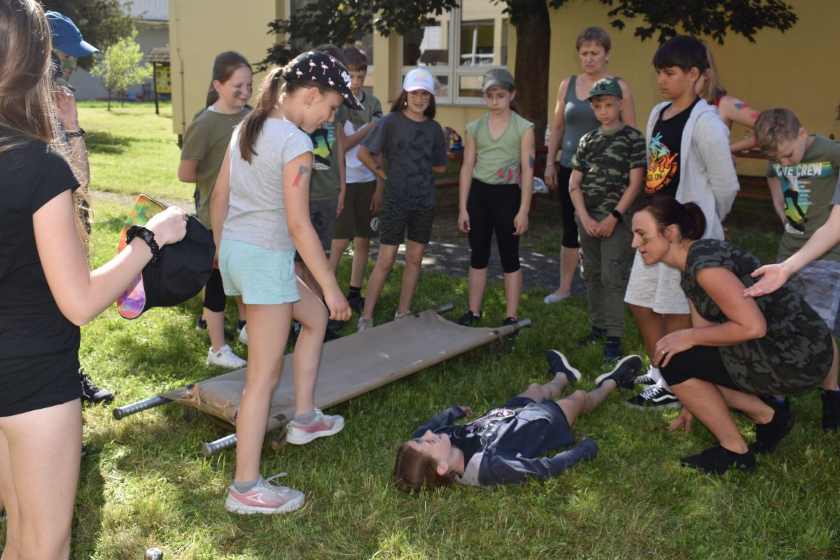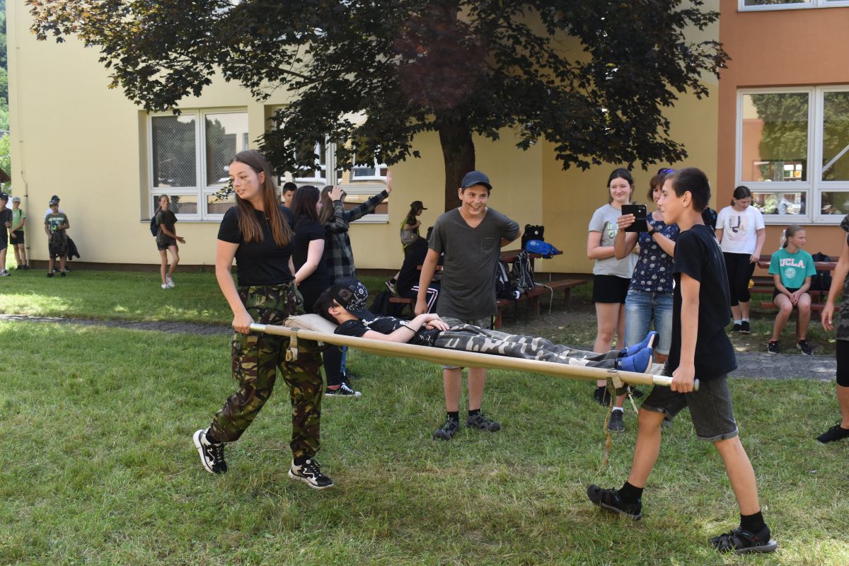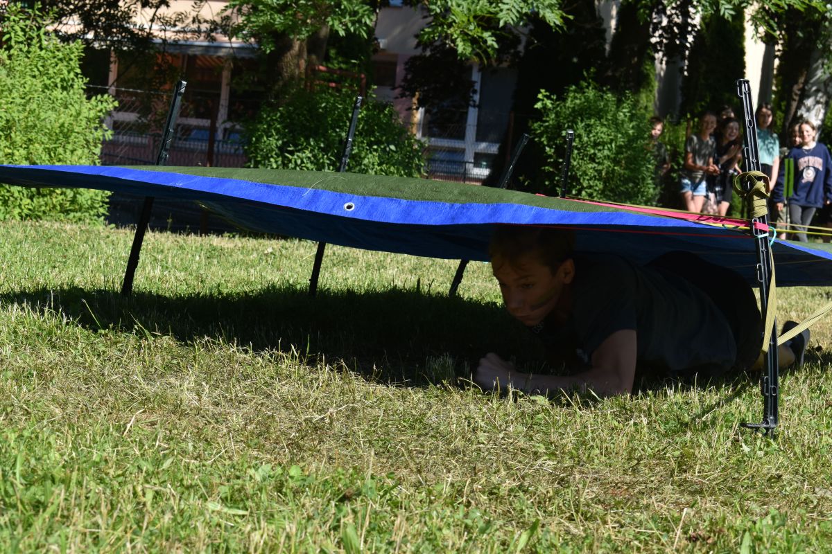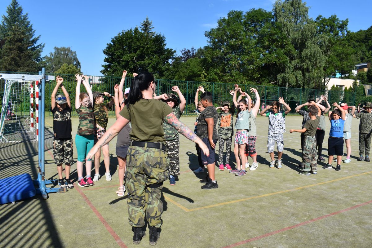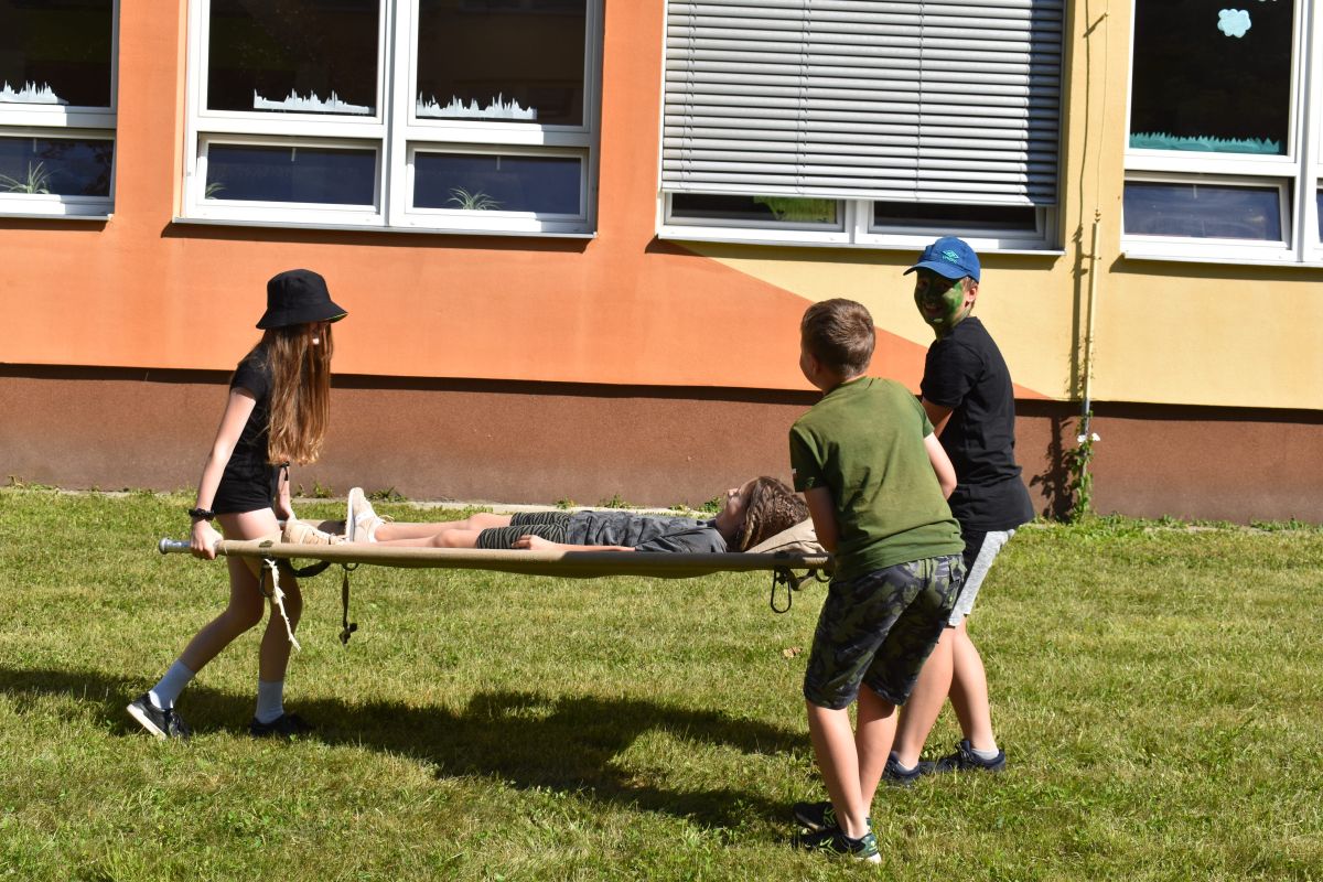 Na děti čekalo celkem 11 stanovišť např: střelba ze vzduchovky, hod granátem, přechod lana, dráha s plížením a proskakováním pneumatik, zdravověda, ale také třeba skoky v pytli nebo běh v kanadách. Na každém stanovišti získávaly děti body. Po jejich sečtení obdrželi všichni účastníci sladkou odměnu a nejlepší třída z I. a II. stupně dort.