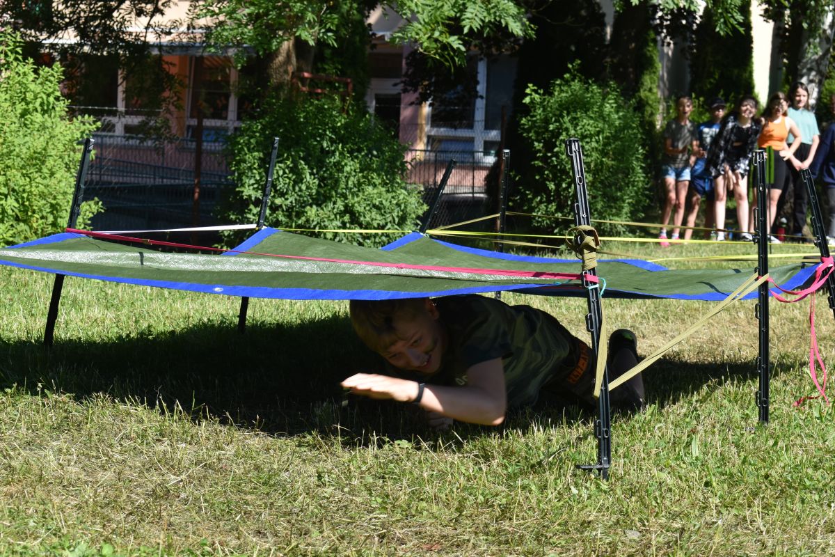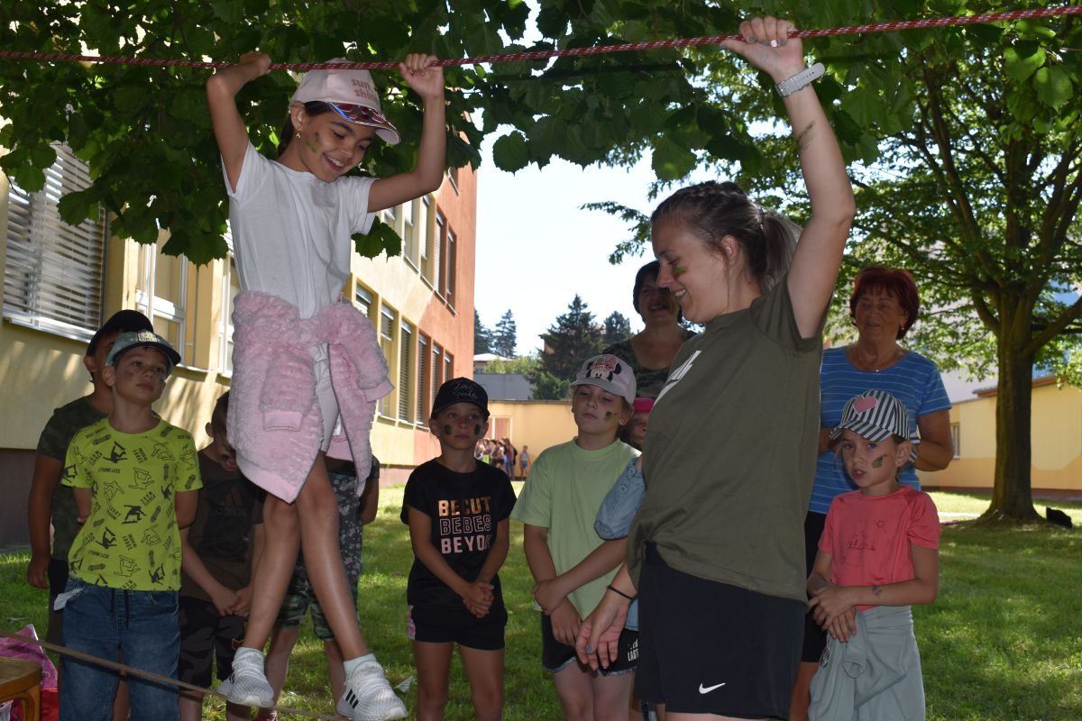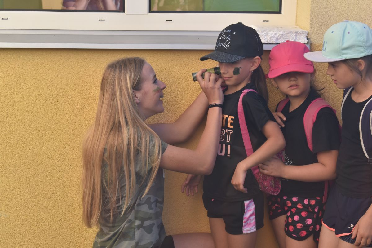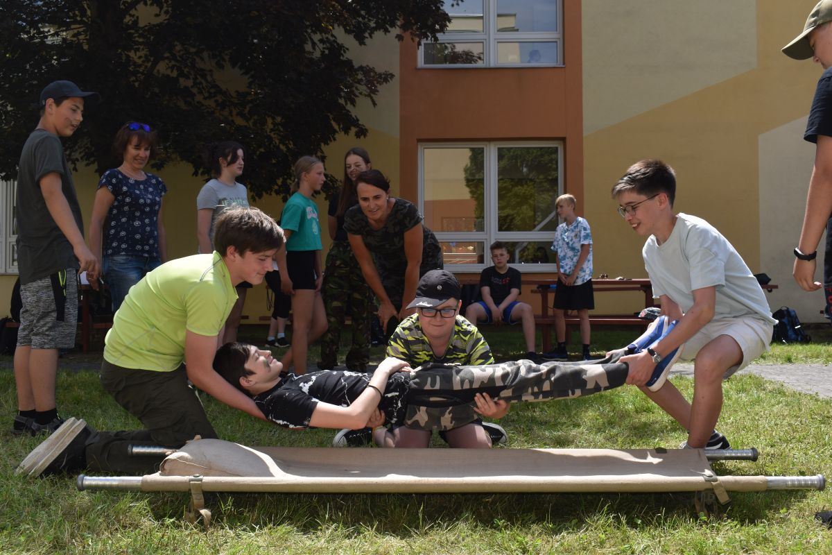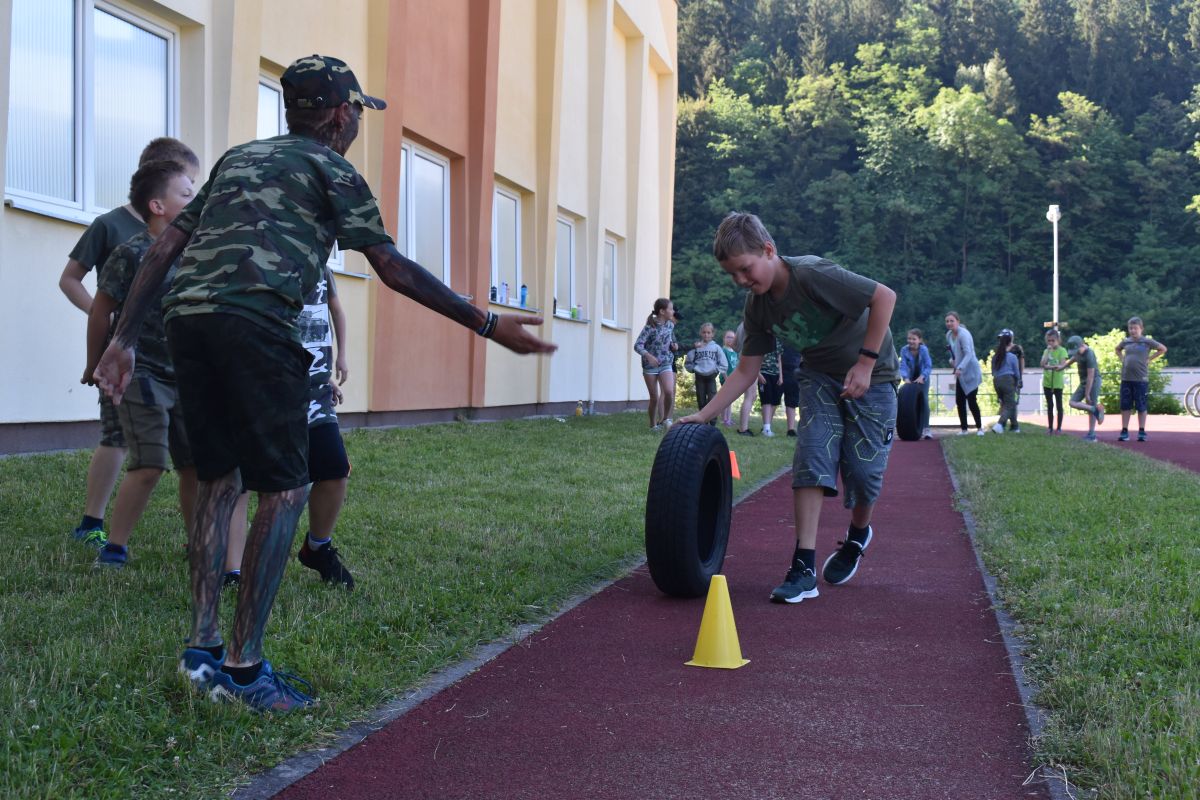 Na děti čekalo celkem 11 stanovišť např: střelba ze vzduchovky, hod granátem, přechod lana, dráha s plížením a proskakováním pneumatik, zdravověda, ale také třeba skoky v pytli nebo běh v kanadách. Na každém stanovišti získávaly děti body. Po jejich sečtení obdrželi všichni účastníci sladkou odměnu a nejlepší třída z I. a II. stupně dort.
