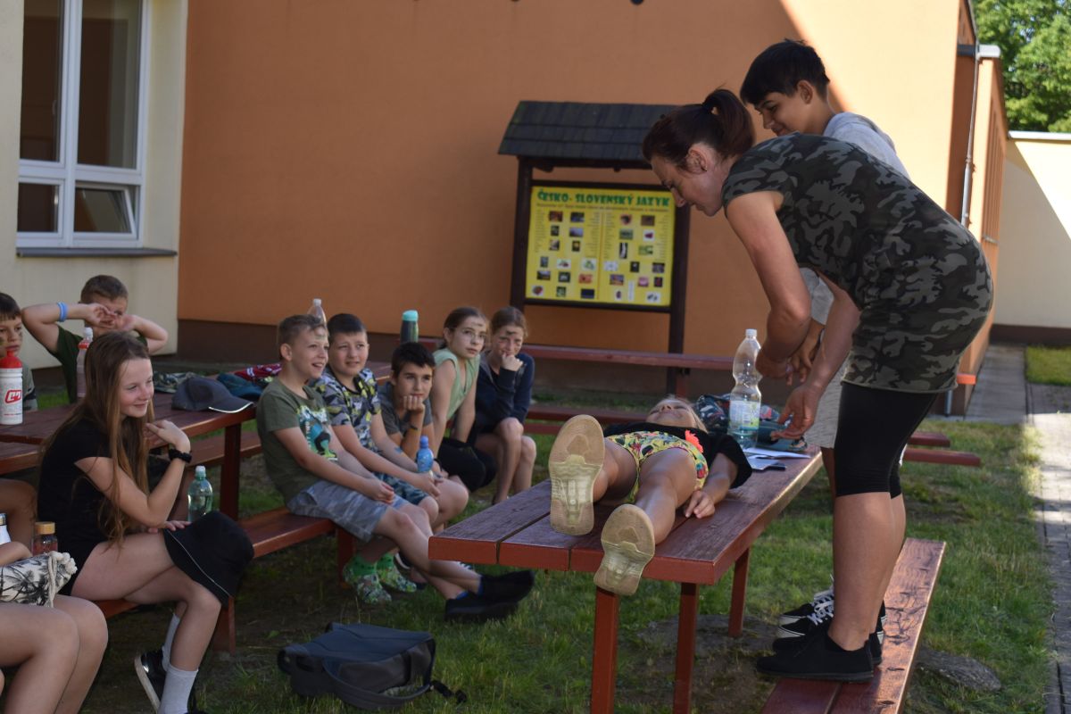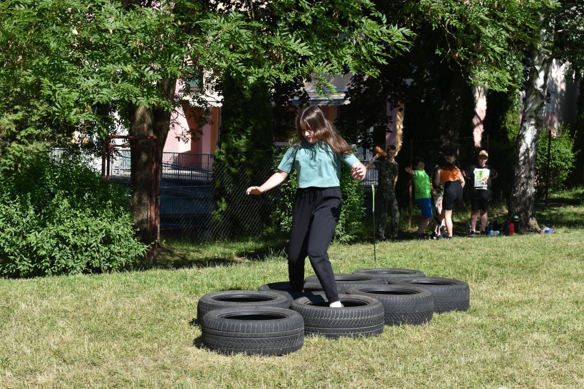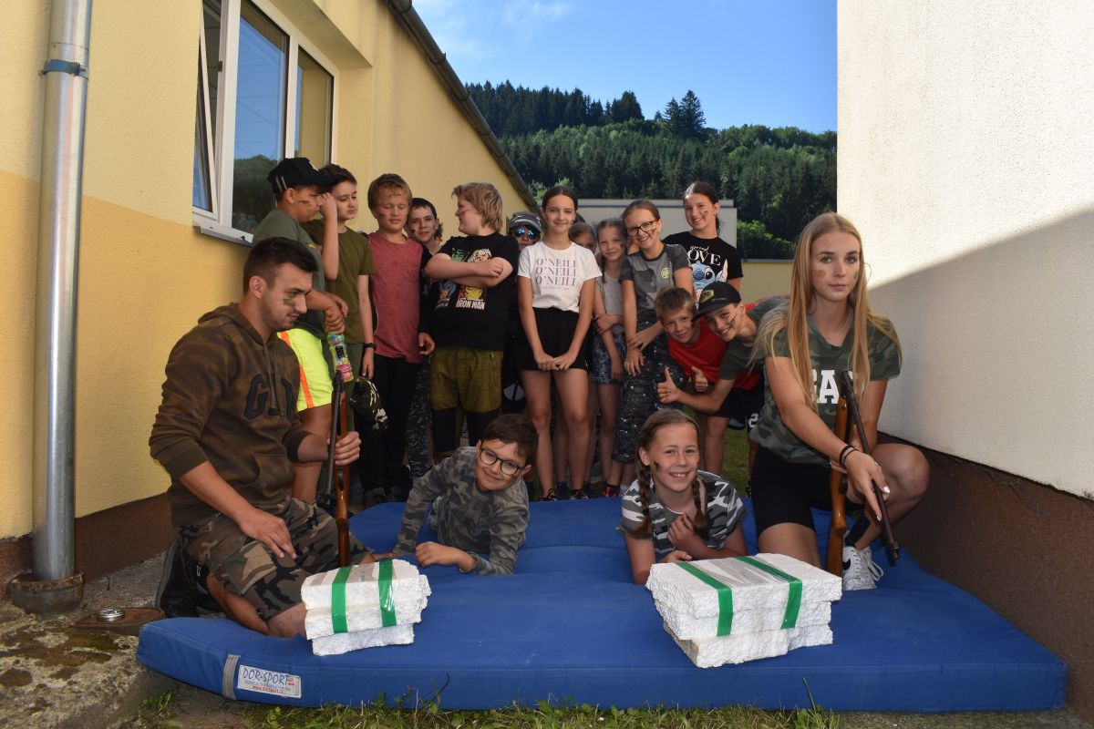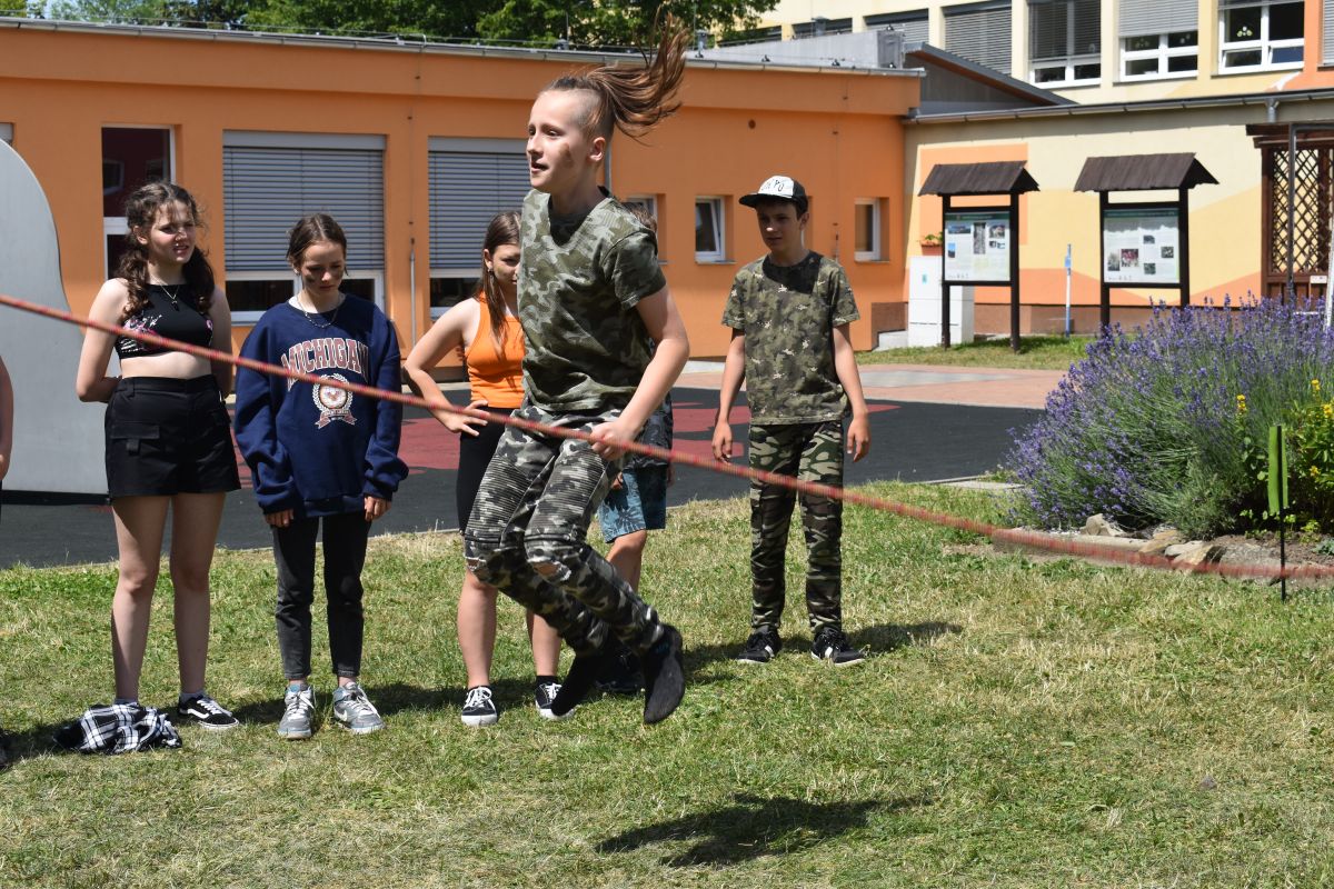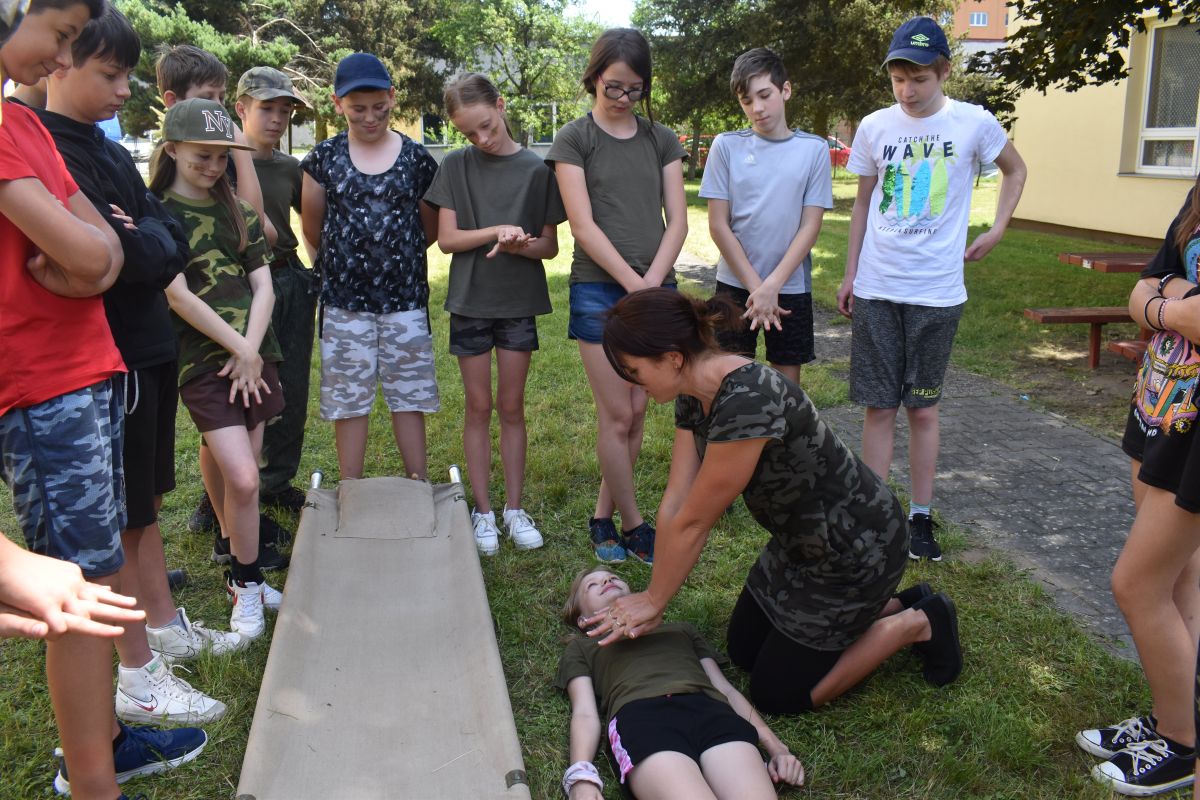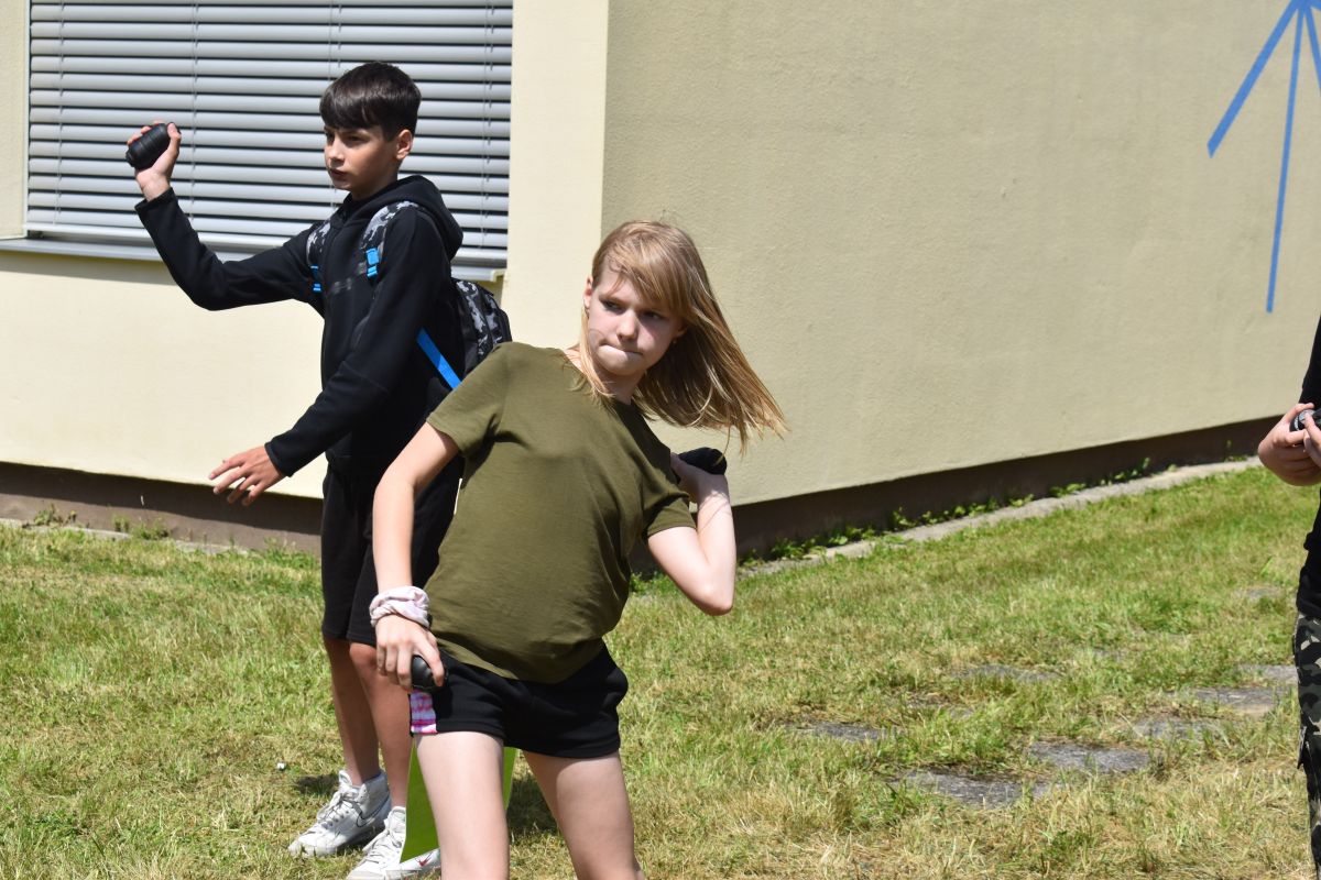 Na děti čekalo celkem 11 stanovišť např: střelba ze vzduchovky, hod granátem, přechod lana, dráha s plížením a proskakováním pneumatik, zdravověda, ale také třeba skoky v pytli nebo běh v kanadách. Na každém stanovišti získávaly děti body. Po jejich sečtení obdrželi všichni účastníci sladkou odměnu a nejlepší třída z I. a II. stupně dort.