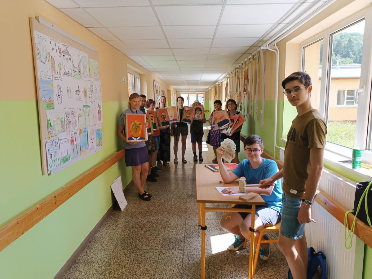 V hodinách výtvarné výchovy, žáci malovali své učitele. Práce byly velmi zdařilé, a proto se uspořádala celoškolní aukce těchto portrétů. Nakonec se vydražilo přes 2000 Kč, což je krásný výdělek. Polovina půjde na výtvarné potřeby a ta druhá zůstane deváťákům. Děkujeme za účast v aukci.