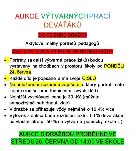 Aukce výtvarných prací deváťáků