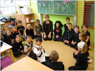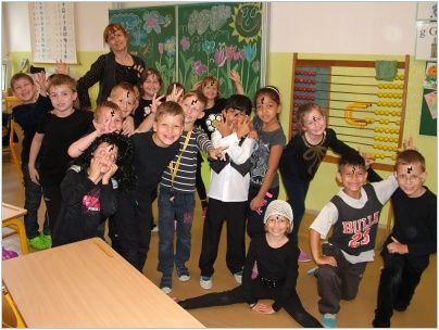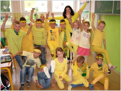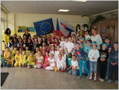 Protože děti milují soutěžení, každá třída měla možnost si vylosovat barvu v podobě kostičky z klobouku kouzelníka Pokustona a ve zvoleném odstínu pak na sebe obléci co nejvíce svršků a doplňků. Jak si to děti užívali? Stačí se podívat na fotky.......
