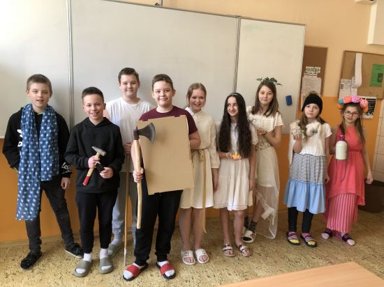 V 6. A se v dějepise rozhodně nenudíme a nebojíme se ani stát se na chvíli bohy a bohyněmi z řeckých bájí. V úterý před Velikonocemi jsme se sešli v náležitých róbách a s božskými atributy a zahráli si na obyvatele Olympu. Všem, kteří se na ztvárnění bohů podíleli, moc děkuji za krásné kostýmy a aktivitu. Mgr. Lucie Hrazdilová