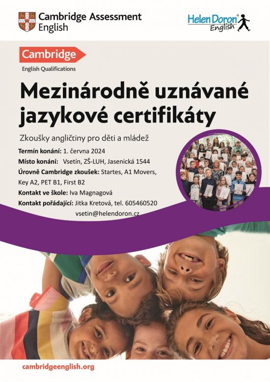 Máš zájem o mezinárodně uznávaný jazykový certifikát? 1. června budou přímo na naší škole probíhat zkoušky z AJ různé jazykové úrovně.