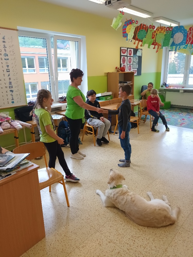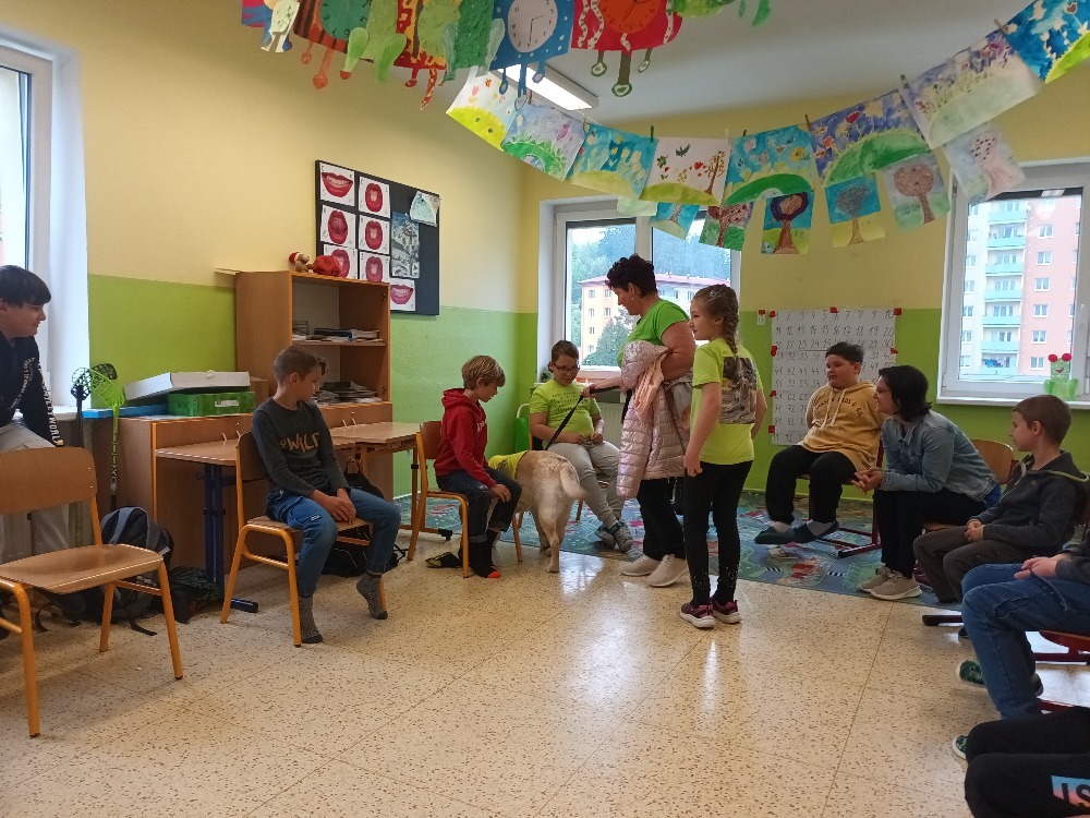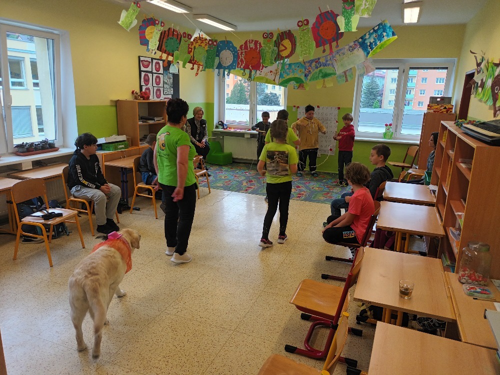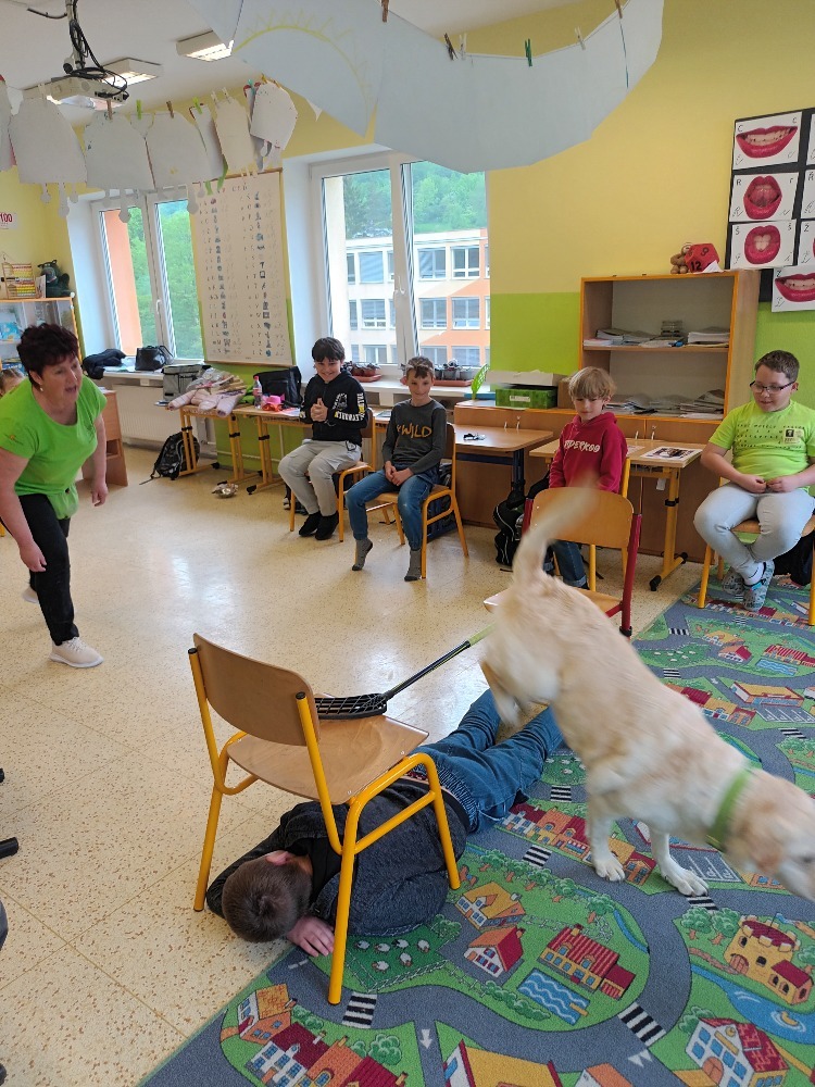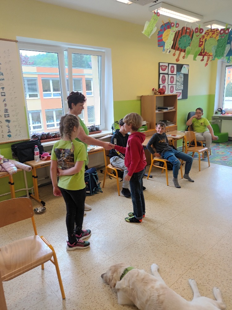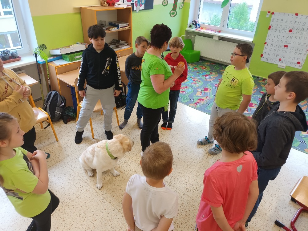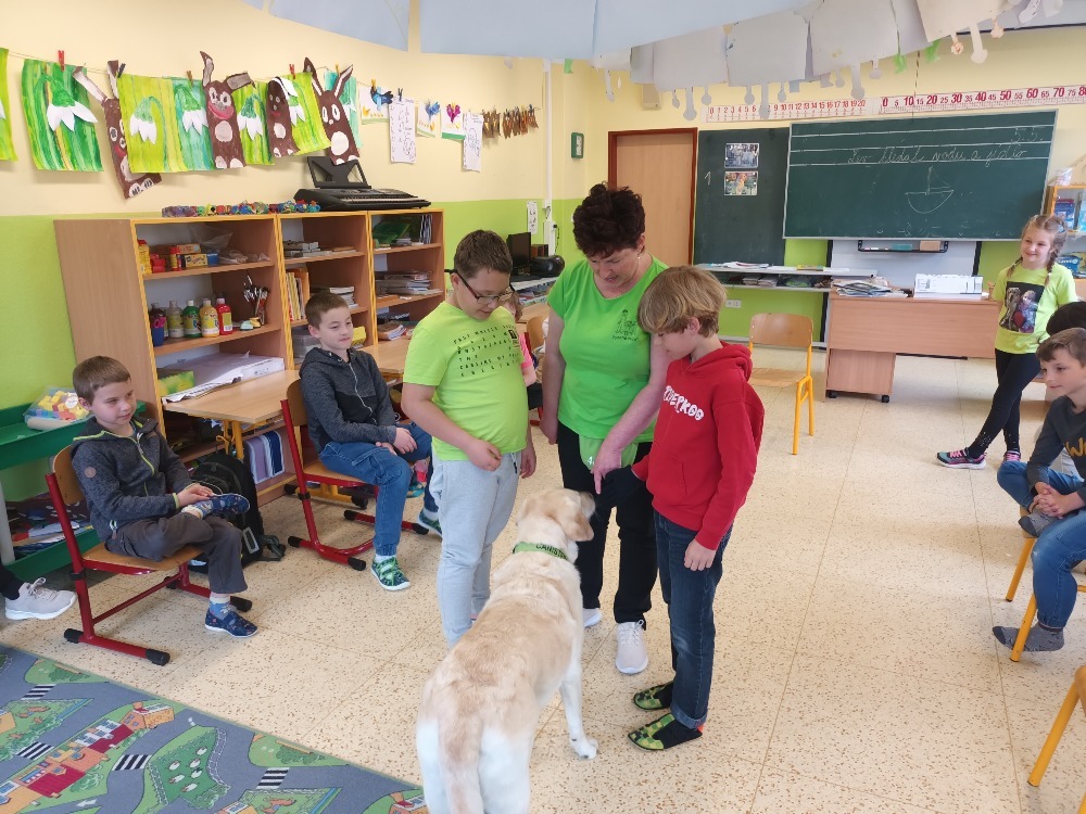 V úterý 6. května jsme si ve třídě 2.C udělali moc pěkný den. Pozvali jsme si k nám na návštěvu canisterapeutickou fenku labradorského retrívra Elzu. Elza nám se svou majitelkou předvedla základní i speciální výcvik. Zahráli jsme si spoustu her na upevnění přátelství, kdy se musíme spolehnout jeden na druhého. Odměnou nám byly hezké dárky a nový psí kamarád. Děkujeme. Žáci 2.C.