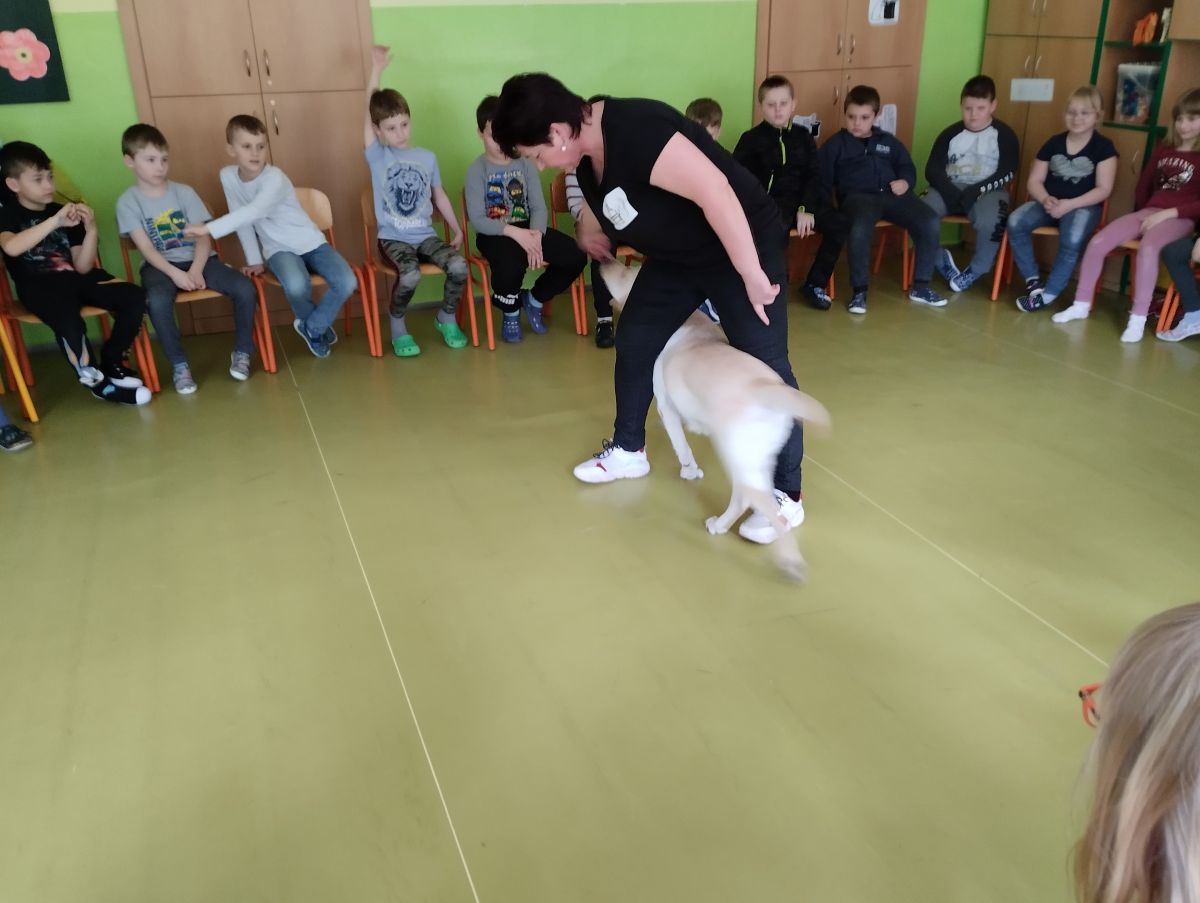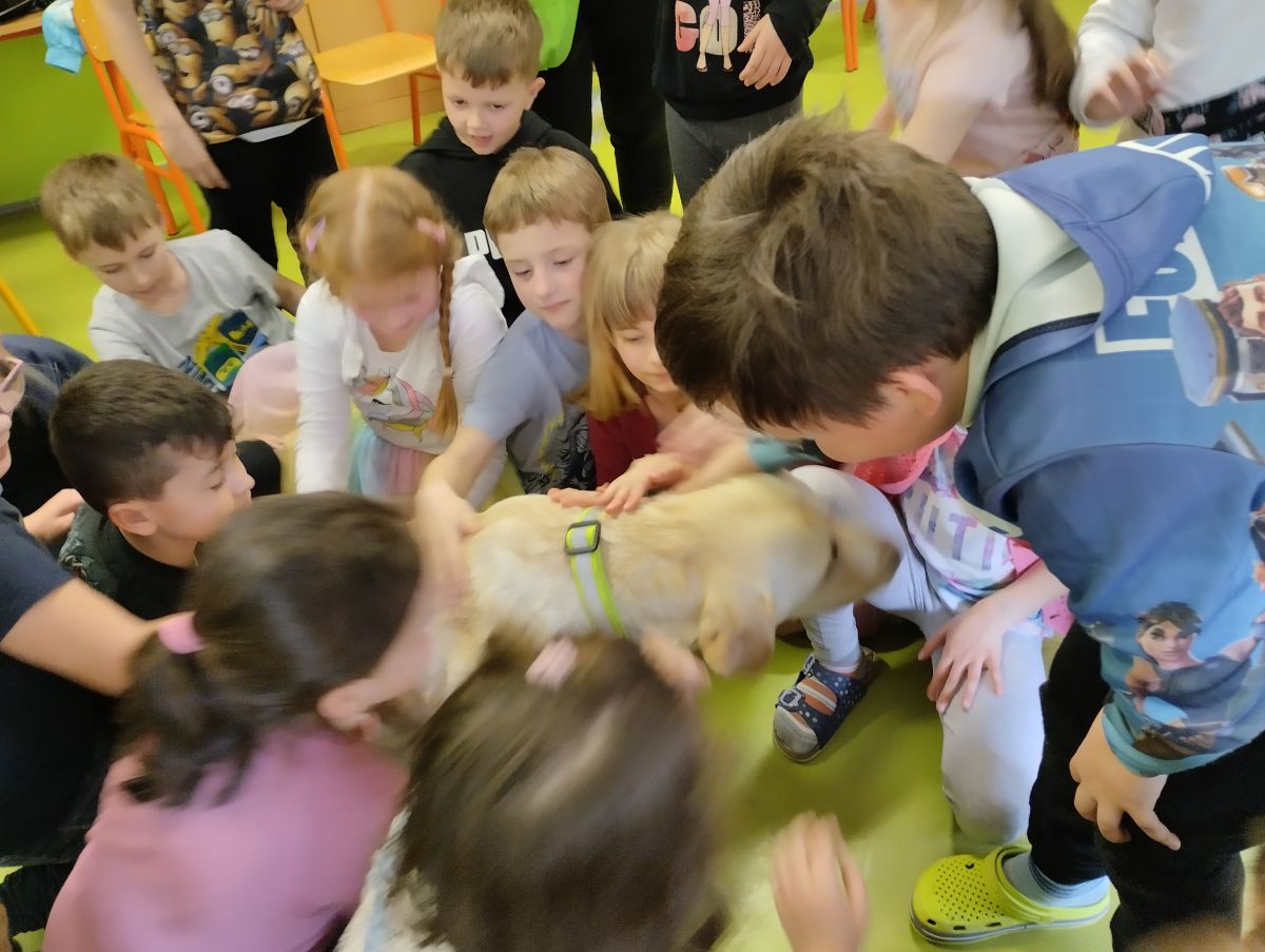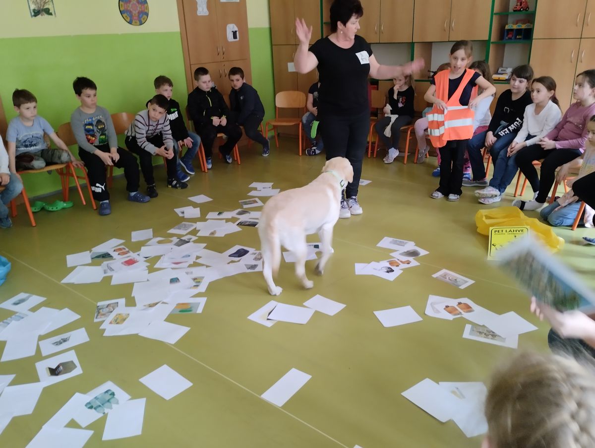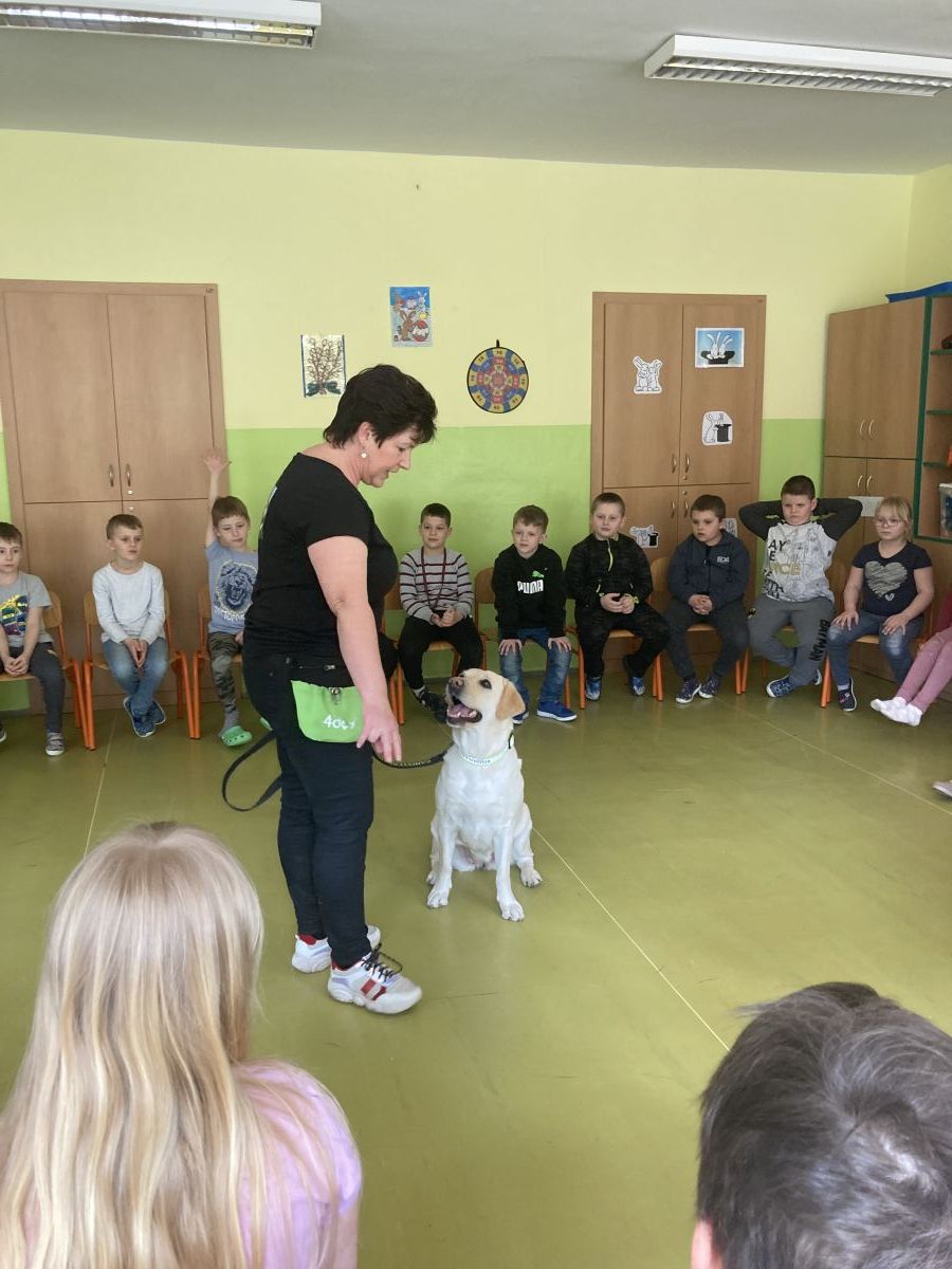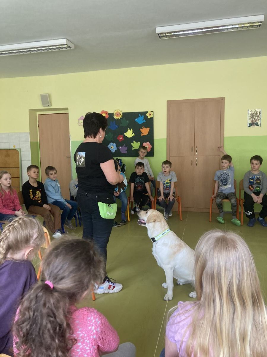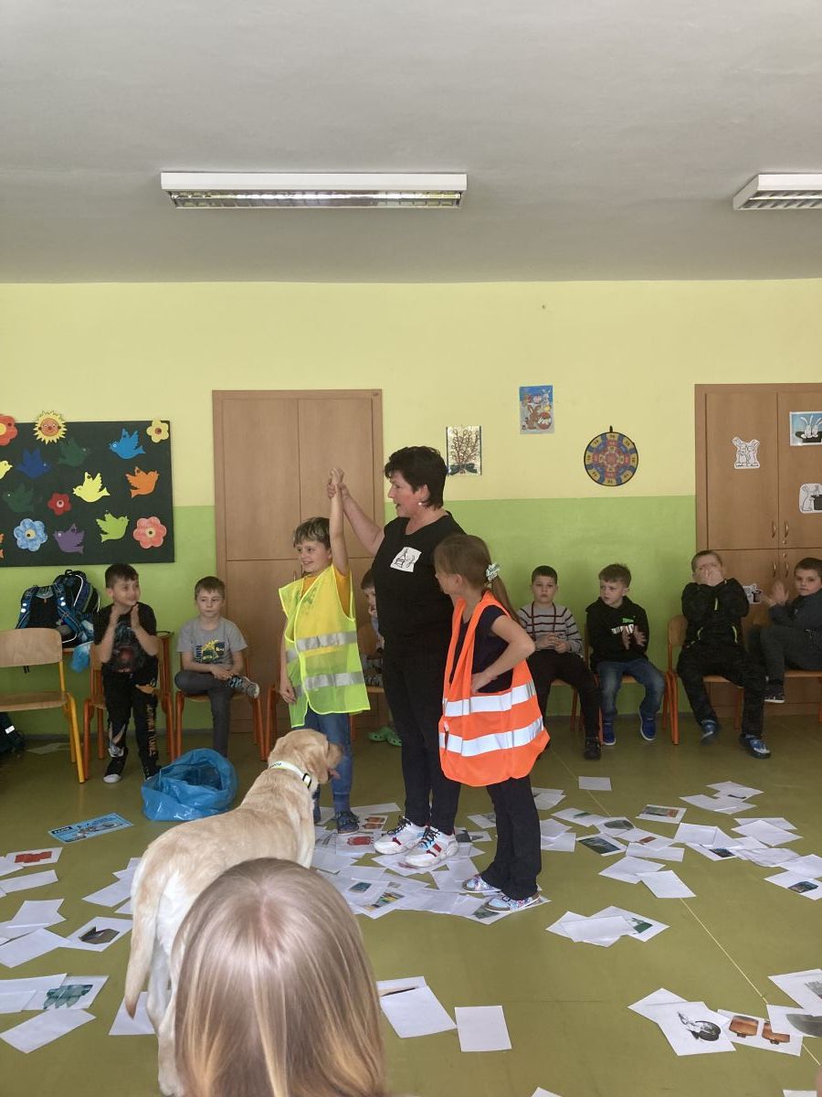 V minulém týdnu přišla do školní družiny velká návštěva. Byla to fenečka Elza se svojí paničkou – vedoucí lektorkou canisterapeutického týmu – Pavlínou Dujkovou. Elza se velmi rychle spřátelila s dětmi, předvedla, co všechno umí. Například jak se dokáže starat o nemocného, nosit předměty a výborně reagovat na povely své paničky.