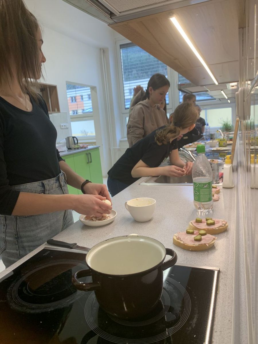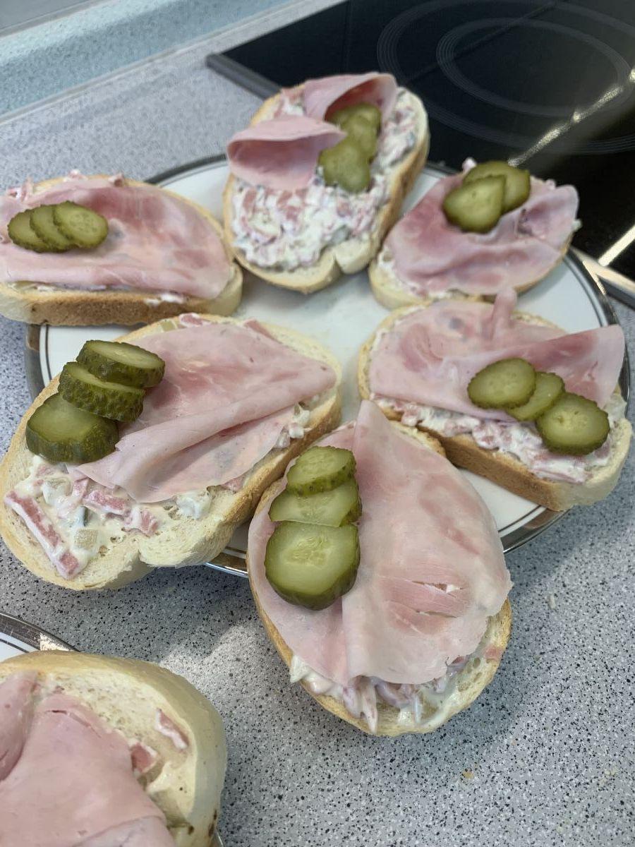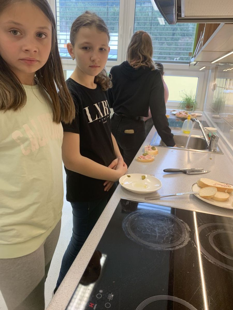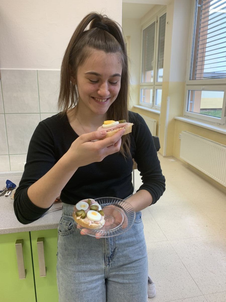 Ve vaření jsme výjimečně nevařili, zato jsme si ale zkusili připravit chlebíčky pro zvláštní příležitost. Odpoledne jsme si moc užili a tuto slavnostní pochoutku už zvládneme připravit úplně sami.