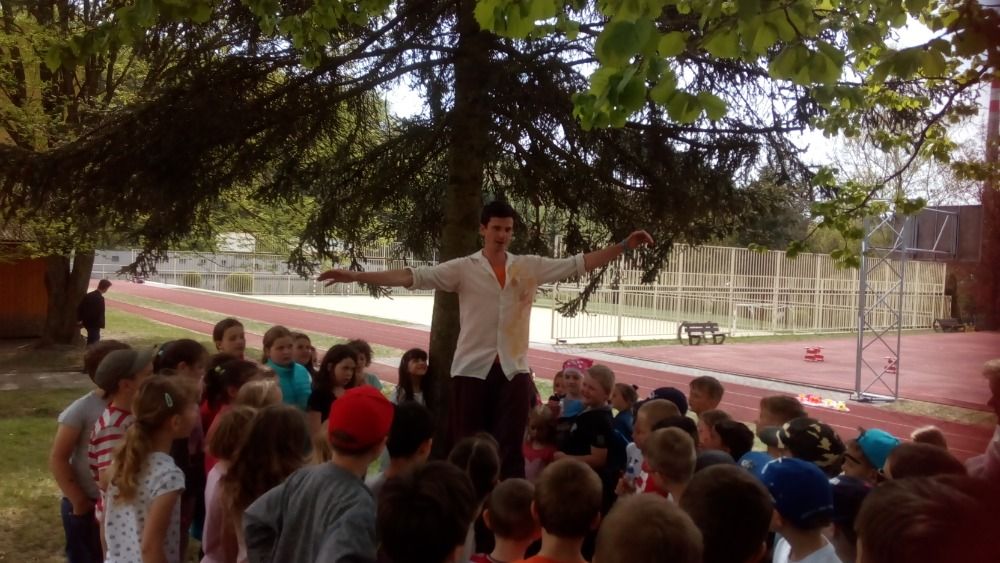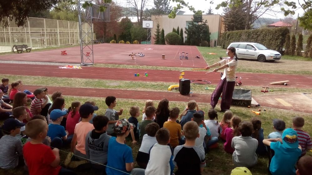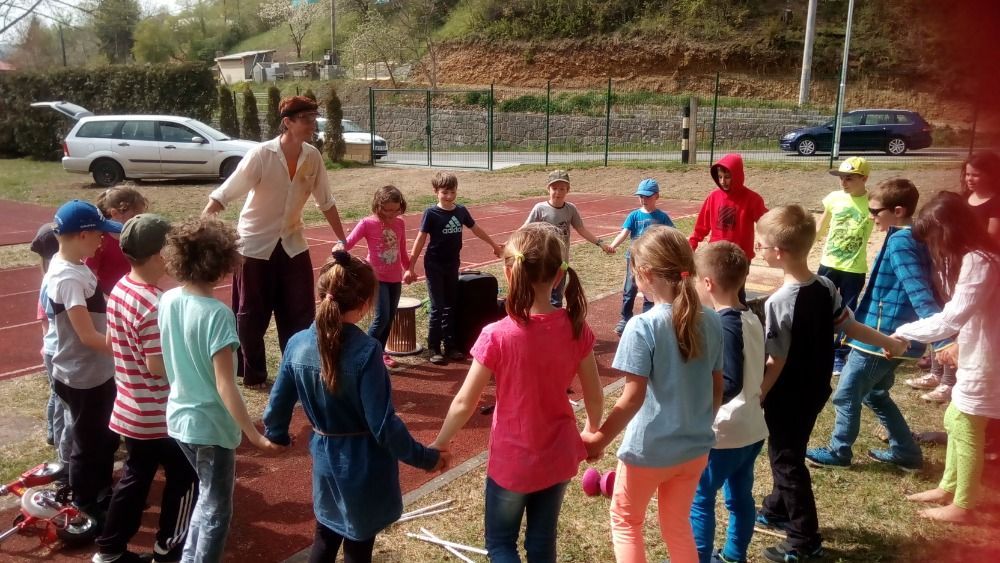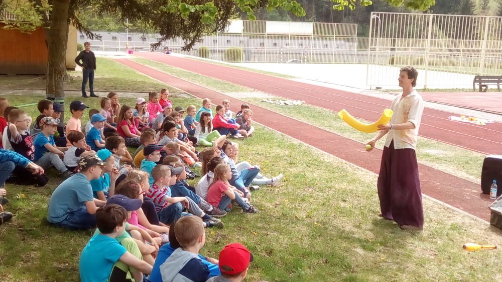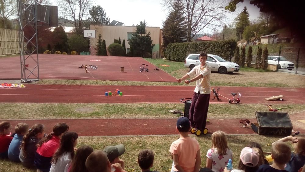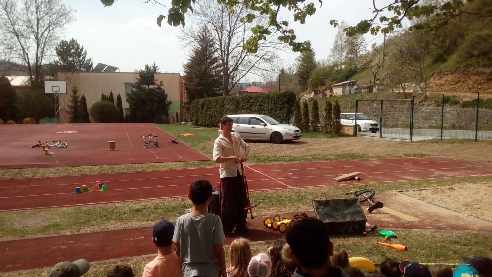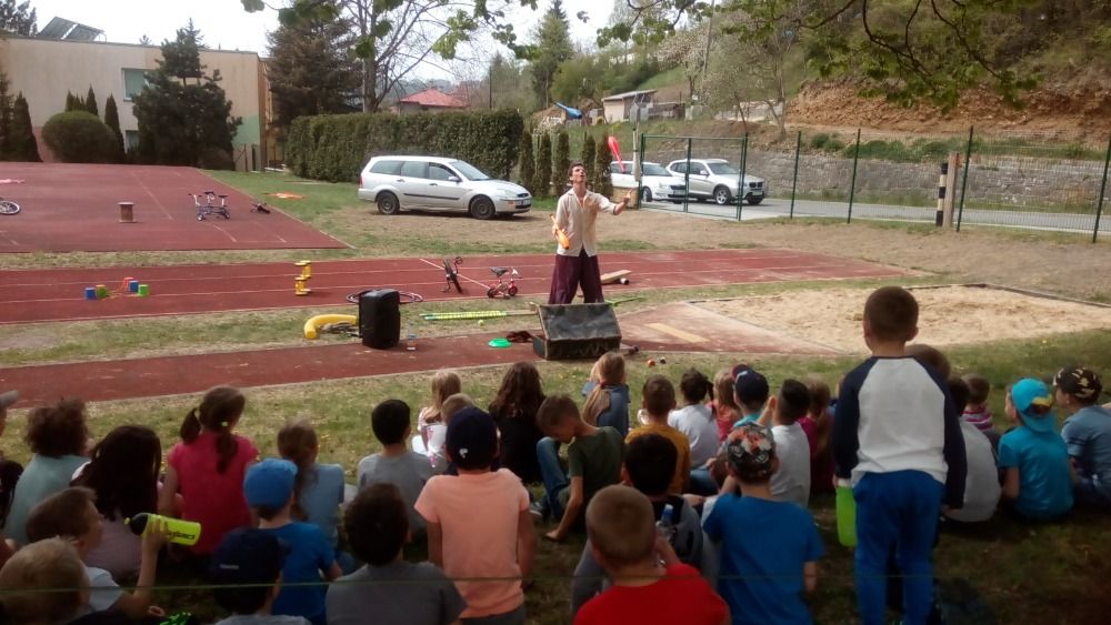 Nejen že nám předvedl své žonglérské schopnosti, při kterých na nás dýchla cirkusová atmosféra, ale děti aktivně zapojil do akce a žonglování si mohly sami vyzkoušet.