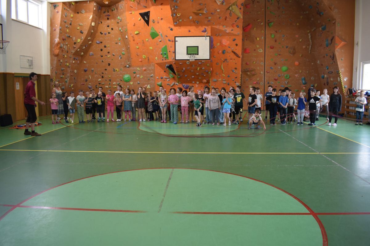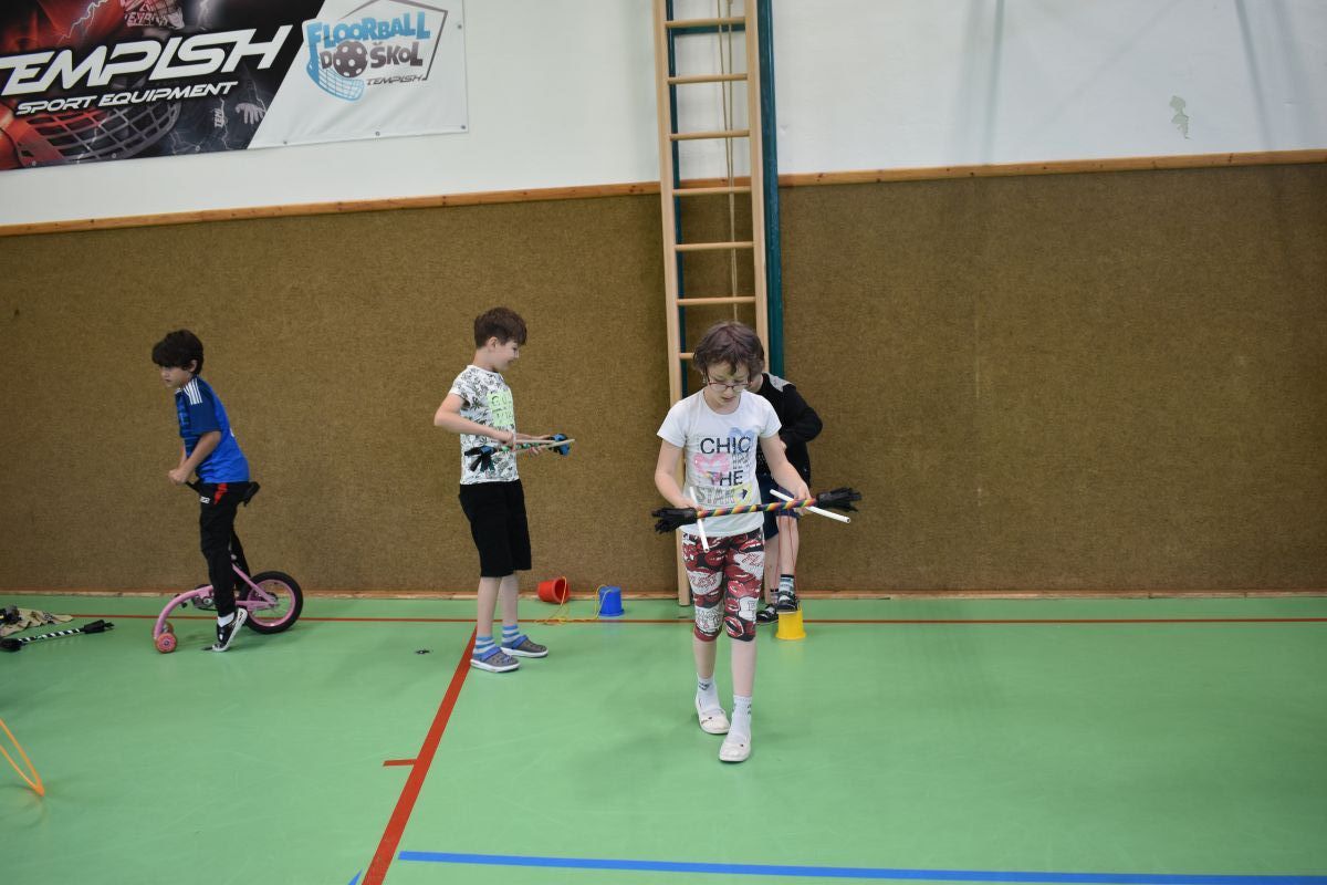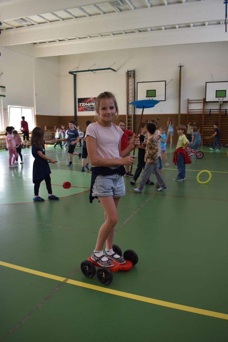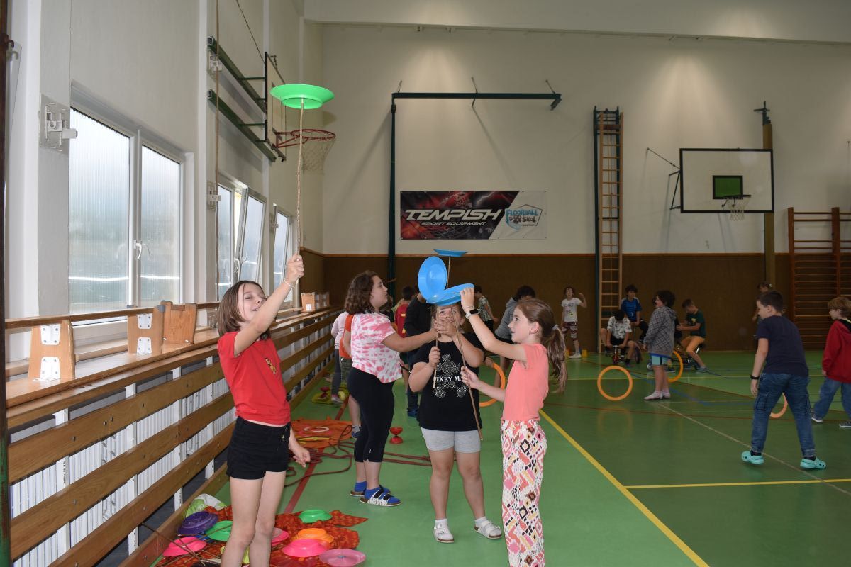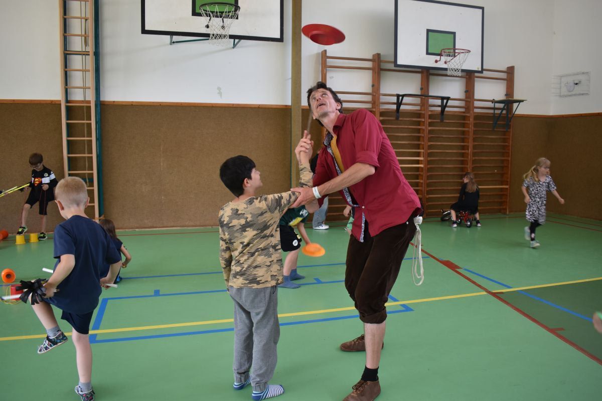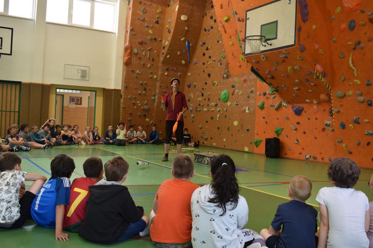 Po úvodním seznámení s dětmi a společné pohybové aktivitě vystoupil lektor s ukázkami všech pomůcek s vysvětlením principů. Na rozložených stanovištích si žáci vyzkoušeli jednotlivé cirkusové pomůcky, kde byl lektor k dispozici v pomoci, vysvětlení a nácviku. Jak se dětem cirkusové kousky dařily se můžete podívat na pořízených fotografiích.