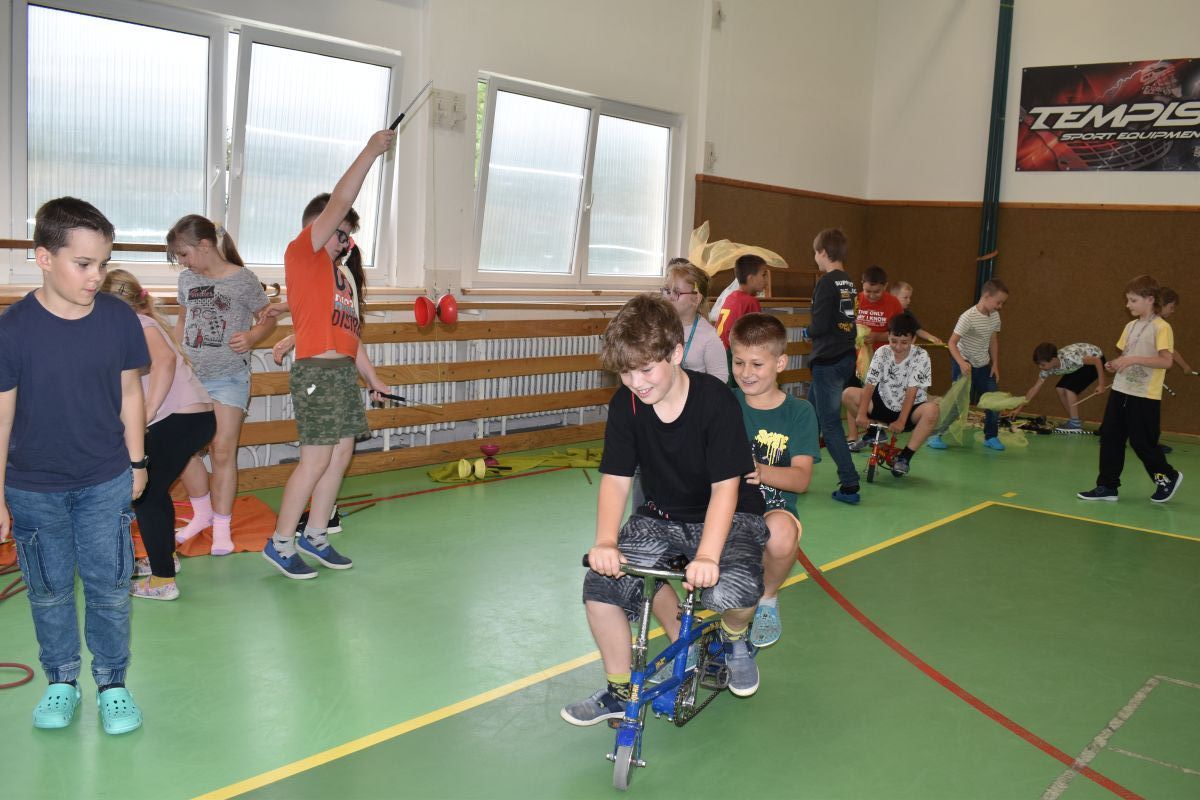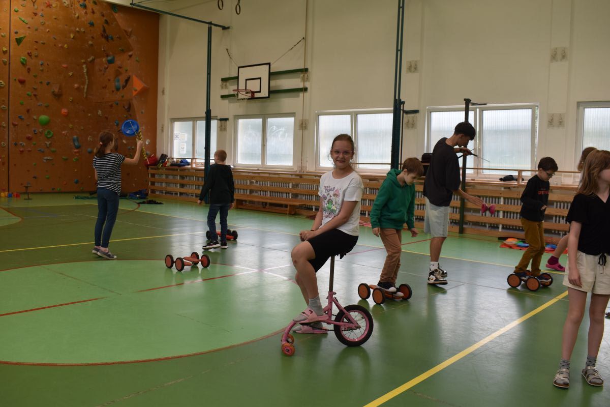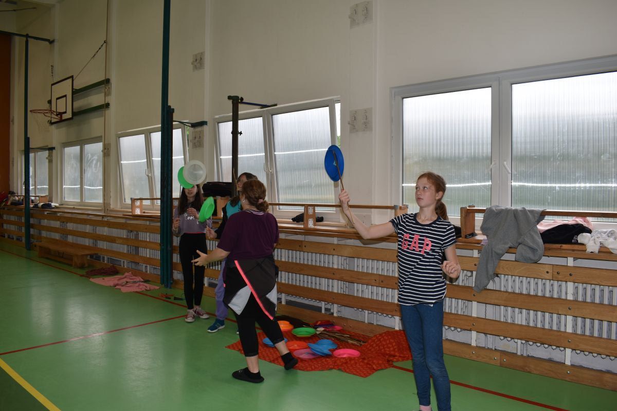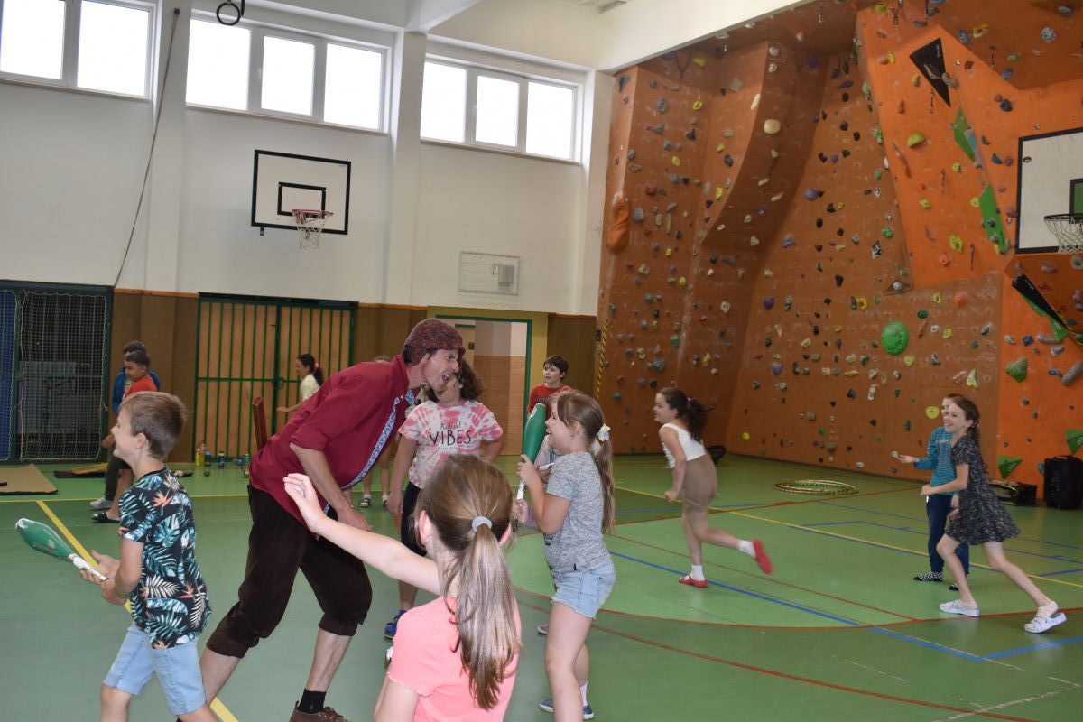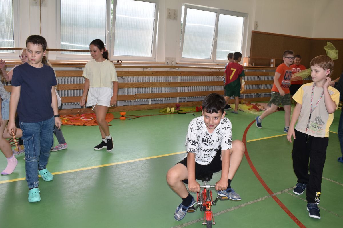 Po úvodním seznámení s dětmi a společné pohybové aktivitě vystoupil lektor s ukázkami všech pomůcek s vysvětlením principů. Na rozložených stanovištích si žáci vyzkoušeli jednotlivé cirkusové pomůcky, kde byl lektor k dispozici v pomoci, vysvětlení a nácviku. Jak se dětem cirkusové kousky dařily se můžete podívat na pořízených fotografiích.