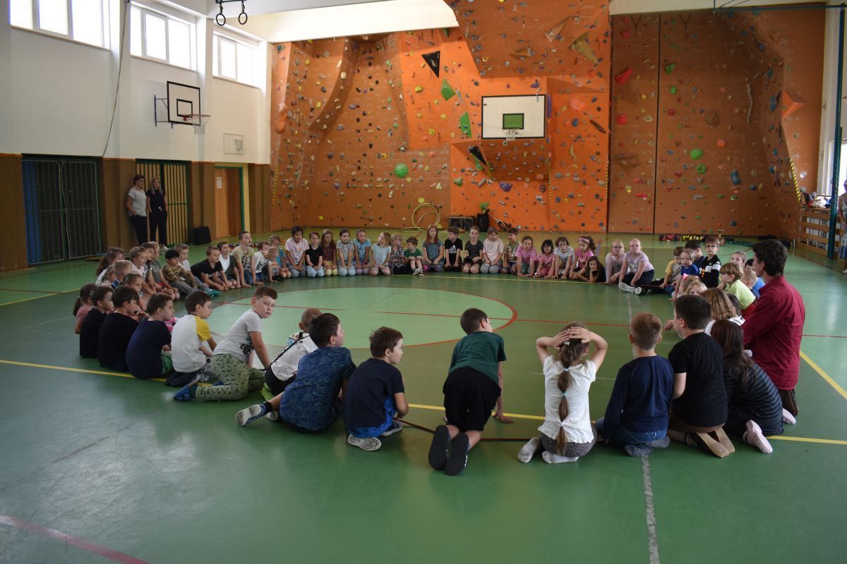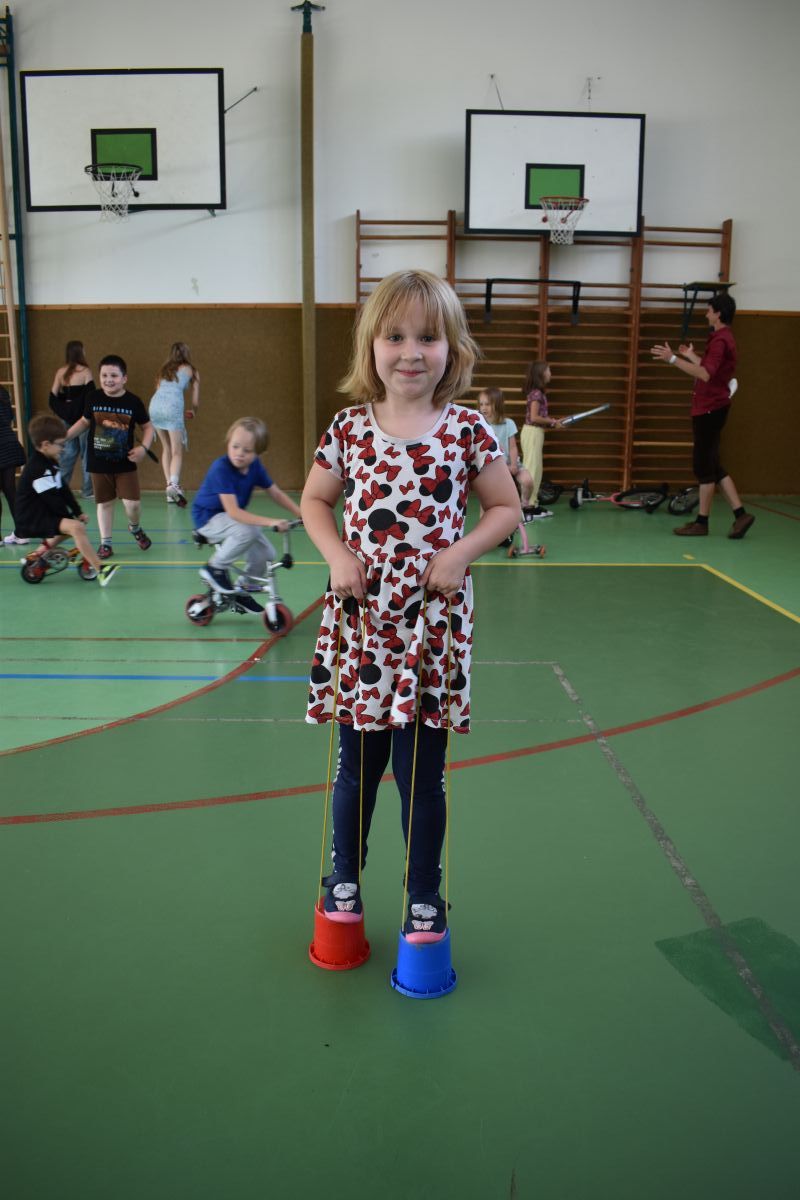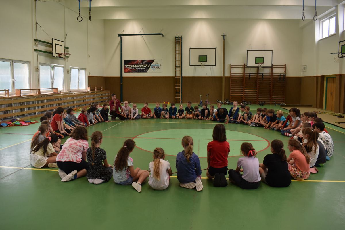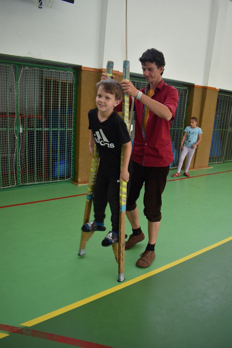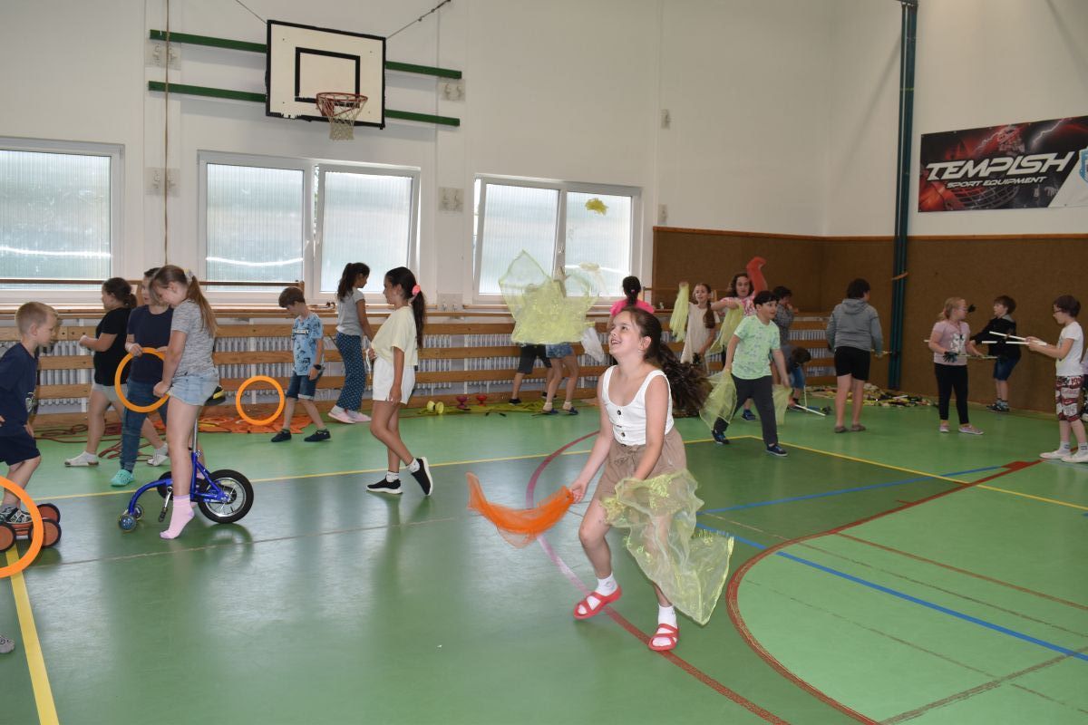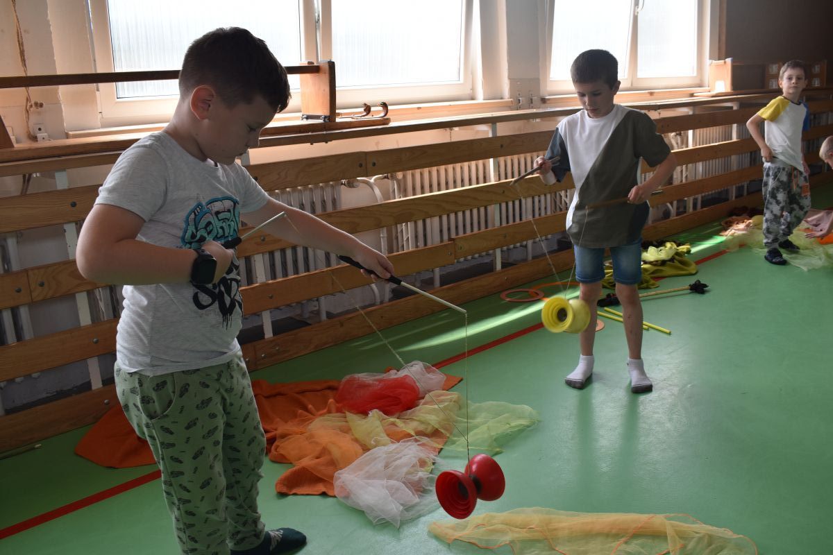 Po úvodním seznámení s dětmi a společné pohybové aktivitě vystoupil lektor s ukázkami všech pomůcek s vysvětlením principů. Na rozložených stanovištích si žáci vyzkoušeli jednotlivé cirkusové pomůcky, kde byl lektor k dispozici v pomoci, vysvětlení a nácviku. Jak se dětem cirkusové kousky dařily se můžete podívat na pořízených fotografiích.