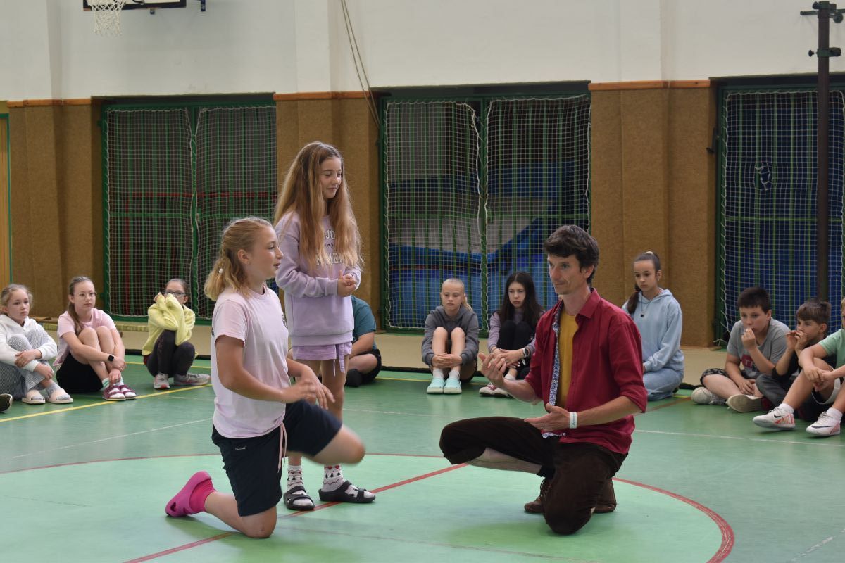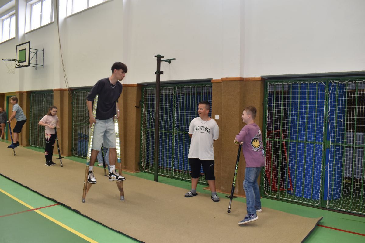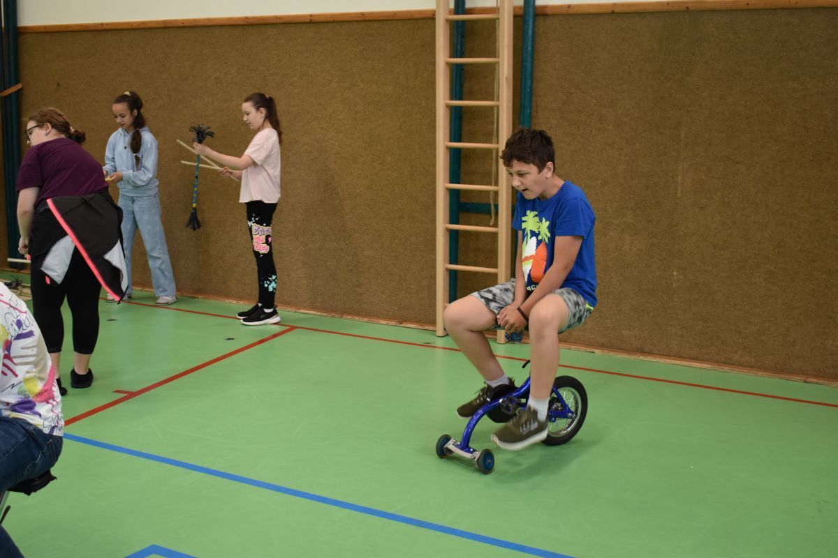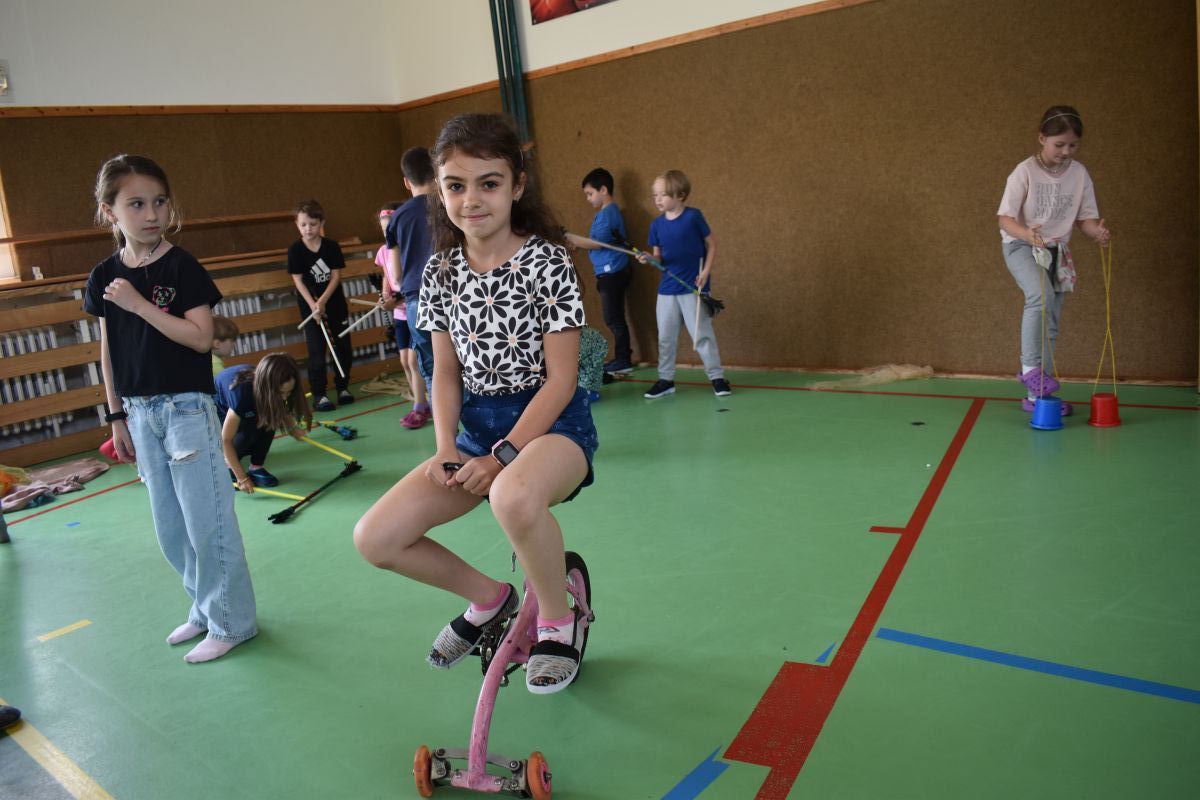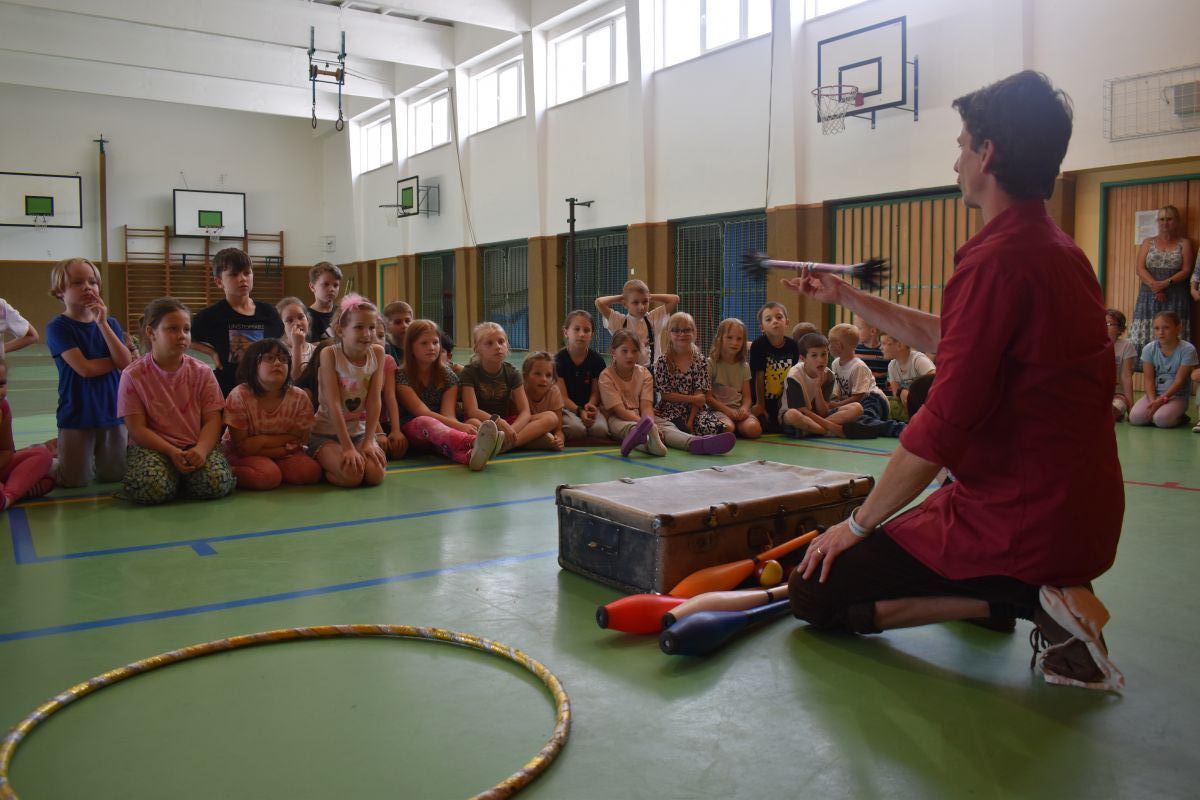 Po úvodním seznámení s dětmi a společné pohybové aktivitě vystoupil lektor s ukázkami všech pomůcek s vysvětlením principů. Na rozložených stanovištích si žáci vyzkoušeli jednotlivé cirkusové pomůcky, kde byl lektor k dispozici v pomoci, vysvětlení a nácviku. Jak se dětem cirkusové kousky dařily se můžete podívat na pořízených fotografiích.