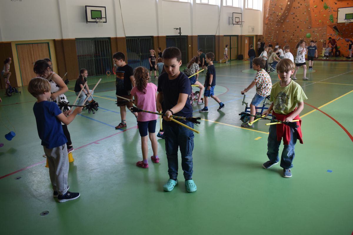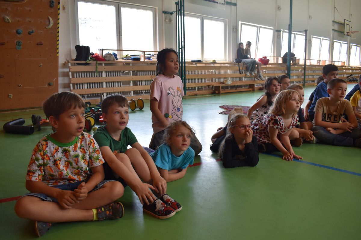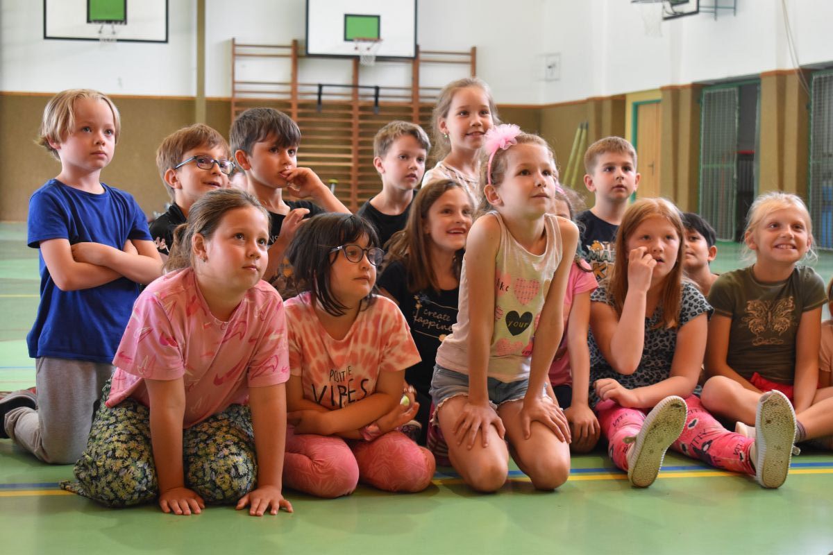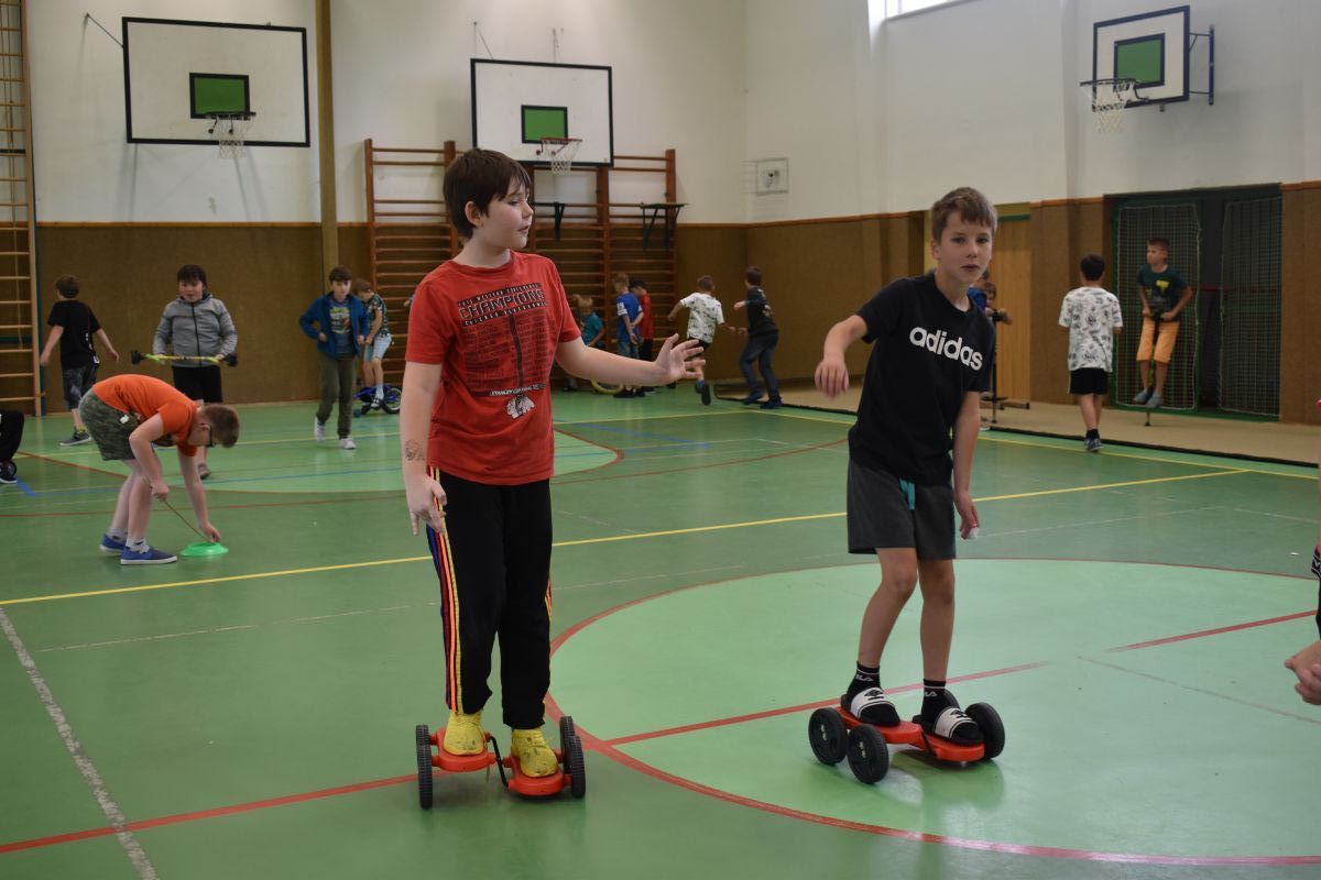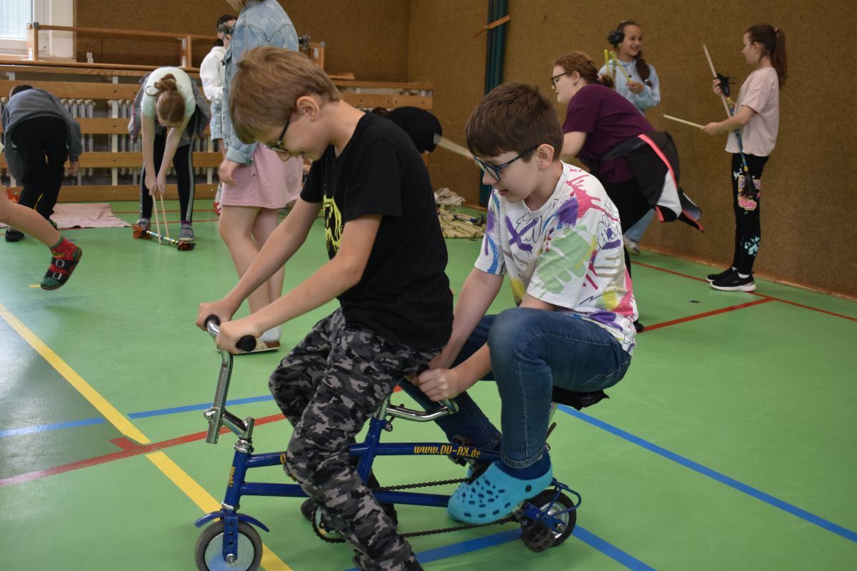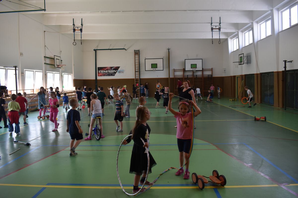Po úvodním seznámení s dětmi a společné pohybové aktivitě vystoupil lektor s ukázkami všech pomůcek s vysvětlením principů. Na rozložených stanovištích si žáci vyzkoušeli jednotlivé cirkusové pomůcky, kde byl lektor k dispozici v pomoci, vysvětlení a nácviku. Jak se dětem cirkusové kousky dařily se můžete podívat na pořízených fotografiích.
