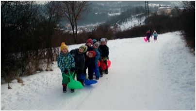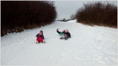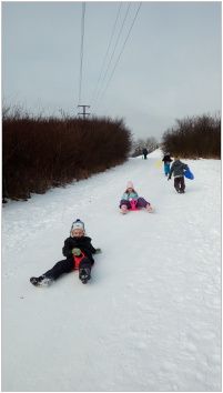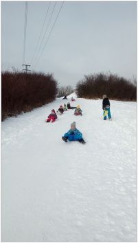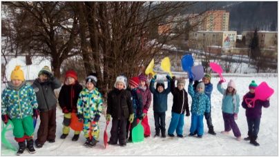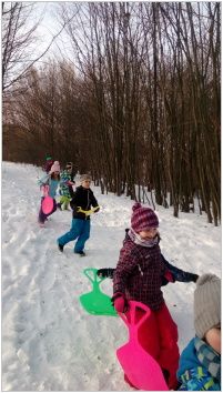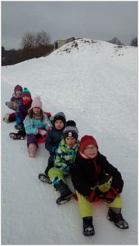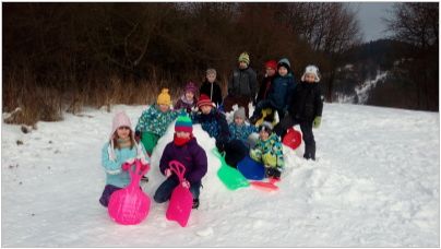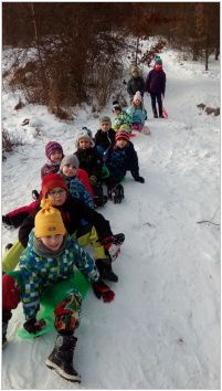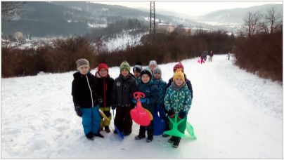 V pátek 20. ledna jsme vyrazili s lopatami na sychrovský kopec. Sněhová pokrývka byla pěkně uježděná, tak dětem nic nebránilo, předvést svou nejrychlejší jízdu. Jezdilo se jednotlivě, ve dvojici i ve vláčku. Všem se sjezdy dařily a děti si při nich užily spoustu legrace.