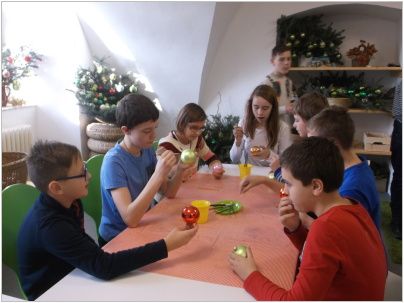 Poslední předvánoční školní den jsme si v rámci třídní besídky předali dárky a vydali se na vsetínský zámek. Tam byl pro nás připraven program Vánoce na Valašsku, kde jsme se mj. dozvěděli, jaké vánoční zvyky dodržovali naši předkové, a u dřevěného šestimetrového betléma pan Zádrapy nám paní průvodkyně popovídala o tom, jak vůbec vypadal život na valašské vesnici. Nejvíc však děti asi zaujala možnost vyzkoušení tradičních lidových masek Mikuláše, čertů a Lucek.