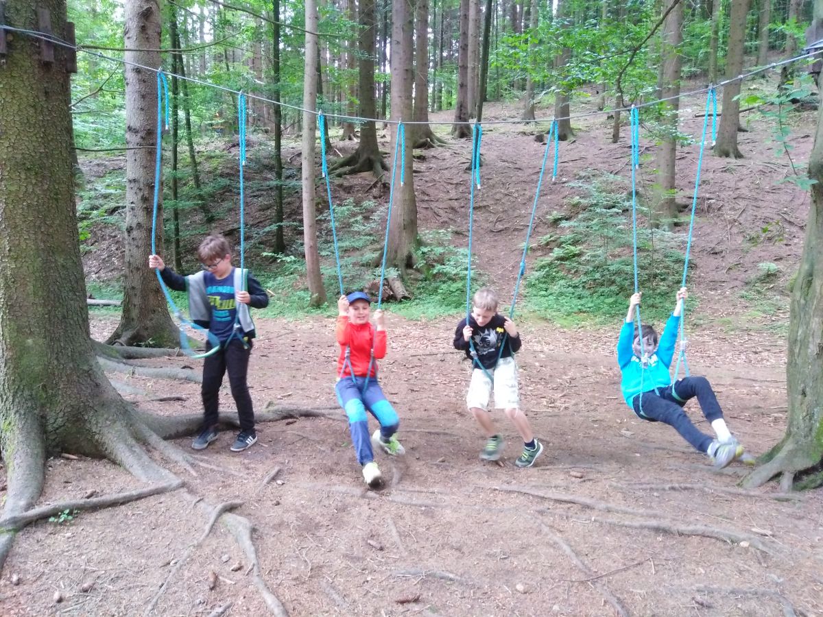 Společně jsme se vydali k hájence Na Novém světě v Semetíně. Na přilehlém ohništi jsme si opekli špekáčky, v lese zahráli hry a navštívili lanové centrum. Všem se výlet líbil a už se těšíme na další.