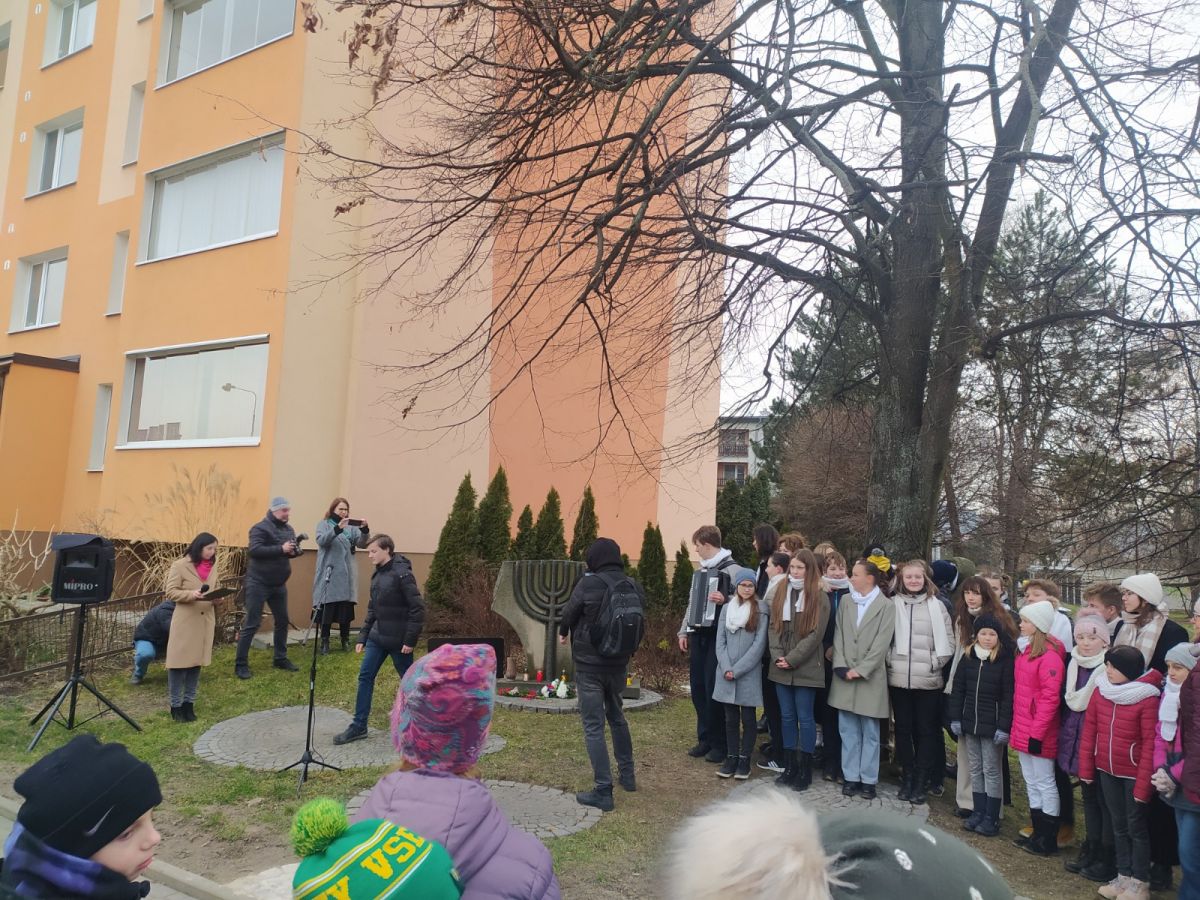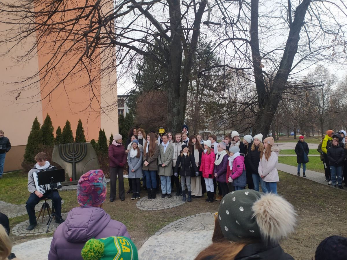 Dne 27. 1. 20023 od 10:00 se u památníku židovské synagogy, na ul. Štěpánská uskutečnil pietní akt ke Dni památky obětí holocaustu a předcházení zločinům proti lidskosti. Vybraní žáci a žákyně z 8.A a 9.B se této akce zúčastnili a připomenuli si tuto historickou událost. Svoji účast na aktu zakončili položením květiny na pomník. Poděkování patří vybraným žákům 8.A a 9.B za účast a příkladné chování. Novotná Ladislava AP