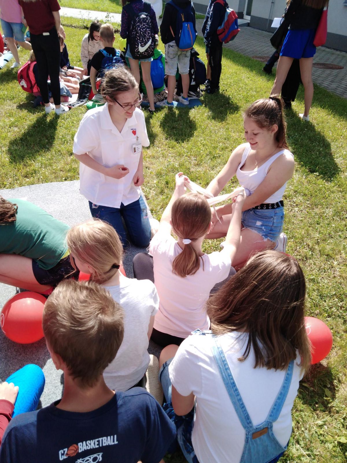 V.A strávila páteční dopoledne v prostorách naší nemocnice. Děti si mimo jiné vyzkoušely obvazovat zranění, fixovat zlomeniny, první pomoc při zástavě srdce, první pomoc při popálení atd. Viděly hasičský vůz i sanitku zevnitř. Zjistily, že si špatně myjí ruce, a ti nejodvážnější si nechali naměřit EKG. Procházková Tereza - třídní učitelka
