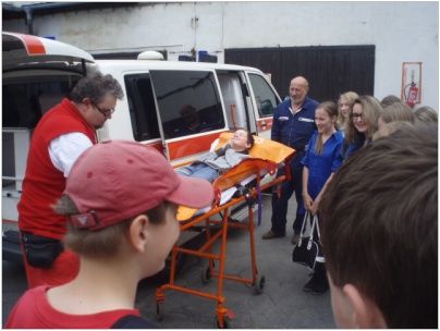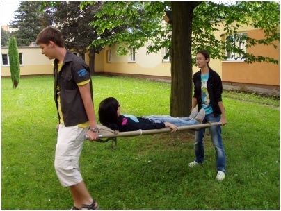 Žáci 8. tříd se zúčastnili aktivit na školním hřišti. Zde si vyzkoušeli obvazovou techniku, jízdu zručnosti na kole, přenos raněného, jízdu na šlapadlech a také „cestu nevidomého“.