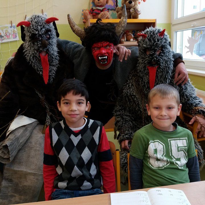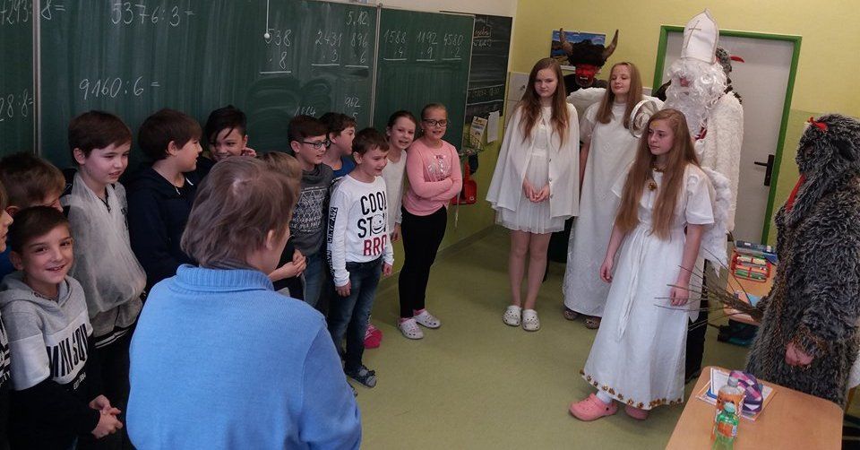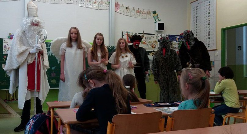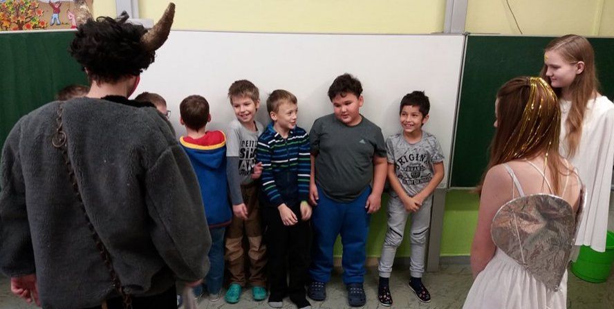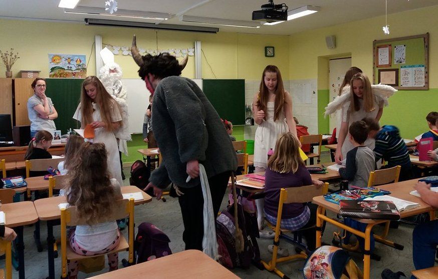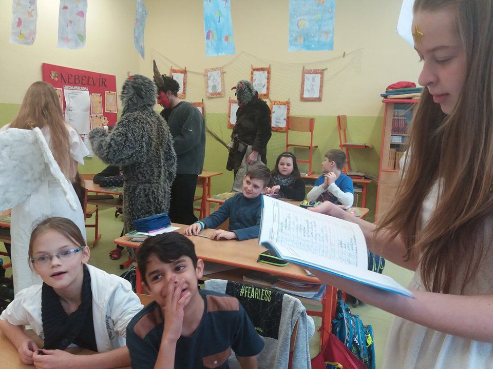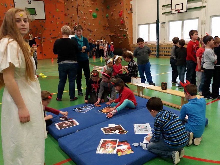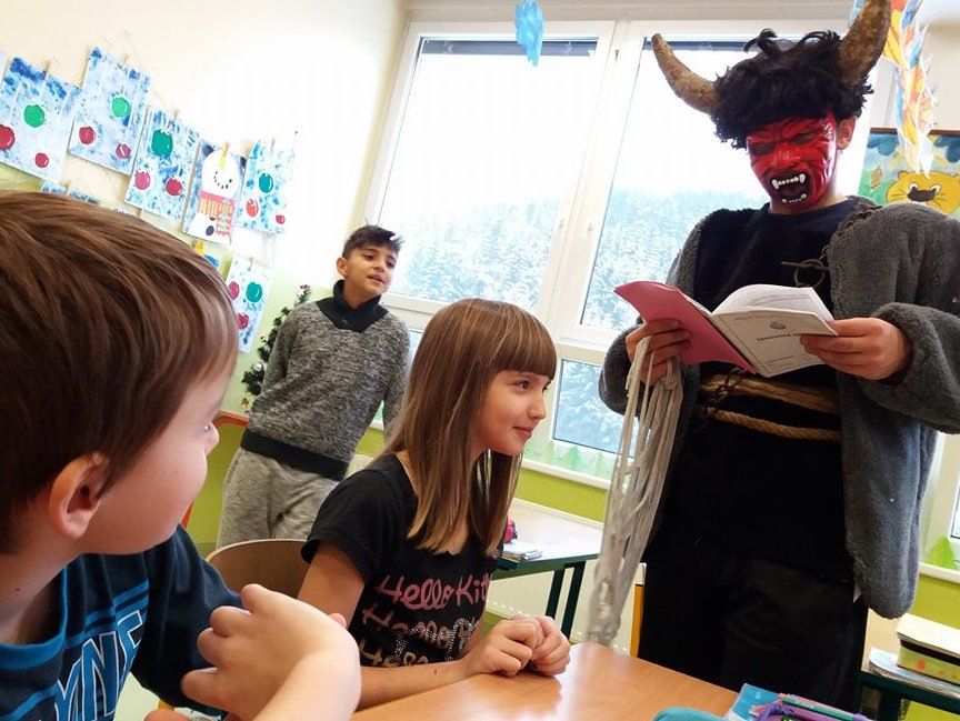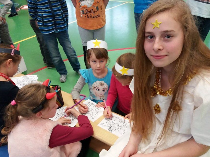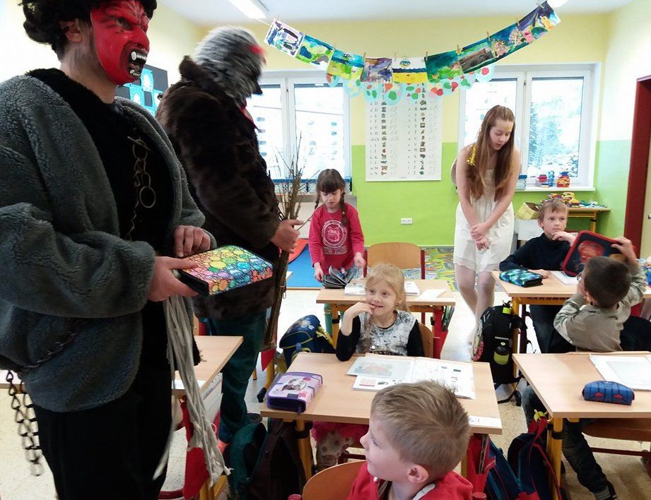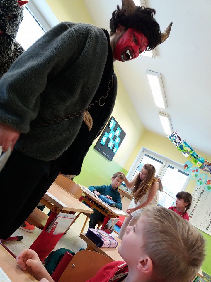 Andělé a čerti mu samozřejmě pomáhali. Odpoledne si Mikulášská družina připravila pro všechny děti sportovní a výtvarné aktivity v tělocvičně. Děti doručovaly andělskou poštu na koních, hrály s čerty florbal nebo malovaly s Mikulášem knoflíky pro sněhuláka. Díky všem, kteří se zapojili a tento skvělý program pomohli vymyslet a zrealizovat ![]()