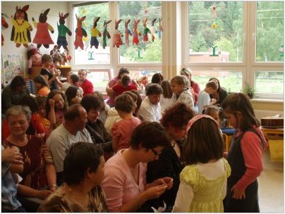 Děti z 1.B s paní učitelkou Staňkovou nacvičily pohádkové pásmo a odvedly výkon téměř jako profesionální herci.