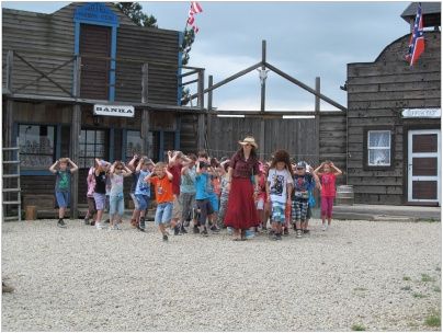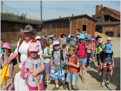 Při procházce rančem a prohlídce koňských stájí jsme se dozvěděli mnoho zajímavostí o zdejším chovu koní. Při prohlídce areálu westernového městečka jsme viděli Saloon, banku, úřad šerifa a také kostelík s hřbitovem. Navštívili jsme indiánskou vesnici, prohlédli si teepee a poznávali život původních obyvatel Ameriky. Zastavili jsme také u trapera - lovce kožešin.