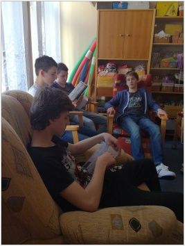 Ujala se nás milá paní ředitelka Věra Dulavová. Obeznámila nás s prací charitativních pracovníků, pořádajícími sbírkami,místními stacionáři, kompenzačními pomůckami a dalšími užitečnými informacemi. Společně jsme si uvědomili, jak náročná a zároveň naplňující je práce sociálního pracovníka. V té chvíli jsme se všichni zamysleli nad naším budoucím stářím a především nad stářím našich blízkých. Vyzkoušeli jsme si, jak se usedá do polohovacího křesla pro seniory a na závěr jsme dostali dáreček v podobě záložky do knížky, kteří vyráběli samotní klienti Stacionáře Magnolia. Paní Věře Dulavové ještě jednou moc děkujeme. Přejeme jí a všem sociálním pracovníkům hodně sil a úsměvu do další práce.