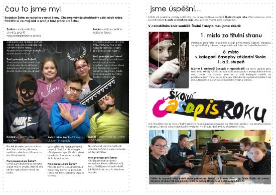 První číslo tohoto školního roku je na světě. Nabízíme vám malou ochutnávku z jeho obsahu: představíme vám naše nové redaktory a také jejich úspěchy. Připravili jsme pro vás herní speciál a exkluzivní rozhovor s našimi hvězdami. Dozvíte se, jak by si paní učitelka Vlasta Moudrá poradila s medvědem a mnoho dalšího. Čtěte Šatnu a buďte v obraze :-)
