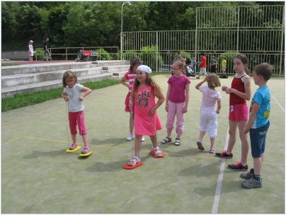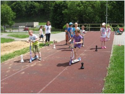 Další Dny dětí pokračovaly ve sportovním duchu. Začaly zábavným odpolednem na školním hřišti a končily společným plaváním v městských lázních. Na sportovišti si mohly děti změřit síly v netradičních disciplínách. Vyzkoušely nové koloběžky, předvedly skoky v pytlích a na skákacích míčích, hod na cíl, chůzi na chůdách, zručnost při přenášení míčů a rychlost v pohyblivém chodníčku či slalomem s florbalkou. Za každou disciplínu byly odměněny obrázkem na obličej.