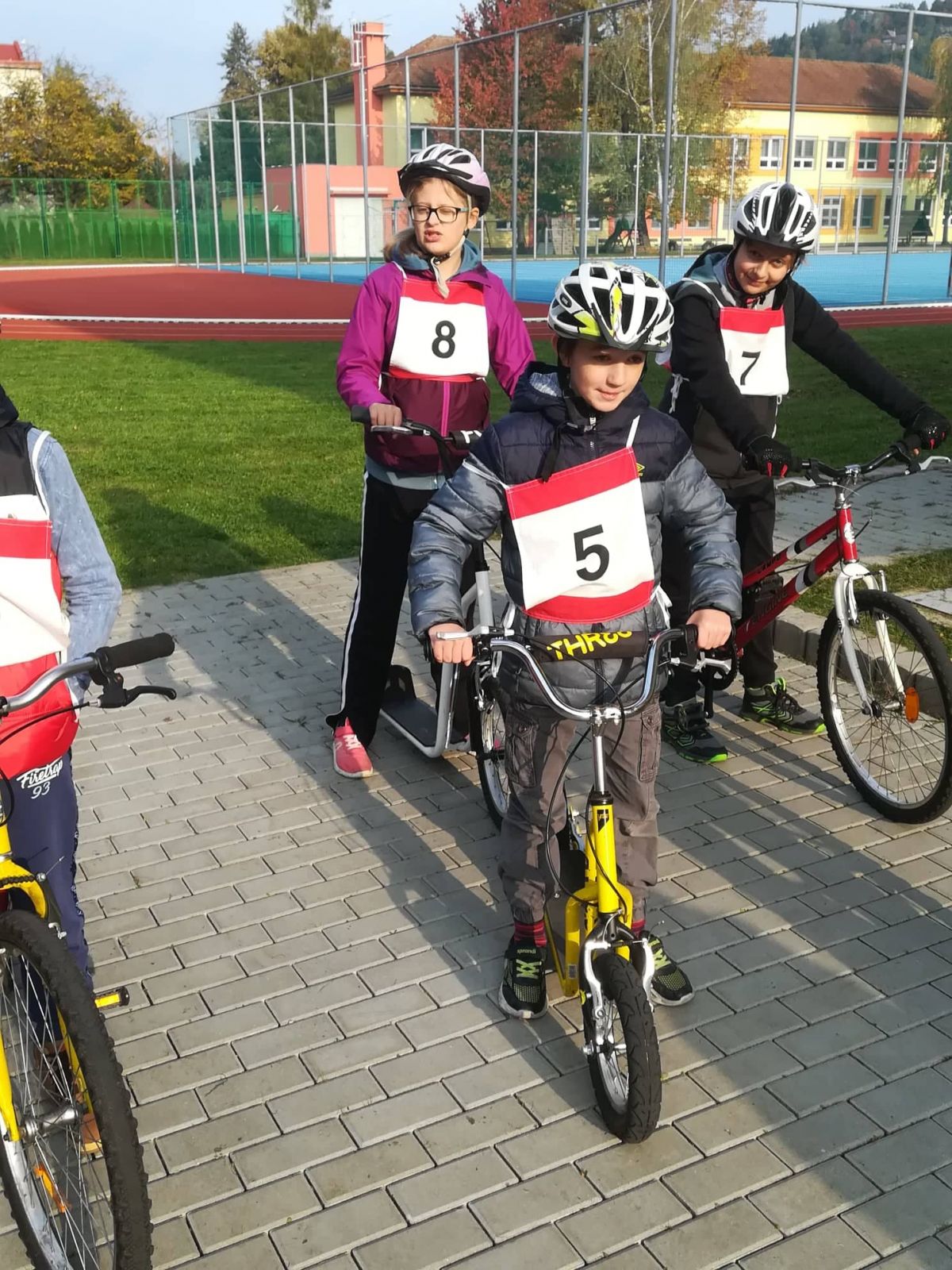 V měsíci říjnu třída V.B absolvovala poslední lekci Dopravní výchovy na 1. stupni ZŠ, která sestávala ze tří částí: test znalosti dopravních předpisů, jízdu zručnosti na překážkové dráze a bezchybnou orientaci v křižovatkách dopravního hřiště. Žáci prokázali znamenité znalosti a dovednosti, přesto však stále platí pravidlo: Spěchej pomalu!