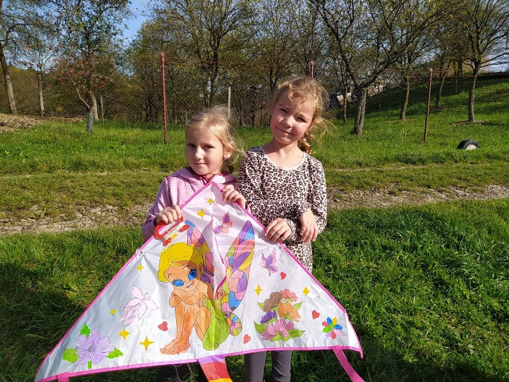 Starší a zkušenější děti pomáhaly těm mladším s pouštěním a ovládáním draka.