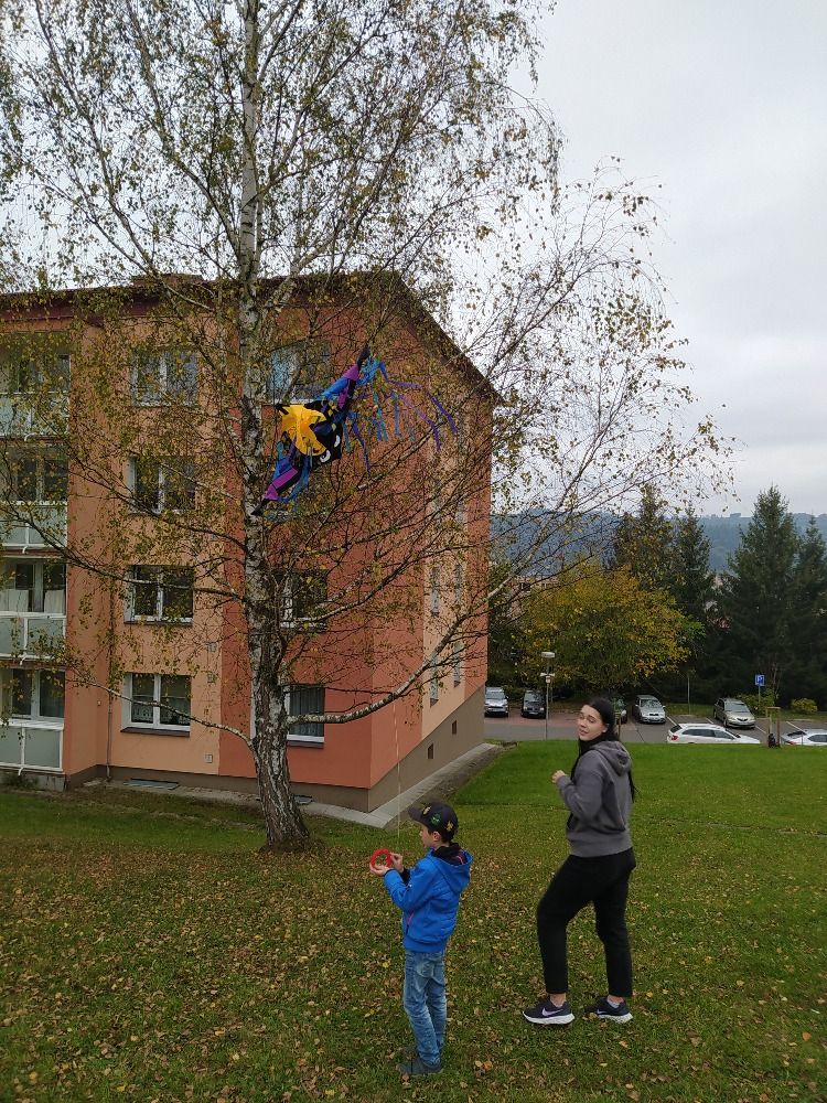 Někteří dráčci nás trochu potrápili. Tu se ztratila tyčka z konstrukce, jinde praskla šňůrka, některým se zpočátku nechtělo létat a ten největší drak přistál v koruně stromu.