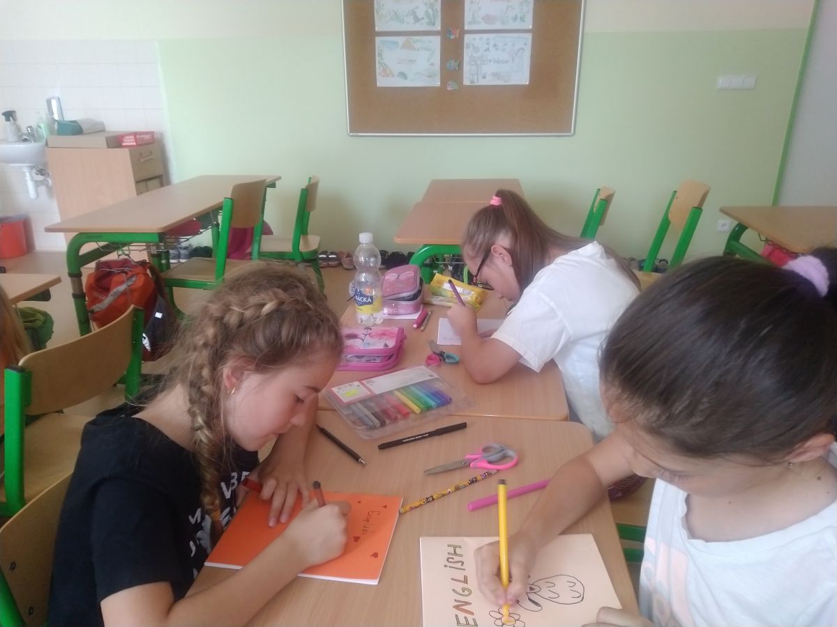 Děti absolvovaly hravé hodiny s rodilými mluvčími Holly a Iainem. S učitelkami Bohdanou a Ivou si vytvořily sešit, kam si zaznamenaly všechny poznatky a vlepily pracovní listy. Vyzkoušely si origami i jiné tvořivé aktivity.