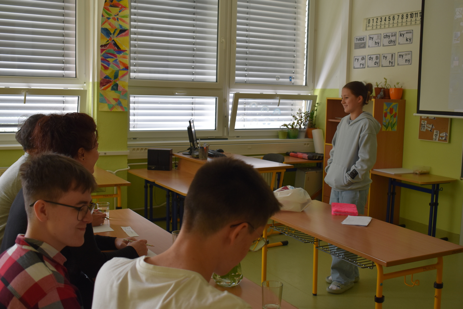 V kategorii čtvrťáků vyhrála Leontýna Surovčíková ze ZŠ Vsetín, Ohrada, na druhém místě skončil Robert Pavlovič ze ZŠ Vsetín, Rokytnice, třetí pak byla Veronika Týnová ze ZŠ Vsetín, Sychrov. Naše reprezentantka Adéla Hřavová skončila těsně šestá a děkujeme jí za reprezentaci školy.